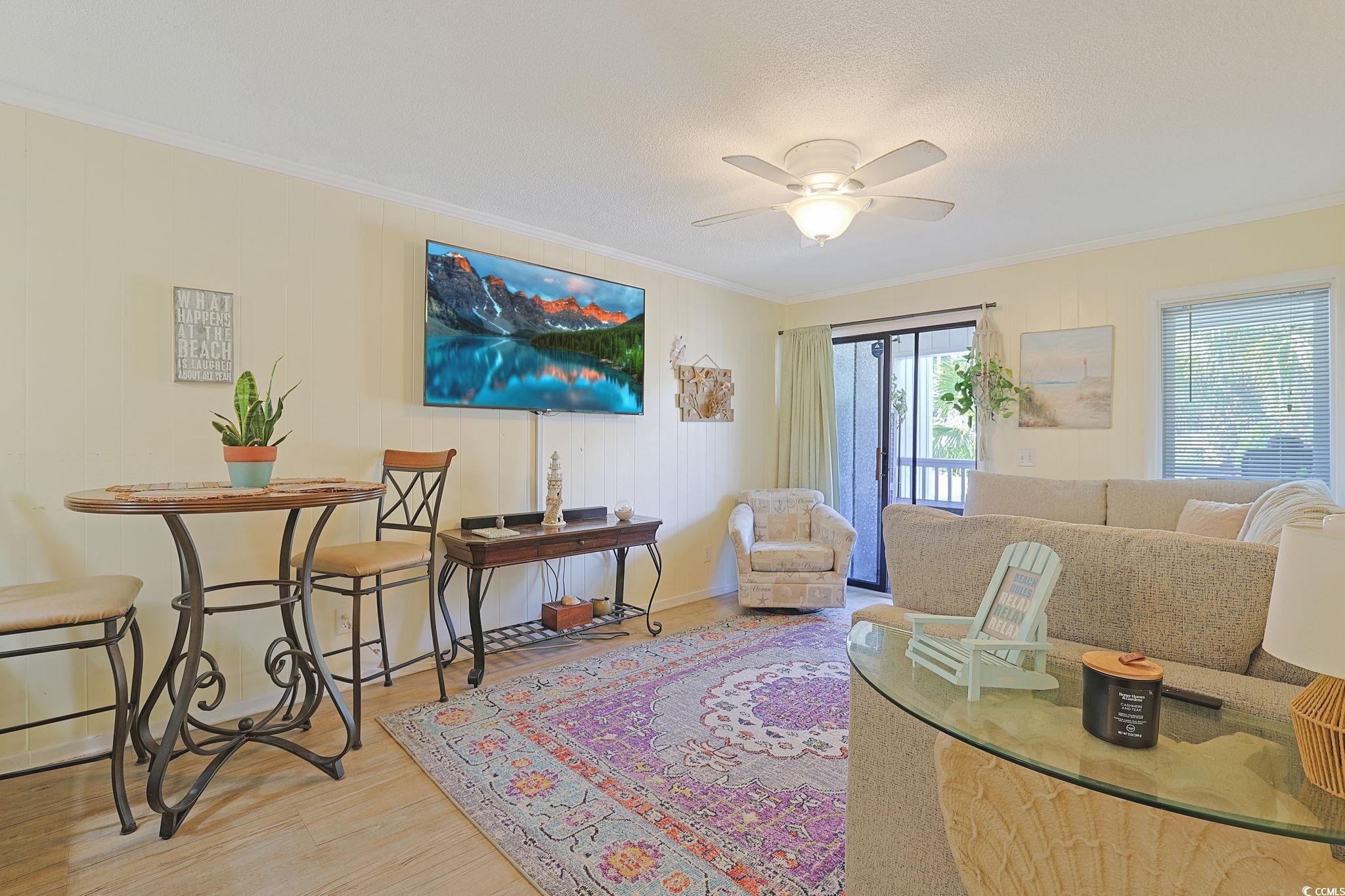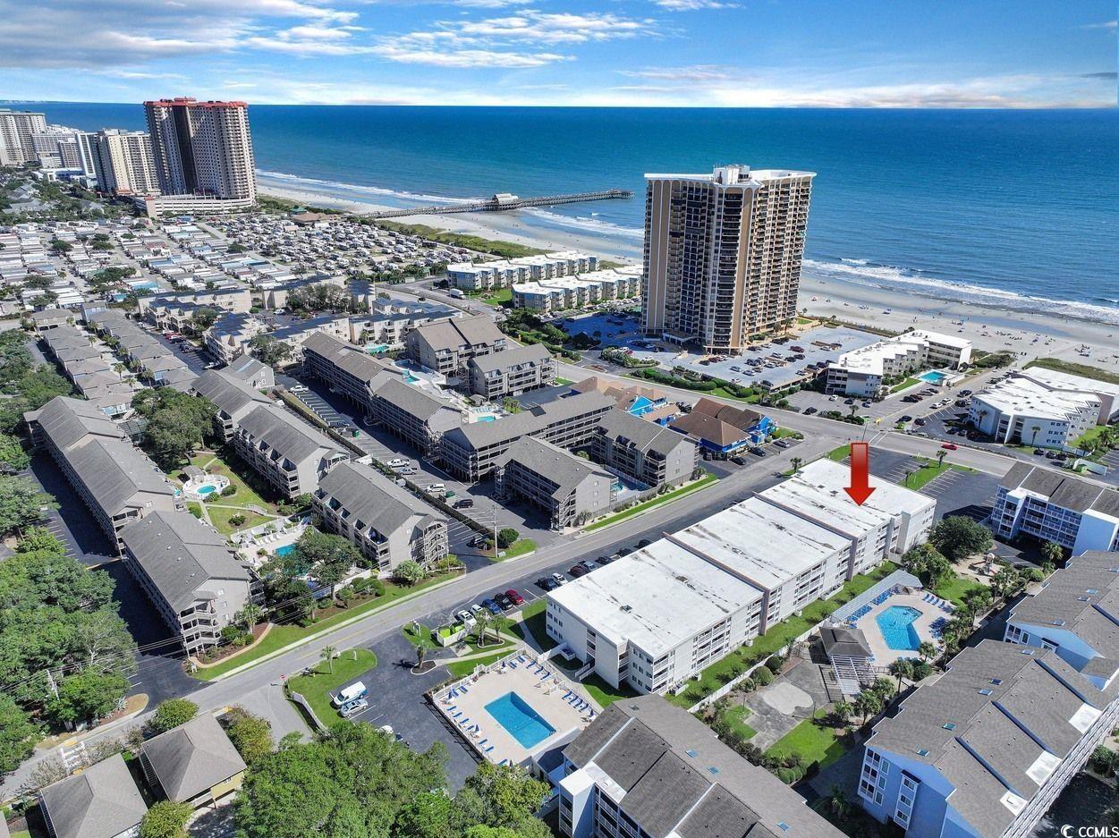 Introducing this incredible 1st floor 2 bedroom 2 bath condo located in the popular A Place At The Beach complex. This piece of paradise features wood look LVP & tile flooring, ceiling fans, crown moulding, and showcases a sliding glass door from the classic living/dining room that opens up to the spectacular balcony. The cheerful kitchen is equipped with a white on white appliance package, granite counter tops, tile back splash, ample cabinet spaces, and a breakfast bar. The primary bedroom offers a sliding glass door that opens up to the balcony, a ceiling fan, sliding bi-door closet, private access to the master bath that includes a single pedestal sink, a comfort station, and a step-in shower. This inviting condo is completed with an additional bedroom and a full guest bath. This condo affords you easy access to the beach and golfing along with all of the other activities and happenings in Myrtle Beach including fun eateries, award winning off-Broadway shows, public fishing piers, and intriguing shopping adventures along the Grand Strand. Conveniently located to your everyday needs, including grocery stores, banks, post offices, medical centers, doctors’ offices, and pharmacies. Check out our state of the art 3-D Virtual Tour.
