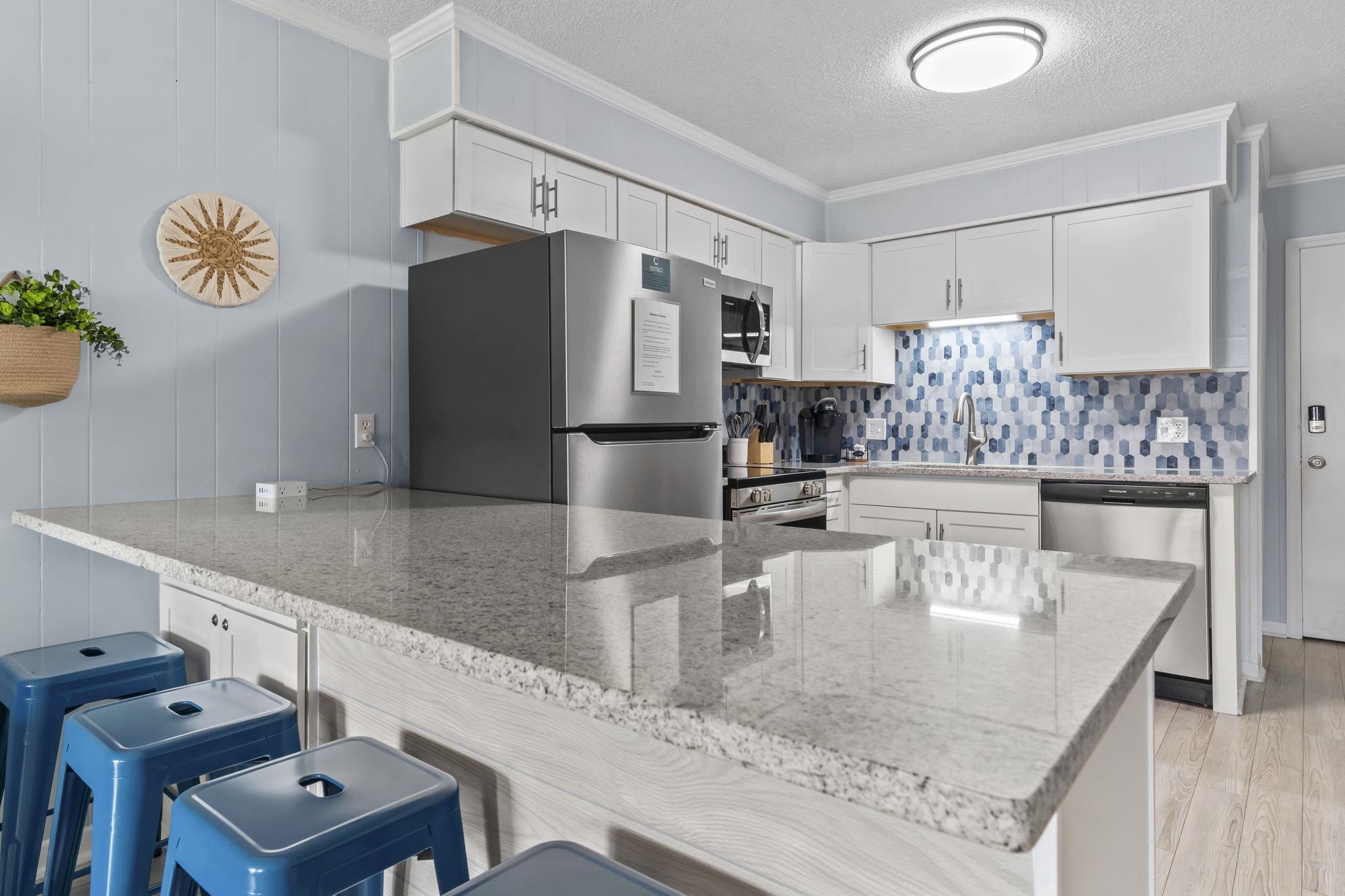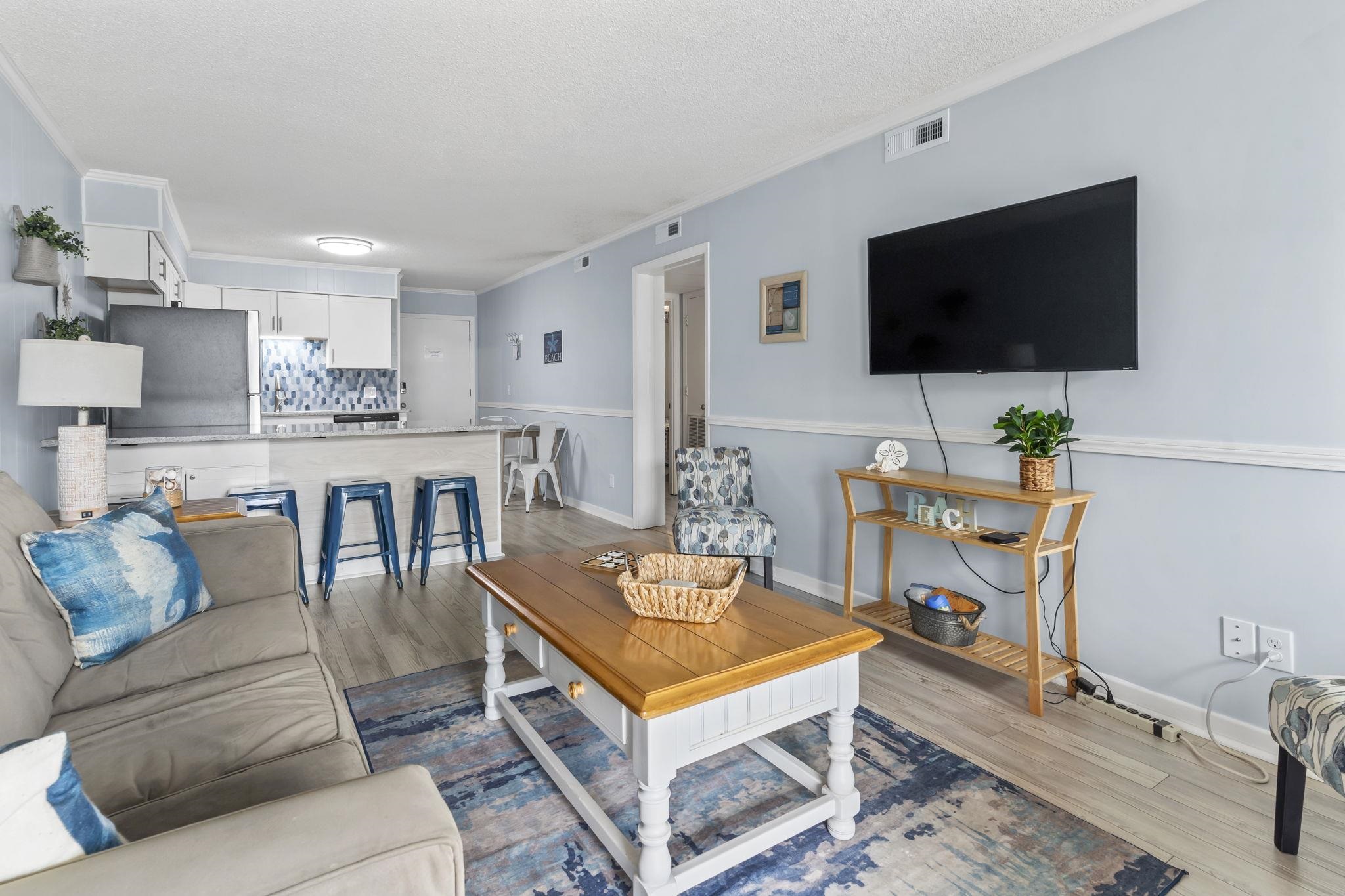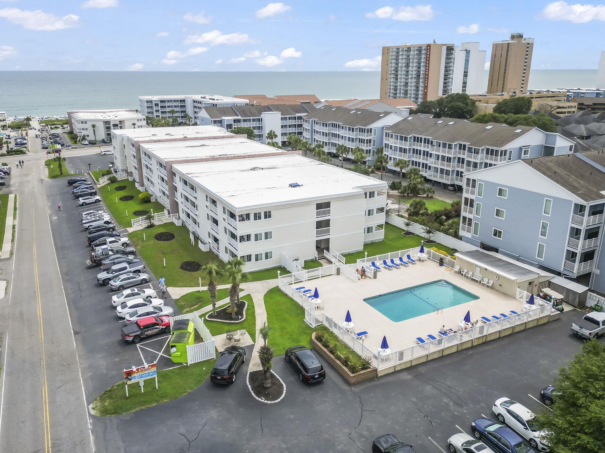 Location, lifestyle, and luxury-just one block from the beach! This beautifully updated 2 bedroom, 2 bath condo is nestled in the desirable A Place at the Beach V community in the sought after Arcadian Shores area of Myrtle Beach. From the moment you step inside, you're greeted by a bright open-concept floor plan-perfect for entertaining guests or unwinding after a sun-soaked day on the shore. Offered fully furnished and tastefully decorated, this move in ready unit features newer furnishings, and a completely renovated kitchen boasting stylish cabinetry, granite countertops, and sleek stainless steel appliances. Fresh paint enhances every room, while high quality flooring flows seamlessly throughout the entire unit. New glass patio sliders lead to a private top floor vantage point overlooking the sparkling blue pool below-your own peaceful retreat in the sky. Whether you are searching for a primary residence, a vacation getaway, or a high-potential investment property, this pristine condo checks every box. Ideally located just minutes from Tanger Outlet, Barefoot Landing, dining along Restaurant Row, championship golf, and the popular Apache Pier. Schedule your private showing today and start living the beach lifestyle you've been dreaming of.