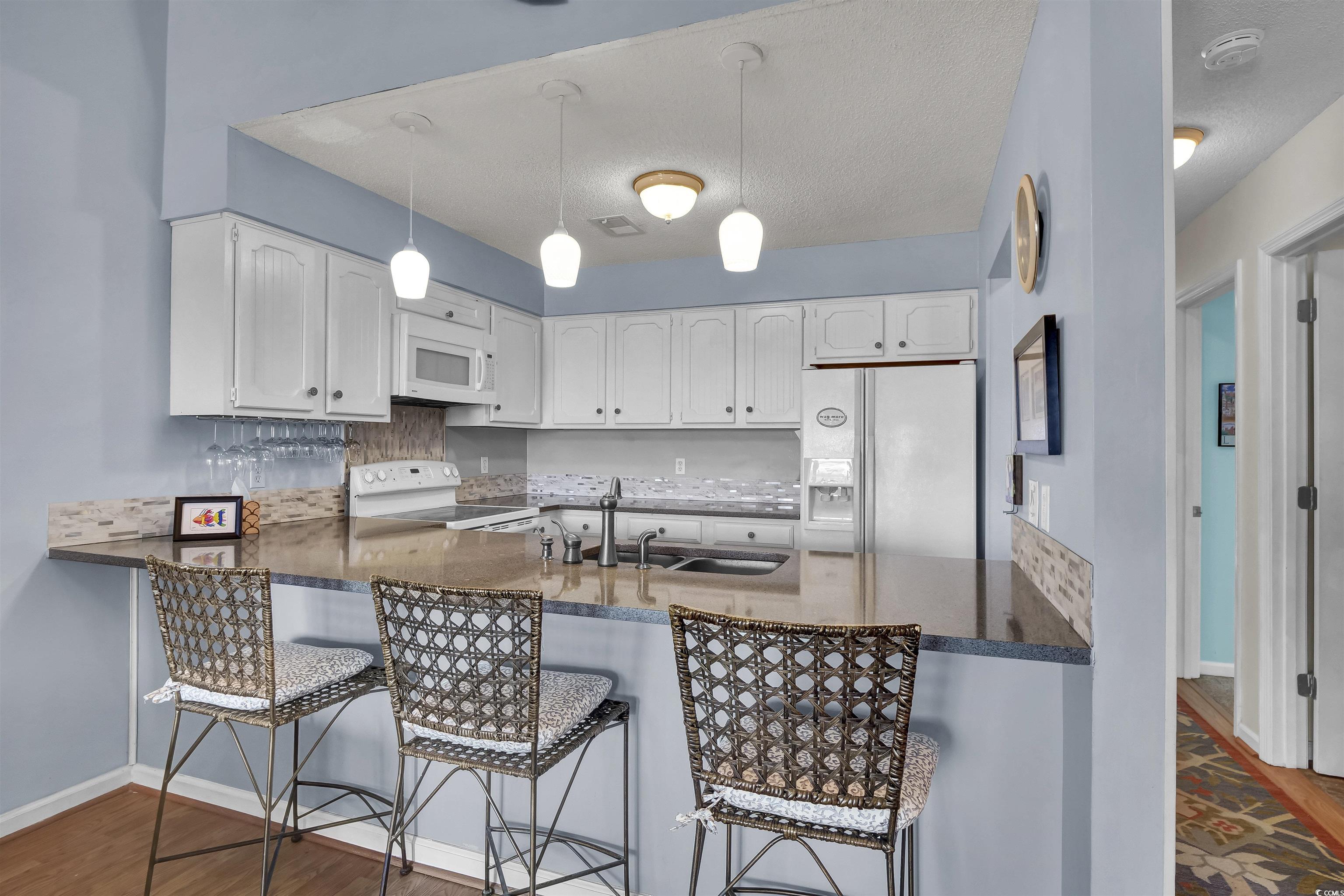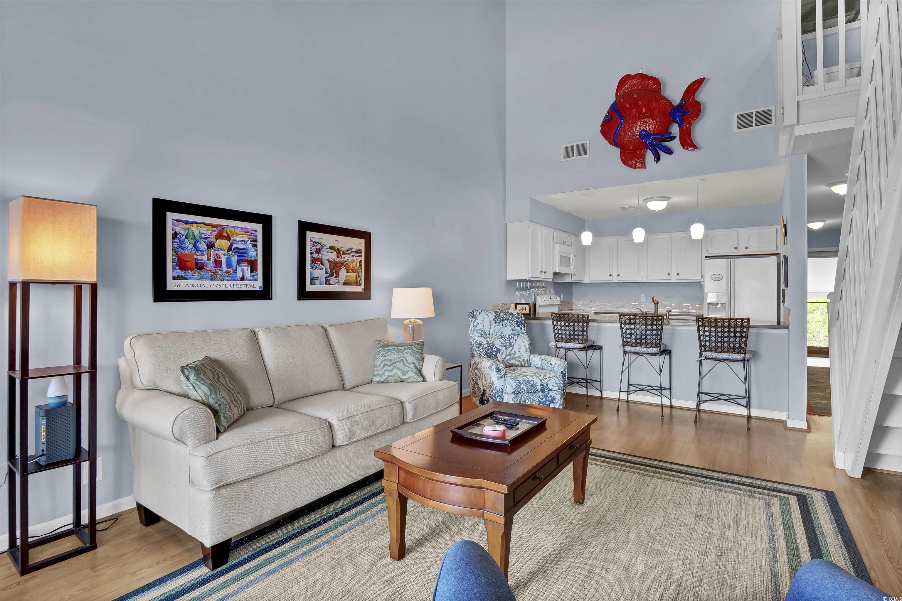 Experience coastal living at its finest in this beautifully appointed 1445 sq ft condominium located in the Mariners Wacche community of Ocean Isle Beach, NC. This residence offers stunning views of the Intracoastal Waterway and the lush fairways of Brick Landing Plantation's golf course, providing a serene backdrop for your everyday life. Step inside to discover an open concept living space adorned with luxury vinyl plank flooring, seamlessly connecting the living, dining, and kitchen areas. The kitchen features solid surface countertops and ample cabinetry, perfect for preparing meals and entertaining guests. The living area extends to a three-season porch with Eze-Breeze vinyl windows, where you can relax and enjoy the tranquil waterway views. The primary bedroom offers direct access to the porch and includes an en-suite bathroom with triple vanities a walk-in shower enclosure. Two additional bedrooms share a bathroom, providing comfort and privacy for guests. An additional loft space serves as a versatile area for a home office, hobby room, or extra sleeping quarters, complete with its own bathroom and closet. Residents of Mariners Wacche enjoy exclusive amenities, including a private pool nestled among grand Southern Oak trees, as well as access to the Brick Landing community's larger pool, hot tub, tennis and pickleball courts, and clubhouse. The deep carport area offers exclusive parking for upper-floor units, adding to the convenience. There is also a downstairs storage unit in the carport area. With short-term rentals not permitted, the community ensures a peaceful environment, free from the hustle and bustle of weekly vacationers. Rentals are allowed but require a minimum stay of 30 days. Whether you're seeking a permanent residence or a seasonal retreat, this condominium offers a lifestyle of comfort and natural beauty. Don't miss the opportunity to make this coastal haven your own.