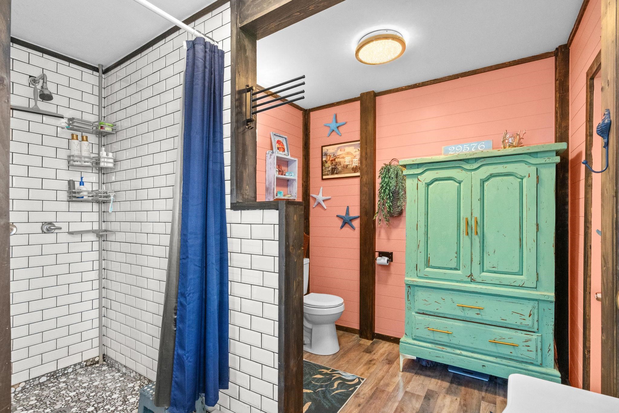 Welcome to this charming coastal home two blocks from the beach and located in the heart of Oceanside Village in Surfside Beach, where relaxed beach living and community lifestyle come together. This thoughtfully updated home features an inviting open living area, a bright and functional kitchen, and coastal finishes throughout that give it warmth and personality. The bedrooms are comfortable and well laid out, and the updated bathrooms showcase custom touches and a beach inspired feel. The expansive wraparound deck shaded by mature trees creates the perfect outdoor living space for entertaining, relaxing, or enjoying the coastal breeze. An outdoor shower adds extra convenience after beach days or time spent outdoors. Living in Oceanside Village can also mean enjoying an impressive lineup of community amenities (for a fee) that truly extend your lifestyle beyond the home. Residents have access to private beach entry with gated beachfront parking, outdoor showers, and restrooms, multiple outdoor pools, a heated indoor pool, fitness center, tennis and pickleball courts, basketball and volleyball courts, playground, dog park, bocce and horseshoe pits, lake fishing and surf fishing where permitted, and a community center that hosts year round events and activities. Lawn care, trash service, and on site management are also included in the community structure. Your Surfside Beach address grants you close proximity to all the attractions and amenities of the Grand Strand including fine dining, world-class entertainment, and ample shopping experiences. Rest easy knowing you are only a short drive from medical centers, doctors' offices, pharmacies, banks, post offices, and grocery stores. Square footage is approximate and not guaranteed.