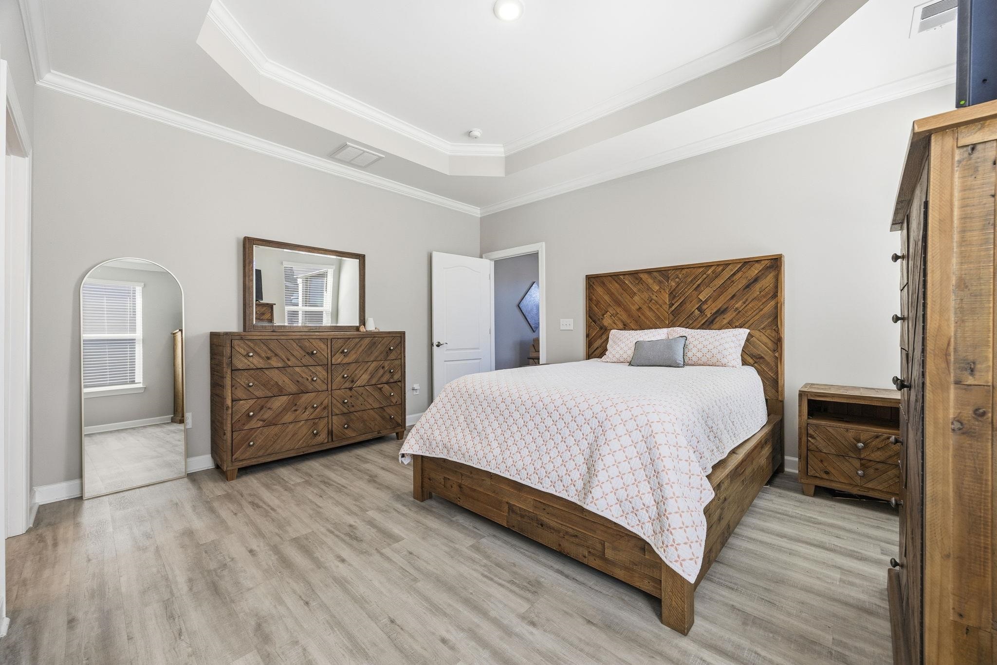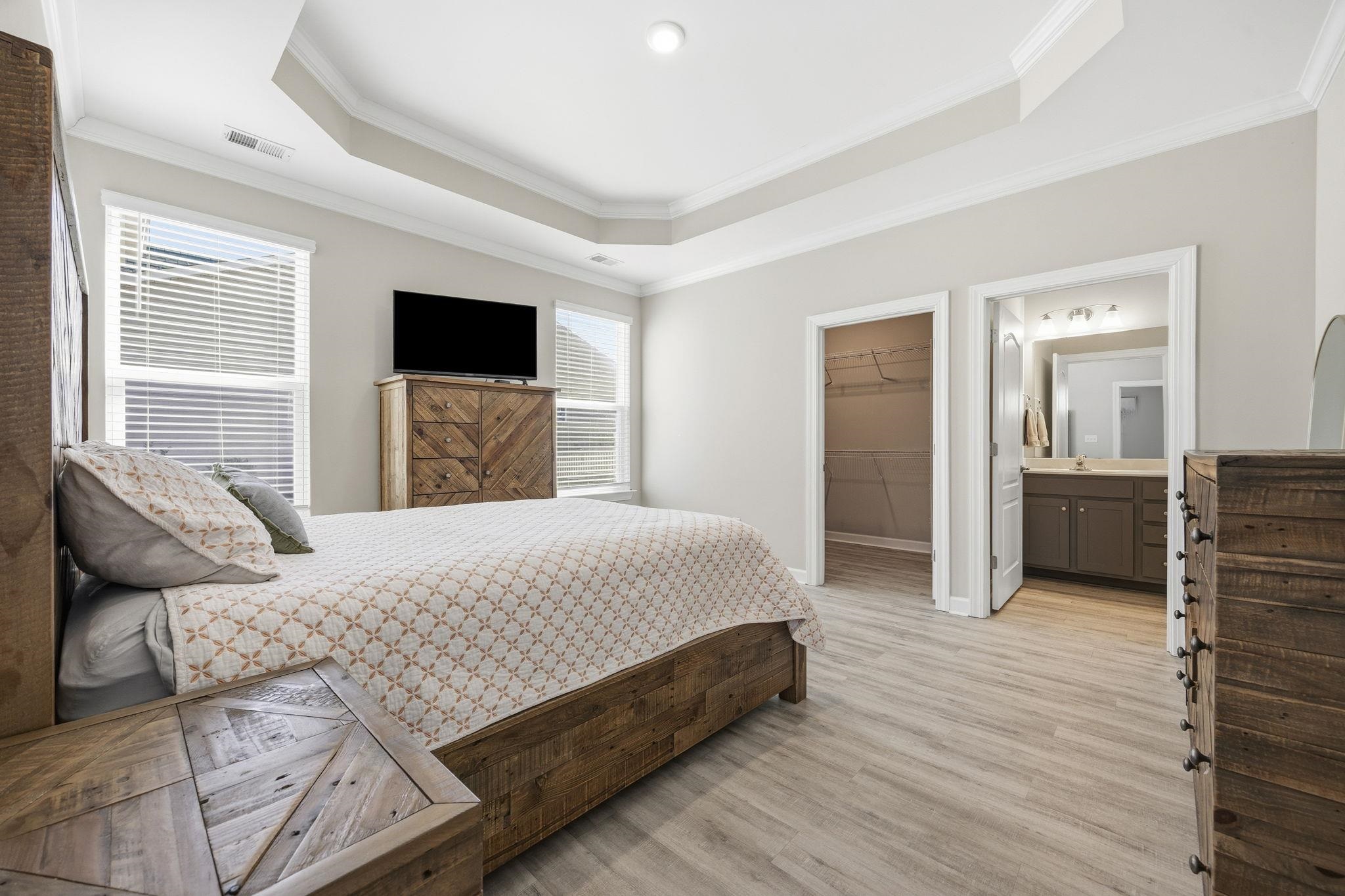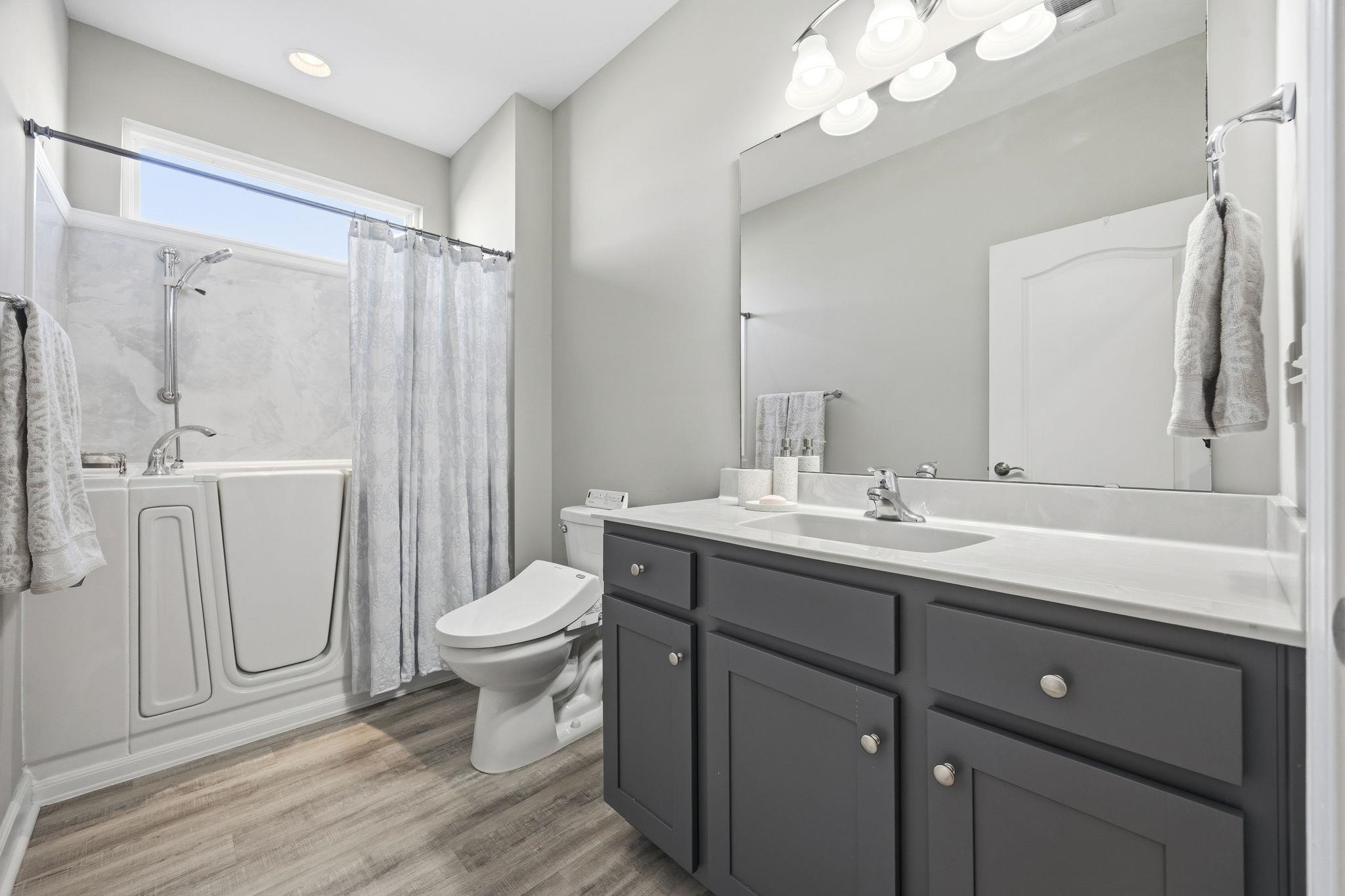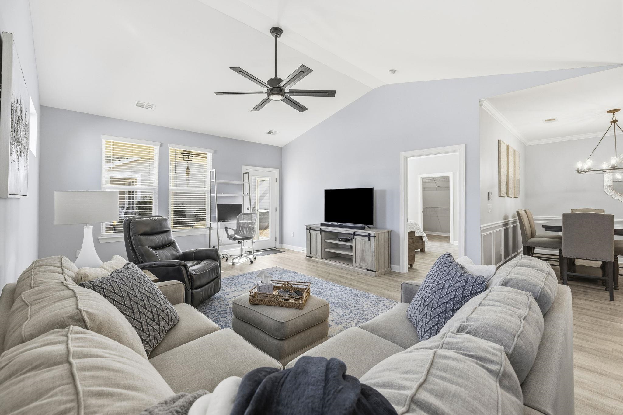Beautifully upgraded 3-bedroom, 2-bath end-unit villa in the desirable natural gas community of Bridgewater Villas. Enter through a bright foyer featuring elegant chair rail molding that sets the tone for this thoughtfully designed home. The vaulted living room flows seamlessly from the foyer, creating a spacious, light-filled area perfect for entertaining or relaxing. This open kitchen is a chef’s dream, featuring quartz countertops, a roomy island that doubles as a breakfast bar, plenty of cabinets and a pantry, a custom backsplash, and sleek black and slate stainless-steel appliances with a gas range. Adjacent, the dining room showcases chair rail molding and a striking wheel chandelier, providing a sophisticated space for gatherings. The separate laundry room includes a table and cupboards, adding convenience and functionality. The home also offers a two-car garage, a tankless hot water heater, and a powerful 22kW Generac whole-home generator for peace of mind year-round. The primary suite is a serene retreat featuring a tray ceiling, and the ensuite boasts a double sink, custom tile shower with glass doors, and thoughtful finishes throughout. Step outside to a relaxing rear screened porch, ideal for morning coffee or unwinding in the evening, which leads to an outdoor patio perfect for entertaining. Beyond the home, the lifestyle at Bridgewater Villas truly shines. Imagine morning walks along scenic trails, afternoons at the resort-style pool relaxing under shaded cabanas, and evenings grilling with neighbors in the outdoor kitchen while the kids play nearby. Stay active in the state-of-the-art fitness center, enjoy friendly matches on the tennis and pickleball courts, or spend weekends at the dog parks and community garden. With a full-time activity director planning social events and gatherings throughout the year, it’s easy to meet friends and feel connected. This is more than a neighborhood, it’s a community designed for making memories, staying active, and enjoying everyday life to the fullest.