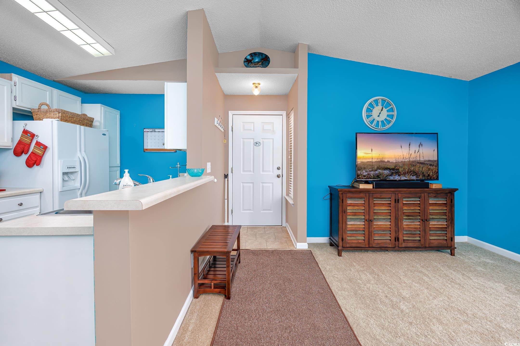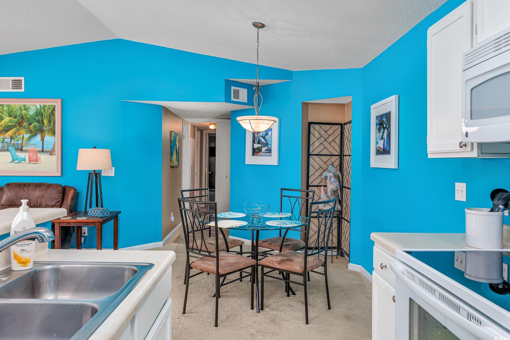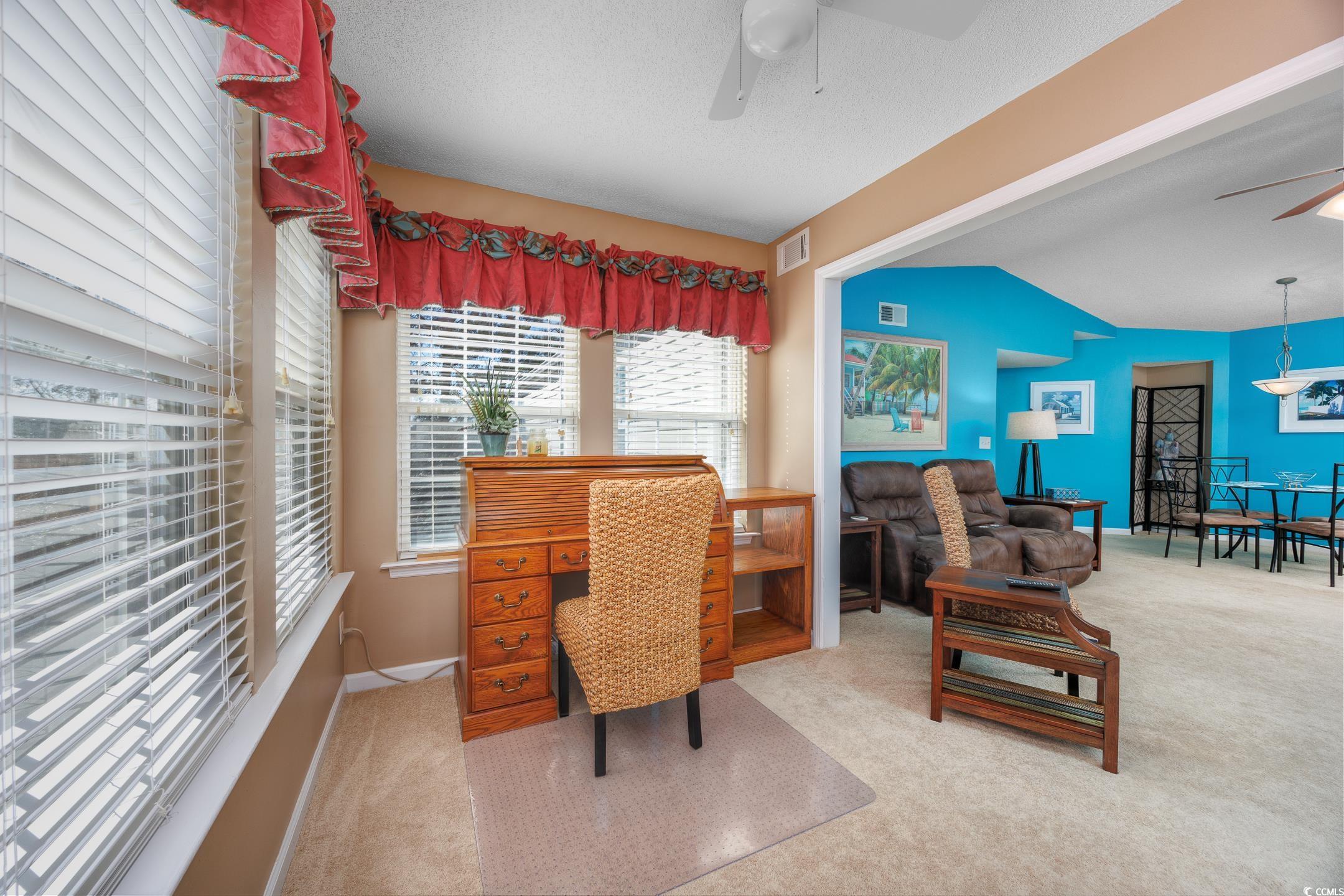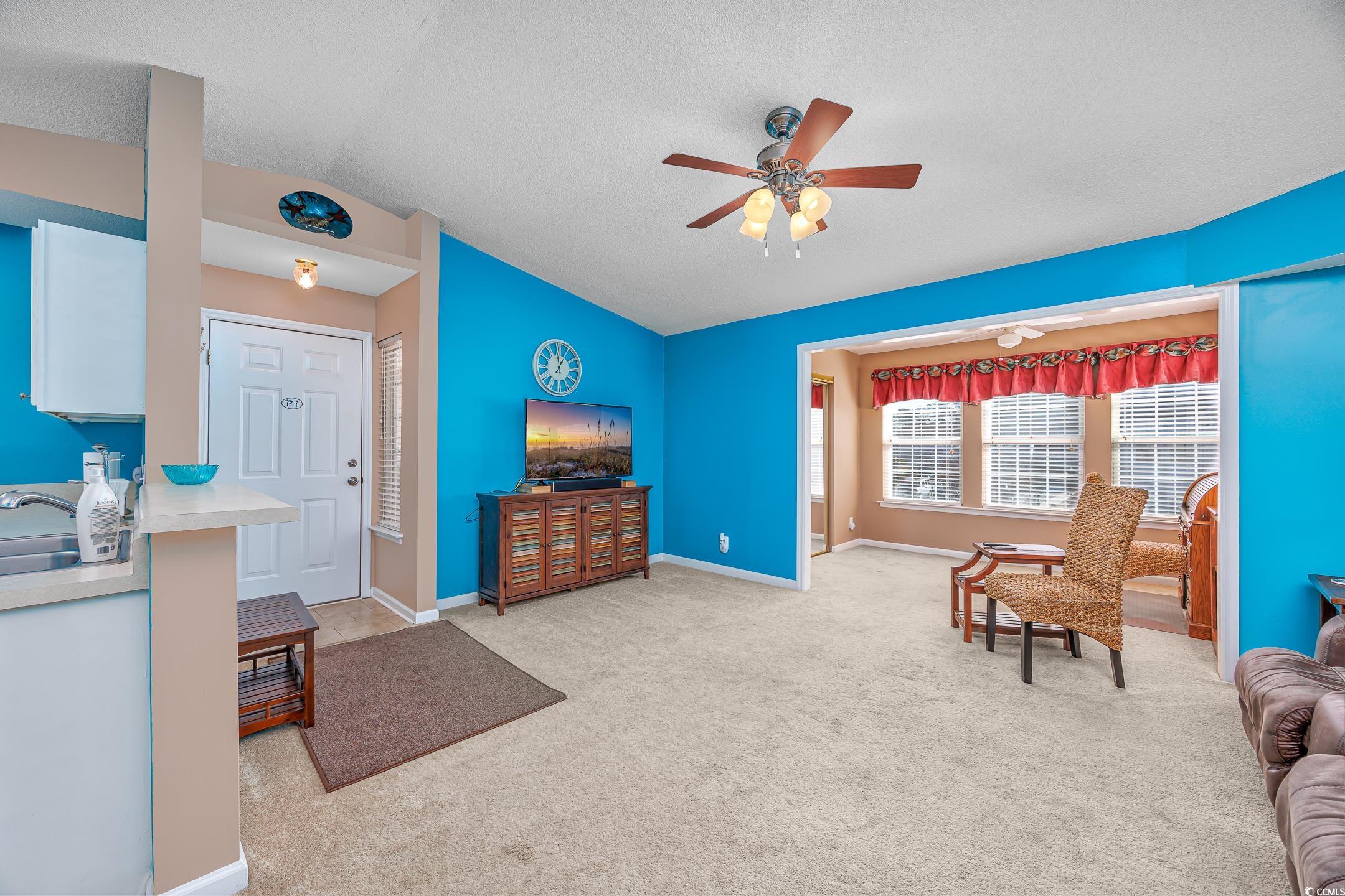 Welcome to Deerfield, a highly desirable Surfside Beach community! This spacious, fully furnished top-floor, second-story condo offers 3 bedrooms, 2 full baths, and 1,300 square feet of comfortable living space. The open floor plan creates an inviting atmosphere, with a bright living room flowing into the dining area and a well-equipped kitchen, stocked with everything you need for a seamless, beach-ready move-in experience. A charming sunroom adds extra living space and natural light. Down the hall, two generous guest bedrooms, a full guest bath, and a laundry room provide ample convenience. The expansive primary suite at the end of the hall features a walk-in closet and an ensuite bath with a large vanity and tub/shower combination. Step outside and enjoy the community pool just a few steps away. Surfside Beach is a short car or golf cart ride away, with shopping, dining, golf courses, and entertainment nearby. Don’t miss this fully furnished gem—schedule your private showing today!