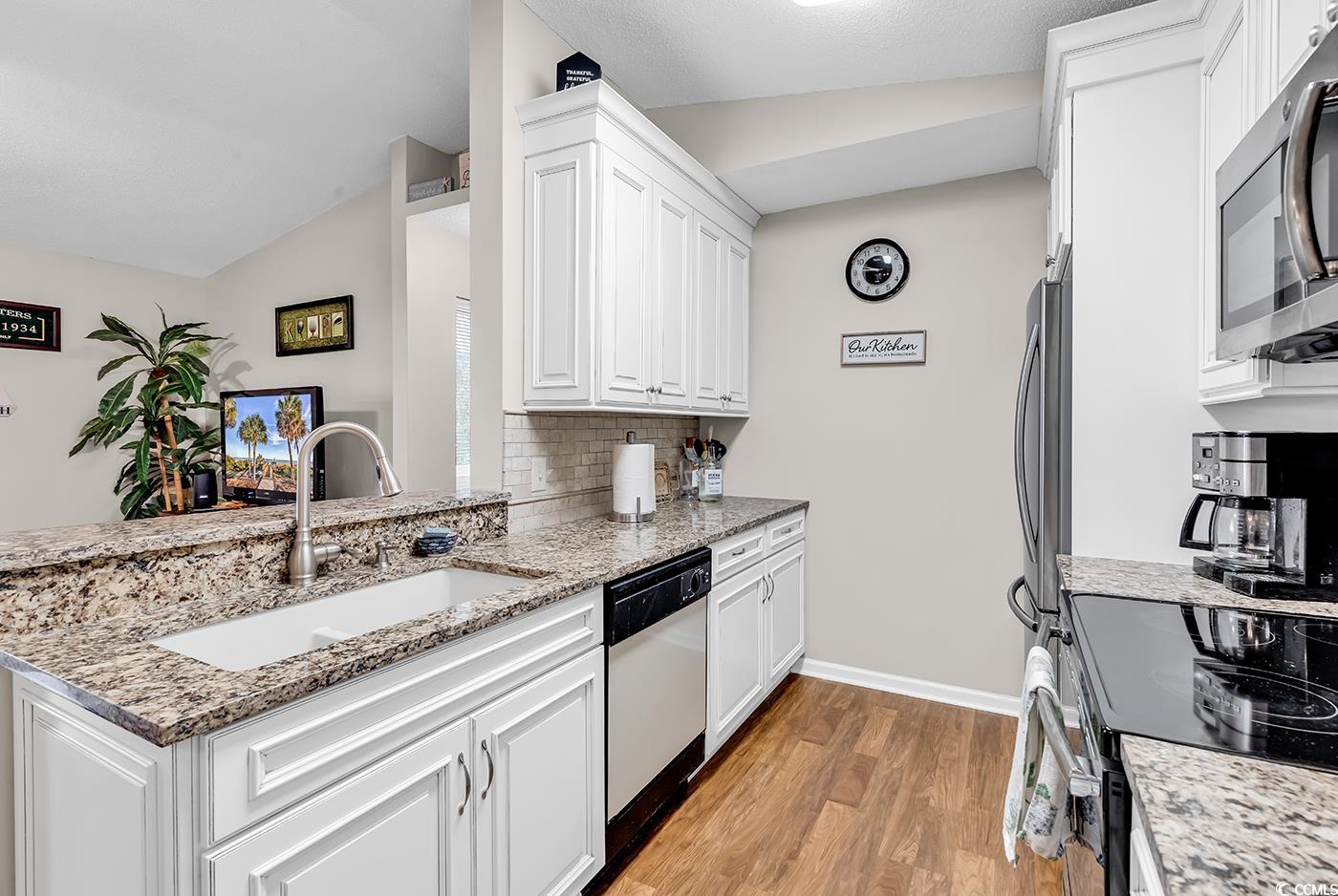 Welcome to 1949 Bent Grass Dr, Unit G, Myrtle Beach SC, 29575, a well-maintained property in a prime location that offers a unique blend of comfort, style, and convenience. This 2-bedroom, 2-bathroom home presents an excellent opportunity for those looking for an investment, a vacation getaway, or a permanent residence. A step inside reveals a bright and airy second-floor space with high vaulted ceilings that effortlessly create an atmosphere of openness. The home boasts easy-care laminate flooring throughout, offering a blend of durability and style. The kitchen, updated recently with stainless steel appliances and granite countertops, is a chef's dream. Both bathrooms have also received upgrades, adding to the overall appeal of this property. The location is a standout feature, nestled in Surfside Beach, close to the beach itself, shopping centers, attractions, the airport, and a mall. Everything you need is within easy reach, making this home not only a place to live but a lifestyle to embrace. For those who enjoy outdoor activities, the community pool is just a short walk away, perfect for a refreshing dip on those warm summer days. Plus, the low Homeowner Association (HOA) fees cover a range of services, adding value to your investment. Don't miss out on this rare opportunity to own a piece of Myrtle Beach in an excellent location. This property is a unique find that combines quality, convenience, and affordability. Make the urgent decision to seize this amazing opportunity today!