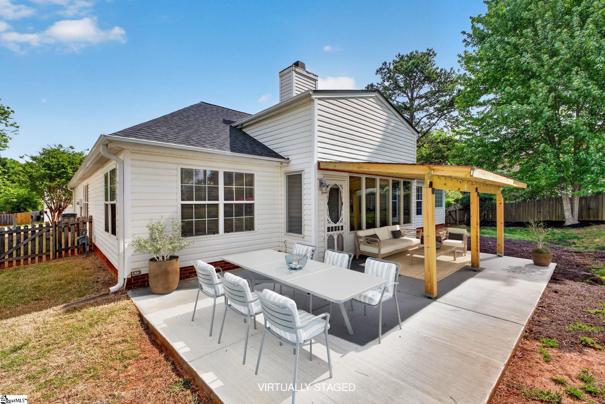 Welcome to 196 Birkhall Circle—an inviting, well-maintained home designed for easy one level living. This 3 bedroom, 2 bath home features an open floor plan perfect for both everyday living and entertaining. As you step inside, you’re welcomed by a spacious living area that flows seamlessly into the kitchen, breakfast nook, and dining space. The primary suite is a true retreat, offering a generous sitting area and a private bath complete with a garden tub and separate shower. Two additional bedrooms share a hall bath. Enjoy your morning coffee or unwind in the sunroom, which overlooks a private backyard. The large fenced yard provides plenty of space for gardening, entertaining, pets, or play. A detached outbuilding offers additional storage or space for lawn equipment. Located in a neighborhood with a community pool and just minutes from shopping and dining, this home combines comfort, convenience, and charm.