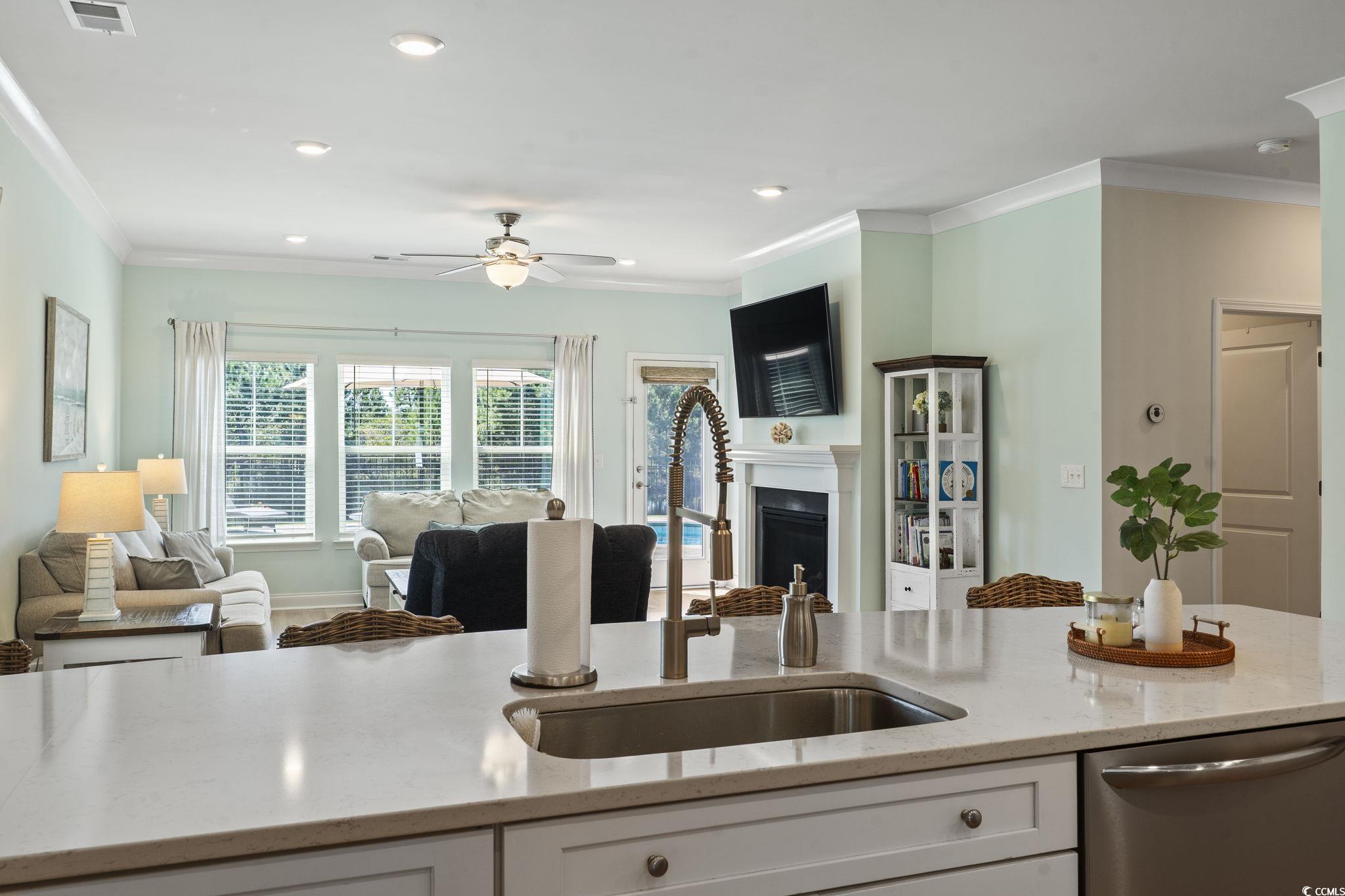 “METICULOUSLY MAINTAINED HOME IN A GATED COMMUNITY, FEATURING A CUSTOM SALTWATER POOL, TREE-LINED WATER VIEWS, AND GORGEOUS SUNSETS.” This stunning property shows like a designer showcase and is PRICED TO SELL! Featuring an array of HIGH-END UPGRADES, this home blends elegance, functionality, and resort-style living in one of Myrtle Beach’s most sought-after gated communities. From the moment you arrive, the INVITING FRONT PORCH sets the tone. Inside, a SPACIOUS FORMAL DINING ROOM offers wainscoting, a tray ceiling, and crown molding that extends throughout the main level, creating a refined and elegant atmosphere. The OPEN-CONCEPT FLOOR PLAN with soaring 10-FOOT CEILINGS flows seamlessly into the GOURMET KITCHEN. Here, you’ll find QUARTZ COUNTERTOPS, a natural gas cooktop and range, slow-close custom cabinetry with slide-out storage, a large pantry, and PREMIUM STAINLESS-STEEL APPLIANCES. The oversized breakfast bar provides ample seating and is sure to impress both chef and entertainer alike. The FIRST-FLOOR PRIMARY SUITE is a true retreat with a tray ceiling, spa-like bathroom featuring a GARDEN TUB, custom-tiled shower, DOUBLE-SINK MARBLE VANITY, and a generous walk-in closet. A conveniently located half bath and a spacious living room with a COZY NATURAL GAS FIREPLACE create the perfect setting for gatherings or quiet evenings at home. Step outside and enjoy your PRIVATE BACKYARD OASIS! The CUSTOM SALTWATER POOL is surrounded by paver patios, ideal for relaxing or entertaining. A REMOTE-CONTROLLED SUNSHADE provides comfort on sunny days, while the fenced yard ensures privacy and offers BEAUTIFUL VIEWS of the pond and its natural wildlife. Upstairs, four additional bedrooms provide plenty of flexibility. Each has generous closet space, while the fourth bedroom can easily serve as a game room, office, playroom, or SECOND SUITE thanks to its PRIVATE BALCONY. All bathrooms feature MARBLE COUNTERTOPS for an added touch of luxury. This home has been METICULOUSLY DESIGNED with comfort, efficiency, and convenience in mind. Notable upgrades include CUSTOM BLINDS and SHADES, a 6-ZONE IRRIGATION SYSTEM with Rain Bird control, INSULATED GARAGE DOORS, Rinnai tankless water heater, solar boards in the attic, WHOLE-HOME SURGE PROTECTOR, two-zone Carrier HVAC with natural gas furnace, and HURRICANE BOARDS for added protection. MODERN LIGHTING, upgraded ceiling fans, and dimmer switches complete the home with stylish details throughout. SAGO PLANTATION is a premier gated community located just minutes from the BEACH, GOLF, SHOPPING, DINING, and ENTERTAINMENT. Its central location near all major highways makes getting around the Grand Strand effortless. Situated in the AWARD-WINNING Carolina Forest school district, this home offers the perfect combination of luxury, lifestyle, and location. With its thoughtful design, COUNTLESS UPGRADES, and PRIVATE POOL RETREAT, this home deserves to be at the VERY TOP of your MUST-SEE LIST!