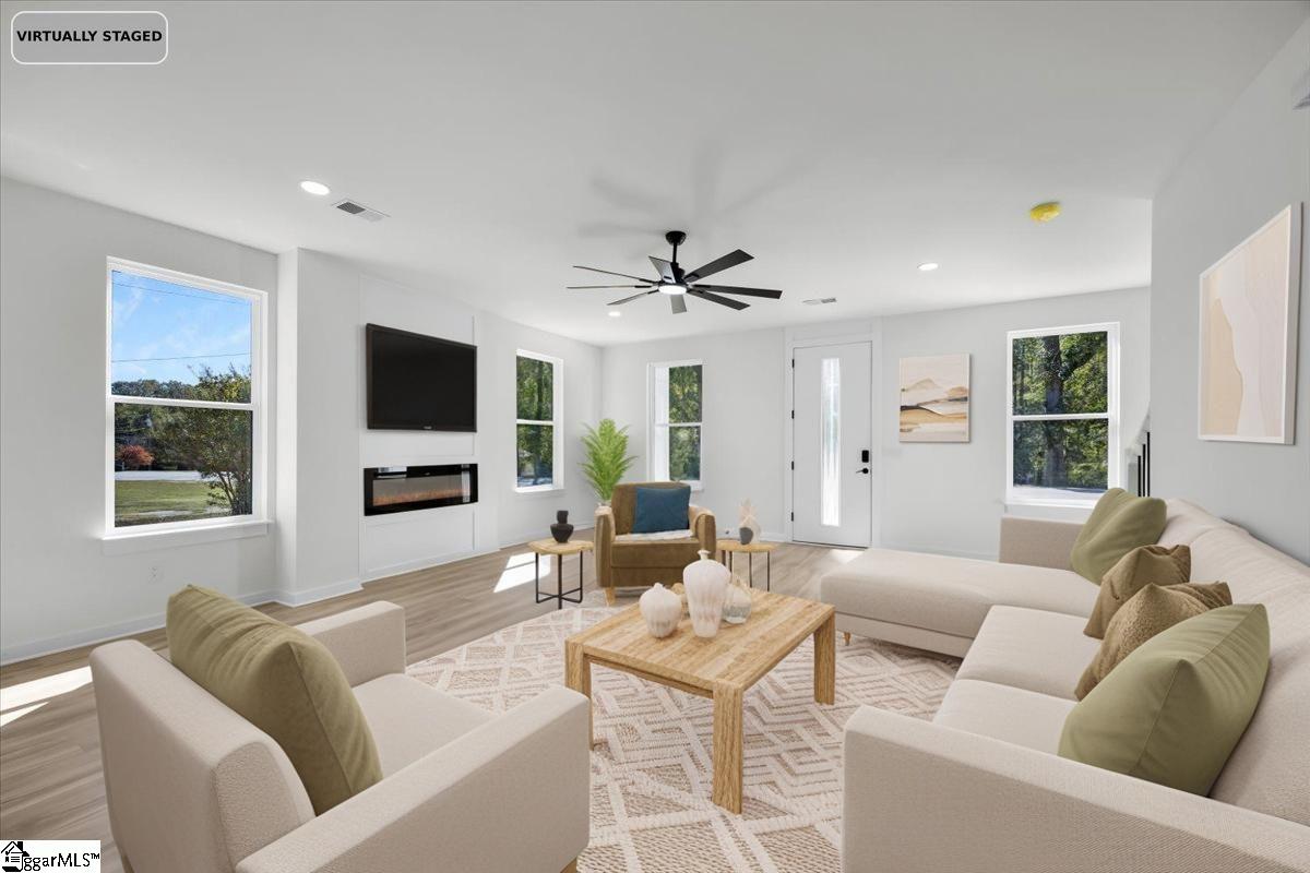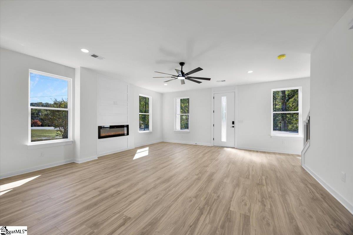 Welcome to 197 Eastbrook Dr in Woodruff — a beautifully built 3 bedroom, 2.5 bath home with 2,026 sq ft of stylish living space just minutes from the heart of Woodruff. Set on a .23 acre lot, this home offers both comfort and functionality. The kitchen features quartz countertops, a modern tile backsplash you would swear is wood, a large island, and plenty of room to gather. The living room is anchored by a cozy ventless fireplace, while durable LVP floors flow through the main areas (tile in the bathrooms & laundry). Upstairs, the huge owner’s suite is a true retreat with vaulted ceilings, a walk-in closet, a private balcony, and a spa-like bath complete with a tiled rainfall shower and dual benches. Two additional bedrooms and a full bath provide space for family or guests, plus there’s a convenient first-floor half bath and a laundry room with built-in shelving. Enjoy outdoor living on the covered back patio with ceiling fan, and take advantage of the two-car garage for easy parking and storage. Finished with low-E windows and a concrete plank exterior, this home blends style, efficiency, and durability. Mirrors & frameless glass shower doors to be installed, punch list items to be completed.