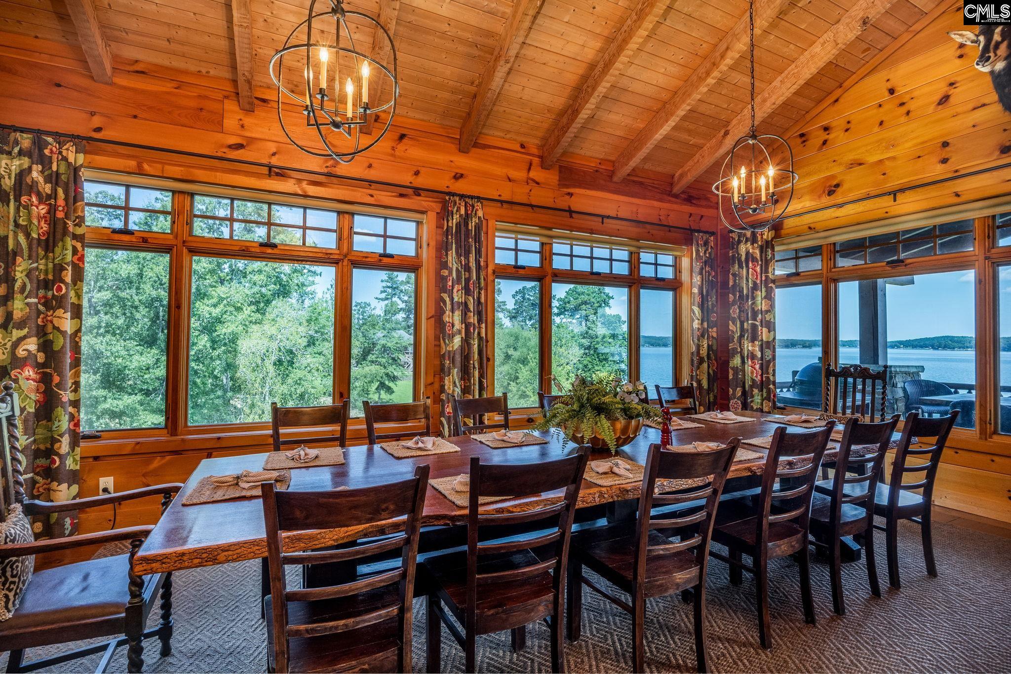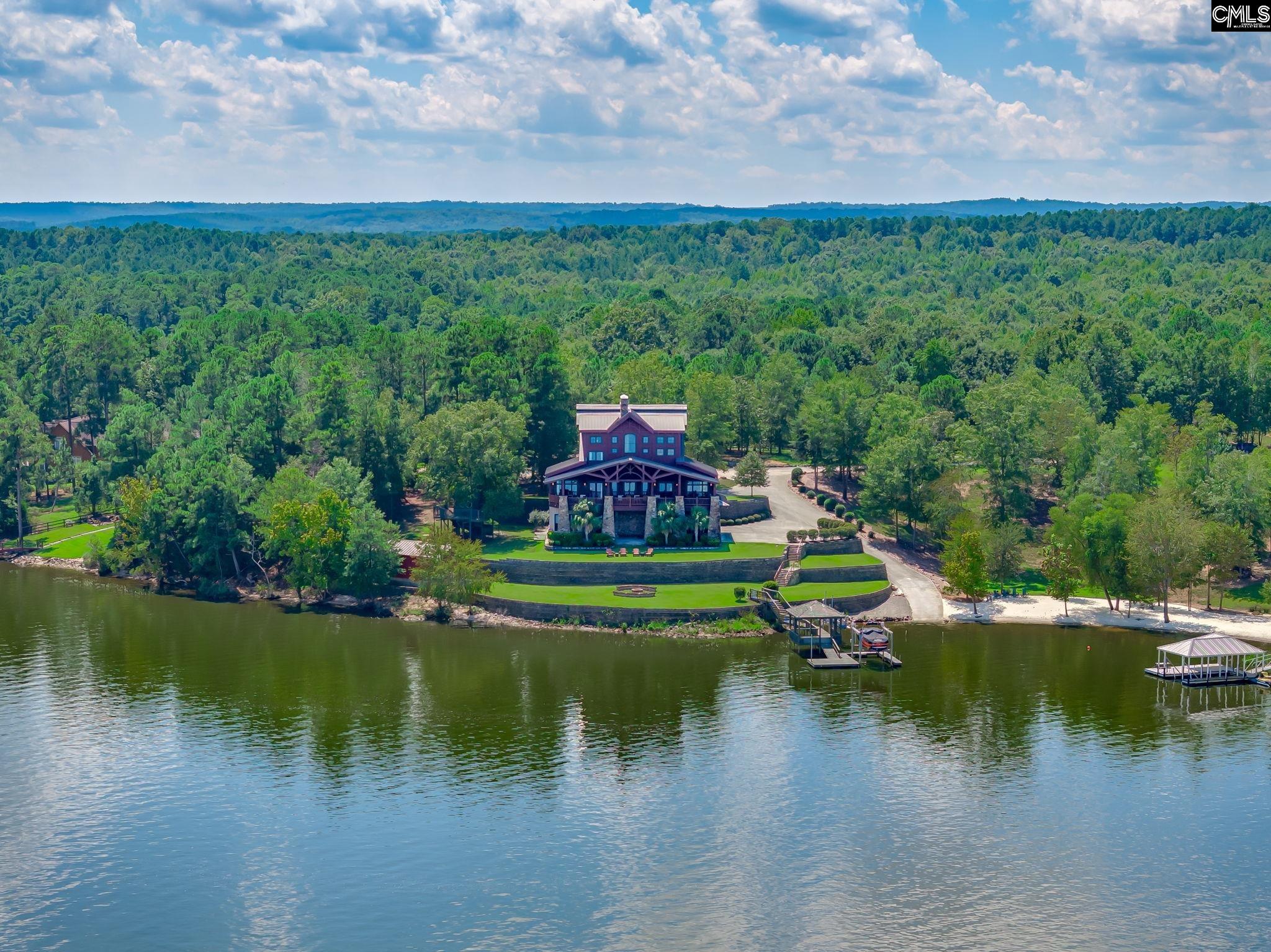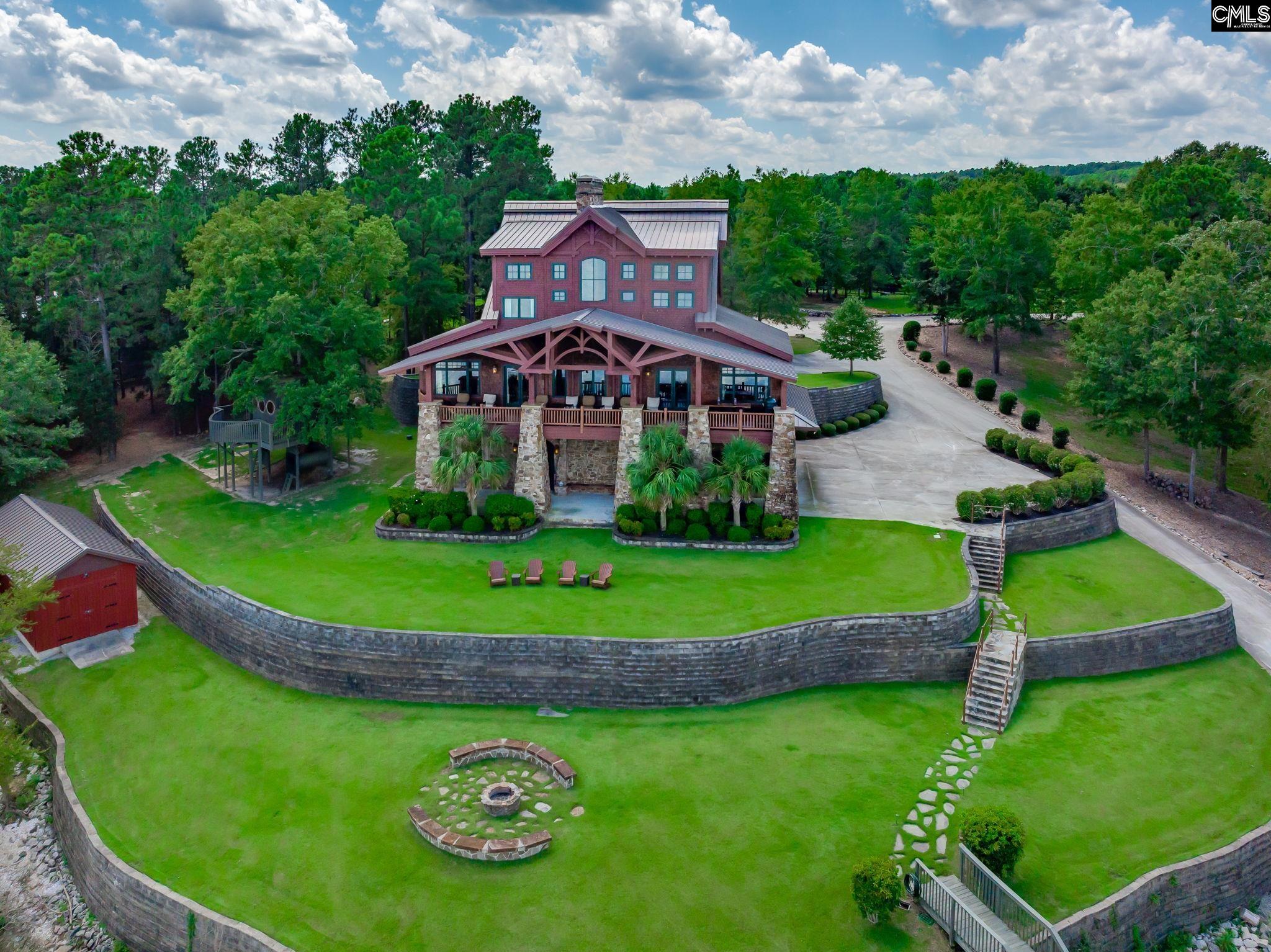 No words can do justice in describing the majestic “Rockbridge Lodge” on Lake Wateree. As you approach the property, the lodge’s massive and statuesque stone and wooden exterior is breathtaking. As you enter the grand room with the towering wood burning stone fireplace and soaring timber-beam ceilings, it becomes apparent this architectural masterpiece feels more like a resort than a home. The lakeside windows and doors to the large porches provide amazing views of the lake’s big water and distant wooded hills from the main floor and lower level, both of which will accommodate entertaining a crowd or just a few friends. The main floor’s open layout flows seamlessly between the entrance hall, kitchen, great room, and dining room, as well as includes a foyer half-bath, laundry room, and mud room with extra fridge and sink. Directly from the great room you enter the spacious “private haven” master suite with a large wood burning stone fireplace, numerous windows and doors overlooking the lake, very large walk-in closet, and well appointed master bathroom with separate shower and jacuzzi tub. From the main floor, a large timber stairwell with large windows and timber pole rails invites you upstairs to the upper floor balcony overlooking the great room and providing spectacular views. The balcony leads to two large guest suites with soaring ceilings, lofts, and one with a cozy but massive stone fireplace. It also includes storage closets and a seating area on the balcony.The lower level has a spacious versatile venue with multiple seating areas, pool table, game table, ping-pong table, new HD projector/12’ screen accessible with large arch-shaped castle-like doors that open to a large concrete apron for parking or entertaining. It also includes a walk-in concrete wall vault under the massive central fireplace large enough for a wine cellar/tasting room and safe keeping of an arsenal for the avid hunter, a four-bed bunk room, two bathrooms, and a large fully equipped theater room. Large tree house, boat house, boat ramp, RV hookups, irrigation system. Too much to list all the details! There is nothing comparable to this one-of-a-kind main channel property! Disclaimer: