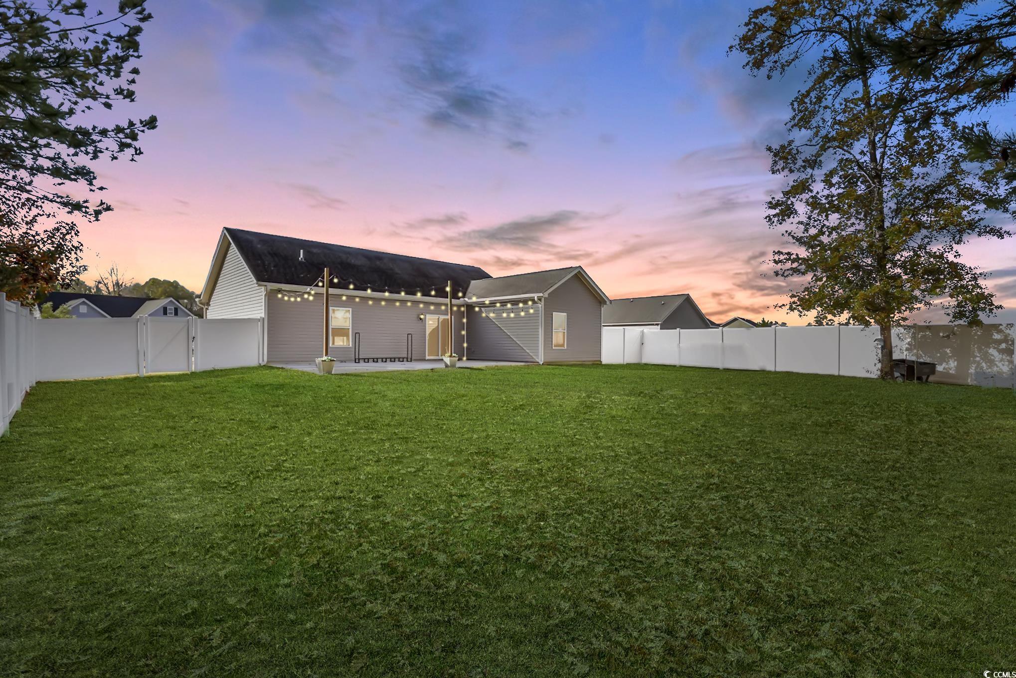 Tucked inside the peaceful Windsor Farms community, this move-in-ready 3-bedroom, 2-bath home blends quiet country living with the small-town charm Conway is known for, while still being an easy 30-minute drive to the beaches, restaurants, and entertainment of Myrtle Beach. Inside, you’ll enjoy a modern, open layout with a bright kitchen featuring stainless steel appliances and plenty of counter space for cooking and entertaining. The primary suite offers a relaxing retreat with dual vanities and a spacious master bath. Step outside and enjoy your own private backyard oasis. The upgraded hardscape and landscaping give the home great curb appeal, and the fully fenced yard is perfect for pets, kids, or outdoor gatherings. The concrete patio is ideal for grilling or unwinding at the end of the day while watching those beautiful Coastal Carolina sunsets. Windsor Farms is a friendly, walkable neighborhood with sidewalks and street lights for evening strolls. As the community continues to grow, residents will enjoy fully stocked ponds, perfect for fishing. Windsor Farms also features common areas; peaceful spots to relax, take a break, or gather with neighbors and enjoy the outdoors. You will absolutely love the unique, family friendly character and community vibe of Conway. The town transforms into "Halloween Town" every October and into a magical "Christmas Town" during the holidays, hosting wonderful events like the Rivertown Christmas and the Celebration of Lights, complete with a Christmas Market! Enjoy the quiet pace of Conway, while knowing that the endless dining, entertainment, and beaches of Myrtle Beach are just a short drive away. Stroll the scenic Riverwalk along the Waccamaw River and enjoy the local shops and dining in the charming, oak tree lined downtown. Top-tier medical care is nearby as well - 20 minutes to a Level III trauma center (Conway) and 40 minutes to a Level I trauma center (Grand Strand). Don't miss this chance to own a piece of peaceful country living with room to grow, all while having quick access to the beach and the heart of one of South Carolina's most beloved communities. Schedule your showing today and start living the Conway life!