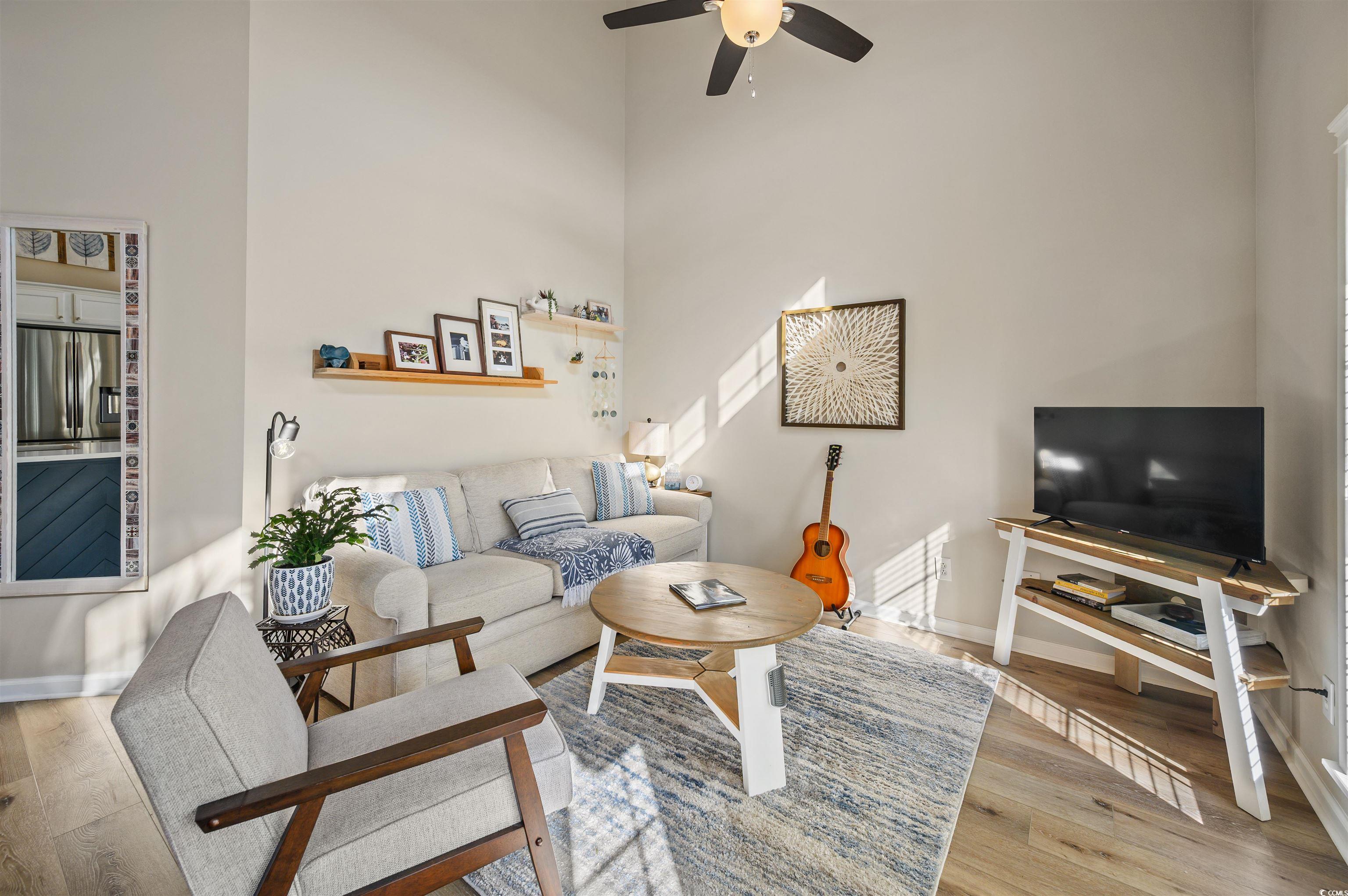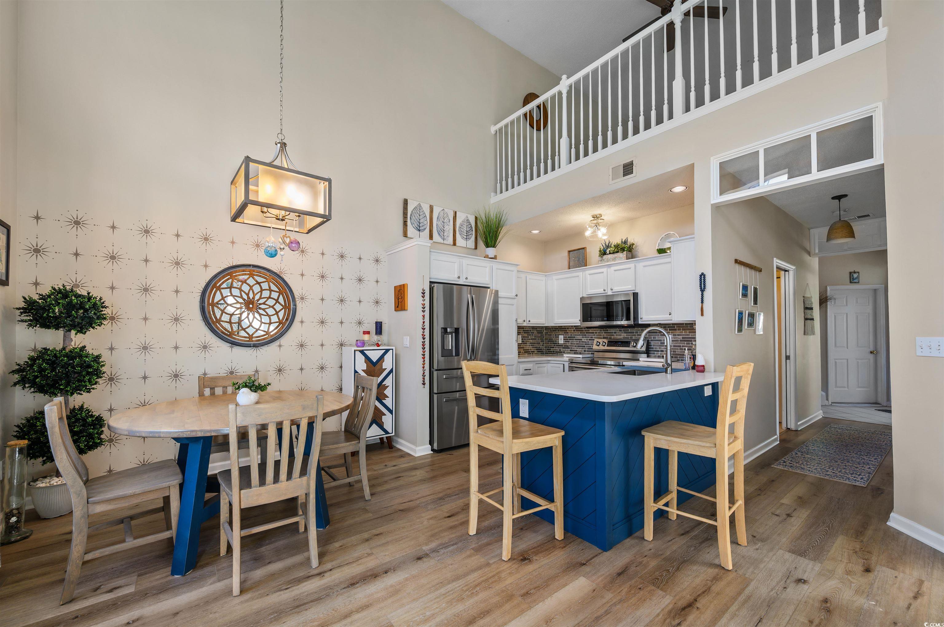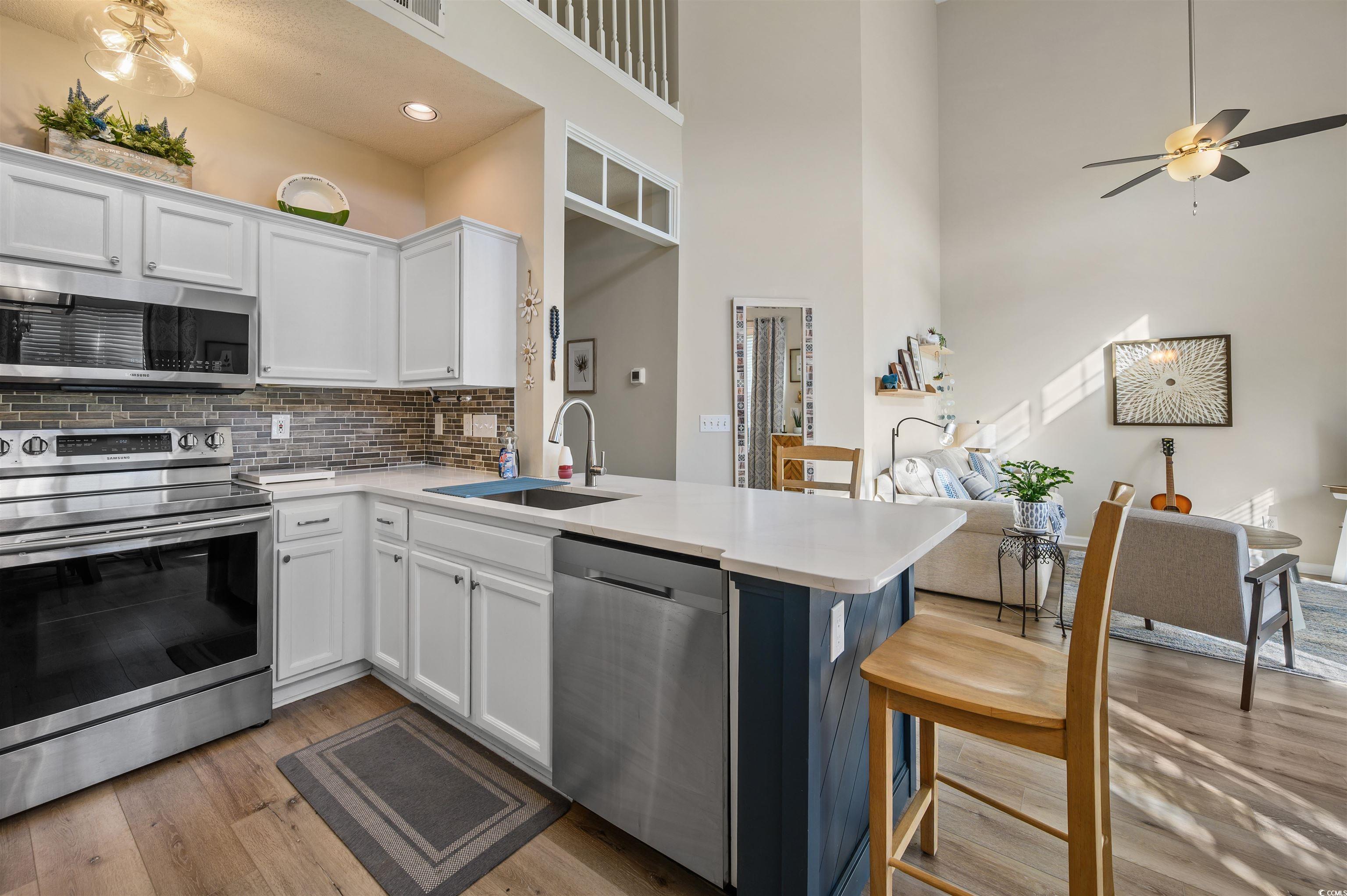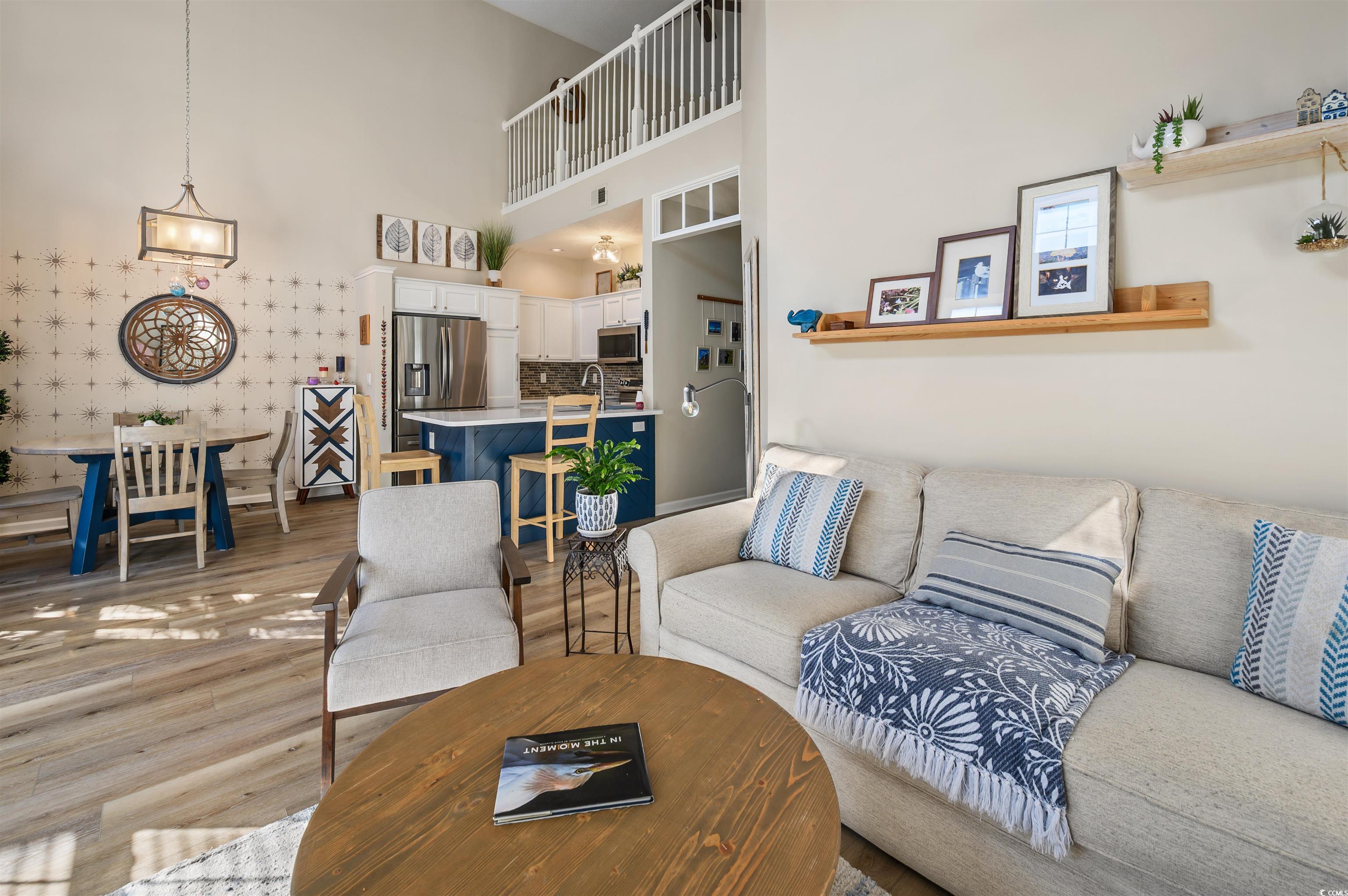 BACK ON THE MARKET, no fault of sellers. Looking for a great location that is close to Myrtle Beach and all it has to offer, look no further; tucked away in this quiet, serene and well-established neighborhood you will find this property! This unit in Longwood Lakes is a very well-maintained, 2BR 2.5BA townhome with a 1 car attached garage. Original owners, plus many, many upgrades completed less than 5 years ago, including the HVAC, Water Heater, flooring and more! This is a NO RENTERS COMMUNITY, which will be sure to protect property values. Upon entering this home, you will be amazed at the natural light and 19 ft. ceiling in the living/kitchen area! Wait until you see this kitchen, in 2020 a new Samsung appliance package was installed, gorgeous quartz countertops and a stunning peninsula with detailed painted shiplap. The soaring ceilings in the kitchen area make it so inviting!! Primary bedroom with an en-suite is on 1st floor, along with a 1/2 bath for guests. Loft on 2nd floor could be set up as a gaming room, office, or sitting area. A wonderful feature of this community is the manicured landscaping that the HOA maintains. In addition to the landscaping the HOA fee also includes; water and sewer, trash pickup, pool services, cable and more. This is a community that you can call home, whether you like to enjoy your morning coffee by the lake, or take part in the various community planned activities, the choice is yours...take a look and act now! This unit will not last long. Some furniture may be negotiable. Make this place your home! All measurements are the responsibility of the buyer.