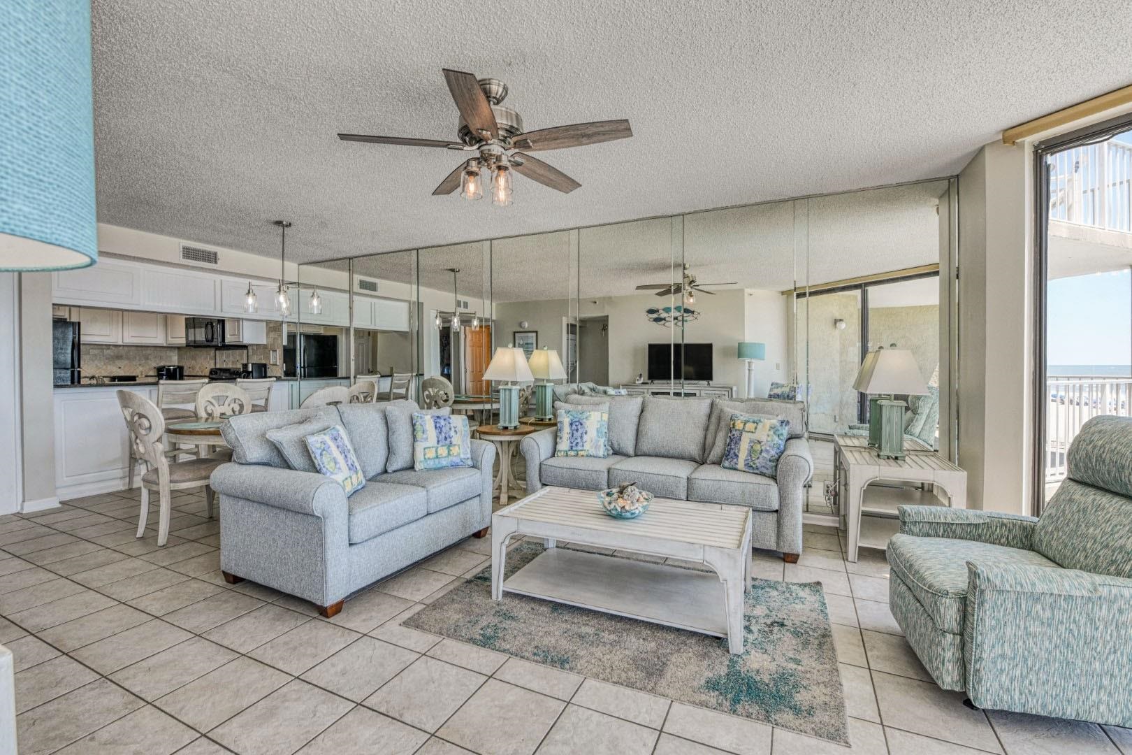 Welcome to your oceanfront escape at One Ocean Place, one of the most sought-after luxury complexes along the Garden City coastline. This beautifully maintained 2-bedroom, 2-bath condo offers a rare combination of breathtaking views, spacious design, and true coastal comfort — all from the highly desirable second floor, with the added convenience of covered parking available directly on your level — no elevator required. From the moment you step through the foyer, your attention is immediately drawn to the expansive views of the Atlantic Ocean. Floor-to-ceiling glass sliding doors flood the living space with natural light, while the wall-to-wall mirrors amplify the scenery, creating a bright, open atmosphere where the ocean becomes part of your everyday living experience. The spacious living area flows seamlessly onto a private oceanfront balcony — perfect for morning coffee, relaxing afternoons, or unwinding as the sun reflects across the water. On clear days, you can even take in views stretching north to Surfside Beach Pier and south toward Garden City Pier. The open-concept layout continues into the dining area and fully equipped kitchen, featuring granite countertops, ample cabinetry, and everything needed for everyday living or entertaining. Whether you're preparing a quick breakfast before the beach or hosting guests, this space is both functional and inviting. The oceanfront primary suite is a true retreat, complete with its own floor-to-ceiling sliding glass doors leading directly to the balcony, allowing you to wake up to stunning water views. The suite also includes a beautifully updated bathroom with a walk-in tiled shower, modern vanity, and a clean, coastal-inspired design. The guest bedroom is thoughtfully arranged with bunk accommodations, making it ideal for family and visitors, and is conveniently located next to a fully renovated second bathroom with a glass-enclosed shower and updated finishes. This unit is designed to comfortably accommodate multiple guests, making it an excellent option as a primary residence, second home, or income-producing investment. Additional features include tile flooring throughout, in-unit washer and dryer, ceiling fans, and multiple TV setups for added convenience. One Ocean Place offers a secure, well-maintained environment with gated access, on-site security, and private beach entry. Residents and guests enjoy resort-style amenities including two oceanfront pools, hot tubs, expansive sun decks, a fitness center, and a private owners' lounge. Covered parking on the same level as your unit and elevator access add to the ease of everyday living. Ideally located just minutes from the Garden City Pier, Marlin Quay Marina, and some of the area's most popular waterfront dining spots like Sara J's and Gulfstream Café, this property also offers quick access to the entertainment and attractions of the Grand Strand, including The Carolina Opry, SkyWheel Myrtle Beach, and Broadway at the Beach. Whether you're searching for a relaxing coastal getaway, a full-time oceanfront residence, or a high-demand investment property, this condo at One Ocean Place delivers the perfect blend of location, lifestyle, and unforgettable views.