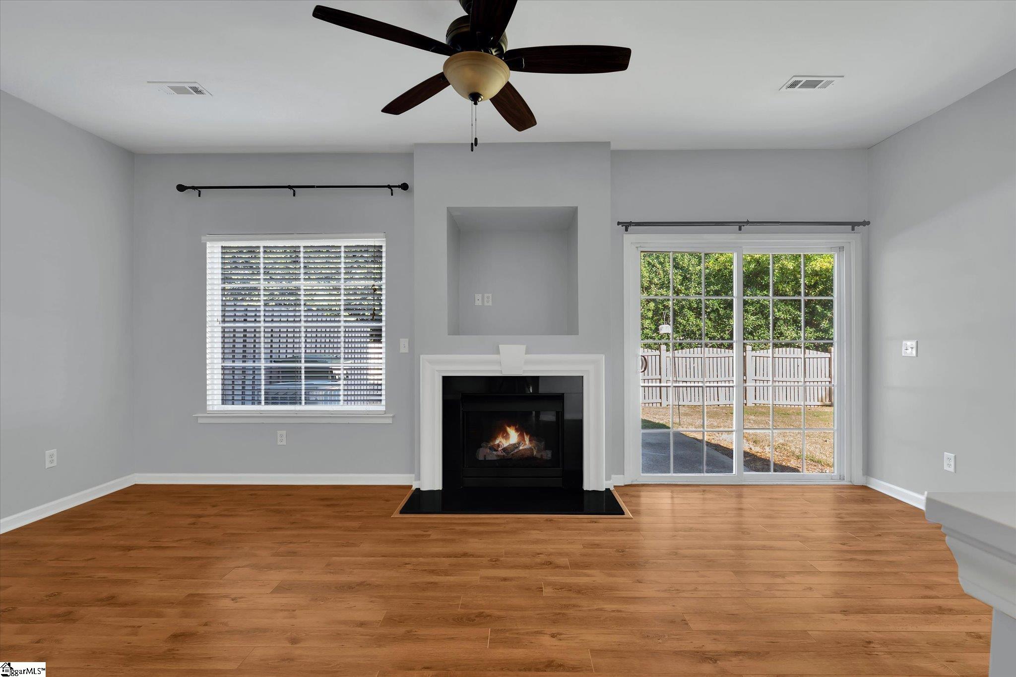 Charming Residence in The Townes at Brookwood – Gated Community with Resort-Style Amenities - Welcome home to this beautiful 3-bedroom, 2.5-bath townhome ideally situated on a premium corner lot. Enjoy the convenience of maintenance-free living with an HOA that covers lawncare, landscaping, and access to community amenities including a sparkling pool, gated entrance, and scenic recreational paths. Step inside to a bright, open-concept living space featuring a gas log fireplace, dining area, and a slider leading to the private backyard. The light-filled kitchen offers plenty of counter space and a peninsula overlooking the living room, perfect for meal prep or casual dining. Upstairs, the primary suite provides a relaxing retreat with a tray ceiling, dual sinks, separate shower and soaking tub, and a walk-in closet. Two additional bedrooms and a full bath complete the upper level. Outside, enjoy your covered front porch and the expansive lawn with mature trees, offering both privacy and curb appeal. Located just minutes from downtown Simpsonville, this home blends comfort, community, and low-maintenance living in one perfect package.