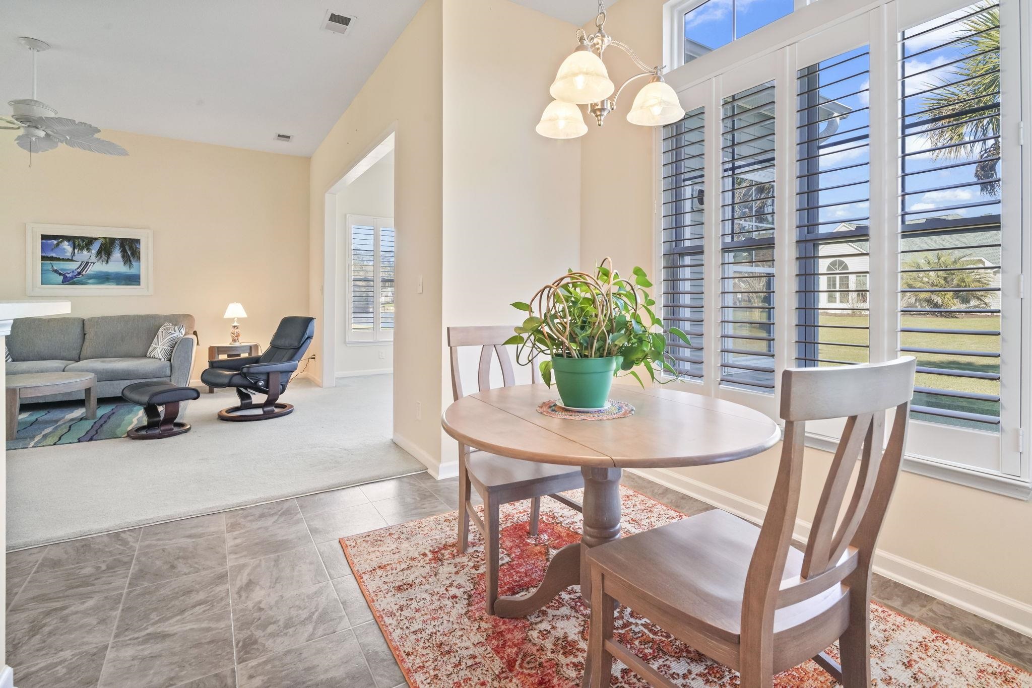Positioned on a desirable corner lot within the Linksbrook at Prince Creek community, this well-maintained 4 bedroom, 2 bathroom home offers a bright, open layout paired with comfortable coastal living. A spacious driveway, an attached side load, two-car garage, and manicured landscaping create a strong first impression, offering both functionality and curb appeal. Inside, a light-filled foyer transitions seamlessly into the main living space. Vaulted ceilings and abundant natural light enhance the openness, while plantation shutters add both style and functionality. The living room flows effortlessly into a stunning sunroom featuring a dramatic arched window, where serene pond views create a peaceful backdrop for everyday living. The kitchen is thoughtfully designed with ample cabinetry, generous counter space, and easy access to a sunny breakfast nook surrounded by windows. This layout provides both convenience and connection to the main living areas, making it ideal for both daily routines and entertaining. A split-bedroom floor plan provides privacy and the primary suite features a tray ceiling, large windows, and a spacious en-suite bath. Additional bedrooms are well-proportioned and located near a full bath, offering flexibility for guests or home office needs. Upstairs, you will find the 4th bedroom/bonus room. The home's layout allows for multiple uses of space, adapting easily to changing lifestyles. Outdoor living is equally appealing, with both the sunroom and rear patio overlooking the pond, offering a quiet setting to relax, dine, or unwind while enjoying the natural surroundings. Neutral finishes, consistent natural light, and a functional flow contribute to a clean, move-in-ready feel throughout the home. Every space reflects a balance of comfort and practicality. Living in Linksbrook at Prince Creek means access to outstanding amenities including a clubhouse, pool, hot tub, fitness center, and tennis courts. The neighborhood offers a peaceful setting while remaining conveniently close to everything. Within minutes, you can reach shopping, dining, entertainment, Brookgreen Gardens, Huntington Beach State Park, and the Atlantic Ocean. Murrells Inlet's MarshWalk is approximately 10 minutes away, known for its waterfront dining, live music, and coastal atmosphere. Golf enthusiasts are surrounded by top courses including TPC, Caledonia, True Blue, and Blackmoor. The Wacca Wache Marina and Intracoastal Waterway are only five minutes away for boating and fishing. Myrtle Beach International Airport is roughly 15 minutes from the home, and nearby beaches are just a short drive. A bright interior, pond views, flexible space, and resort-style amenities combine to create a truly desirable home in one of Murrells Inlet's most sought-after communities. Measurements are not guaranteed. Buyer is responsible for verifying.