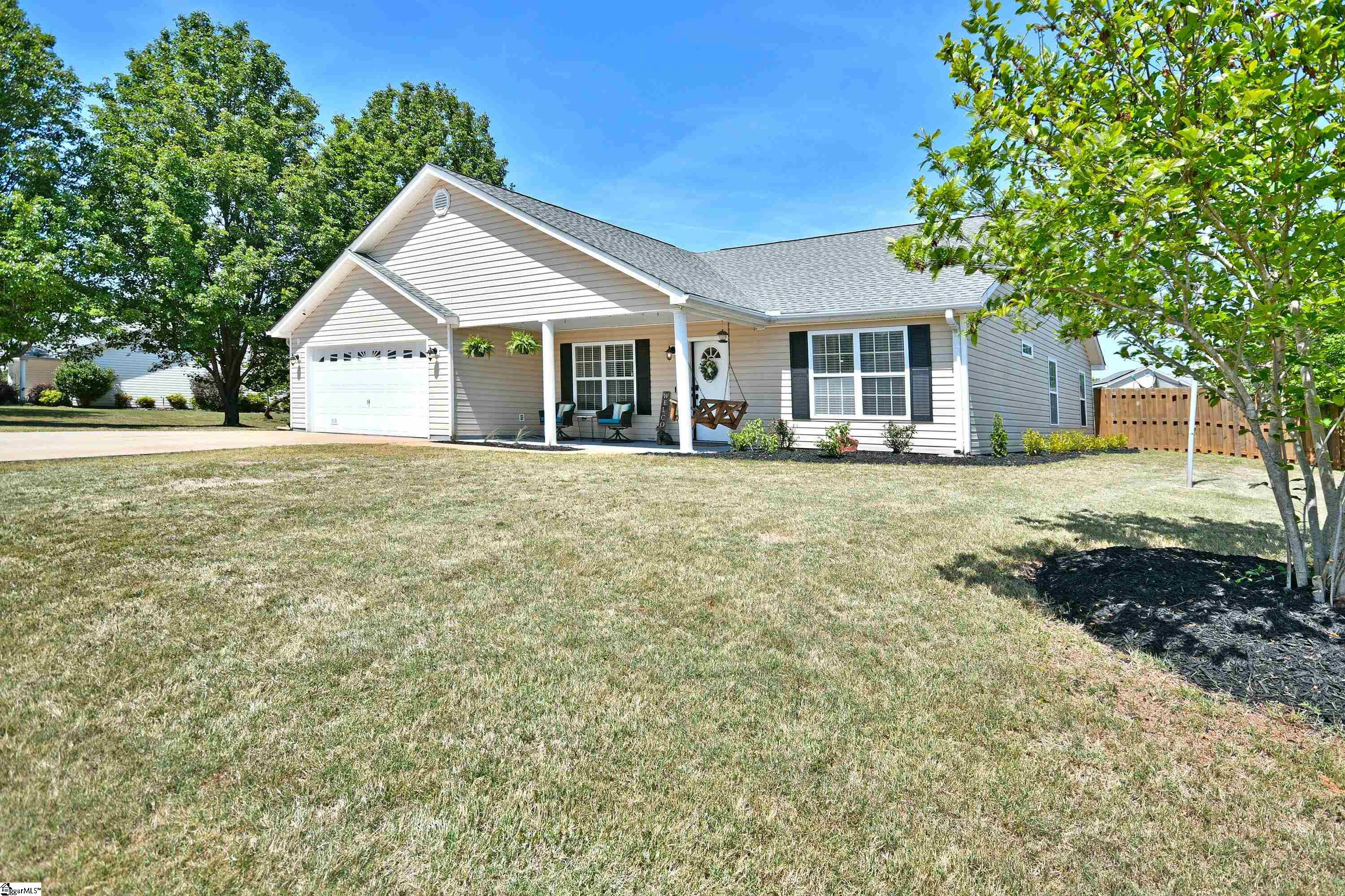Welcome to 2 Spring Sky Court, a delightful ranch-style home nestled in the peaceful Christopher Meadows neighborhood of Taylors. This charming haven offers a perfect blend of comfort and modern living, ideal for creating memories that last a lifetime. As you step inside this stunning 1,684 square foot home, you're greeted by an open floor plan that bathes the living space in natural light. The clever split-bedroom design ensures privacy, making it an exceptional choice for both relaxation and entertaining. Imagine hosting friends and family in the spacious living room, where laughter and stories come alive against a backdrop of cozy decor. The heart of this home is undoubtedly the updated modern kitchen, designed with the home chef in mind. Featuring sleek countertops, contemporary appliances, and ample storage, it’s not just a kitchen; it’s a canvas for culinary creations and culinary adventures. Picture yourself whipping up gourmet meals or cozy weekend breakfasts, all while being part of the lively atmosphere of your home. Stepping outside, you’ll find an expansive, fenced-in backyard that invites you to enjoy nature. Whether you're planning leisurely afternoons in the sun or fun-filled gatherings under the covered back patio, this outdoor space is sure to become your personal oasis. It’s not just a yard; it’s a place where possibilities abound—gardens, play areas, or maybe even a quiet retreat with a good book. In addition to the generous backyard space, the property boasts a detached two-car garage that doubles as a workshop, complete with electricity. Whether you're a crafting enthusiast or a DIY warrior, this space is a wonderful asset for working on projects. There's also a convenient secondary outbuilding perfect for storing gardening tools or recreational supplies—everything you need is right at your fingertips! Another fantastic highlight of this home is its prime location. Just minutes away from Greer and within the desirable Blue Ridge school district, it offers easy access to shopping, dining, and outdoor activities. Plus, without the constraints of a homeowner's association, you have the freedom to personalize your living space as you see fit. This beautiful home at 2 Spring Sky Court provides the perfect backdrop for a fulfilling lifestyle. Every corner exudes warmth and potential, making it an ideal choice for creating a vibrant, joyful home. Don’t miss out on this opportunity—schedule a showing today and get ready to make your dream a reality!
