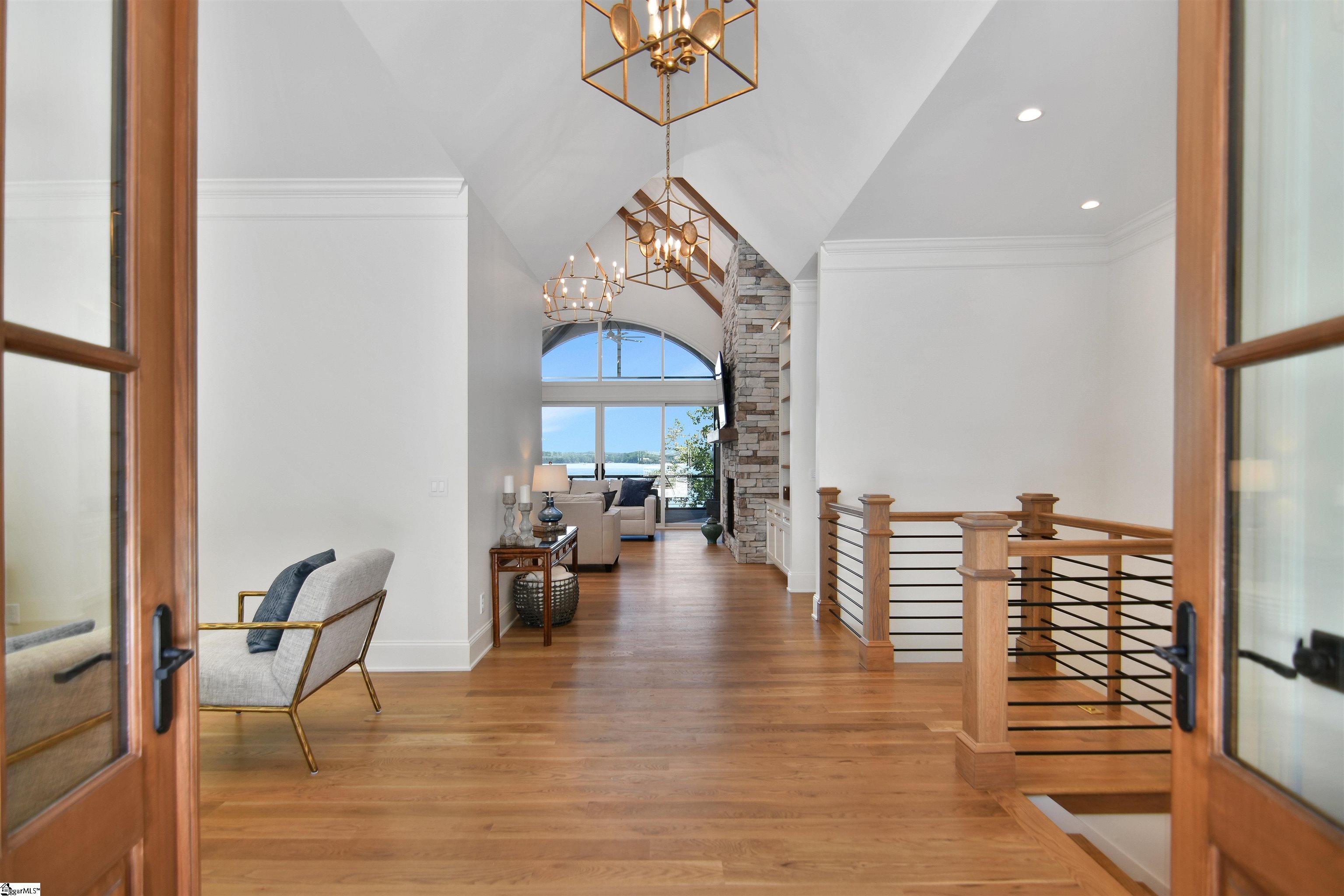 Custom-Built Lake Keowee Home with Expansive Water Views! Experience luxury lakeside living in this custom-built Lake Keowee home featuring sweeping water views and high-end finishes throughout. The main level boasts 5” white oak hardwood floors, a stunning screened porch with a gas stone fireplace, and a bright, open floor plan perfect for entertaining. Located in the boutique Lake Keowee neighborhood of Keowee Harbours, the gated community has a private boat ramp for owners, clubhouse, swimming pool, and tennis/pickleball courts. You will be right at home with the great people in Keowee Harbours. The chef’s kitchen is a showstopper with quartzite countertops, a Monogram 6-burner dual-fuel double oven range, a Professional Series 66” wide (33” for each side) Frigidaire refrigerator, and an impressive 9’ x 8’ walk-in pantry. Designer lighting selections from Greer Lighting add elegance and warmth to every space. Retreat to the spacious primary suite, which includes a spa-inspired tile bathroom and a massive 16’ x 14’ walk-in closet. A private office or den on the main level offers beautiful lake views and could be converted into an additional bedroom if desired. The mudroom hallway, pantry, and laundry room all feature stylish herringbone tile floors. Upstairs, a versatile bonus room above the garage offers flex space for a variety of needs. The lower level is built for fun and functionality, with a large rec area ideal for a pool table or ping pong, a second living room, a custom bar with leathered granite countertops, ice maker, and a walk-in wine and spirits room. There’s also generous storage space and a second laundry room on this level. Gently sloping terrain leads to the lake, where you’ll find a refurbished dock with a brand new 5,500 lb HydroHoist boat lift. Additional premium features include: Four-zone HVAC system, including separate system in master suite for individualized comfort, Composite LP Smart Siding and architectural shingles with 40-year warranty, High-end Windsor Windows & Doors package (a step above common options like Pella), second laundry/lake room with drainage, and outdoor shower. Ownership is down to the 800' elevation line. This is a rare opportunity to own a thoughtfully designed lakefront home with luxury, comfort, and craftsmanship at every turn.