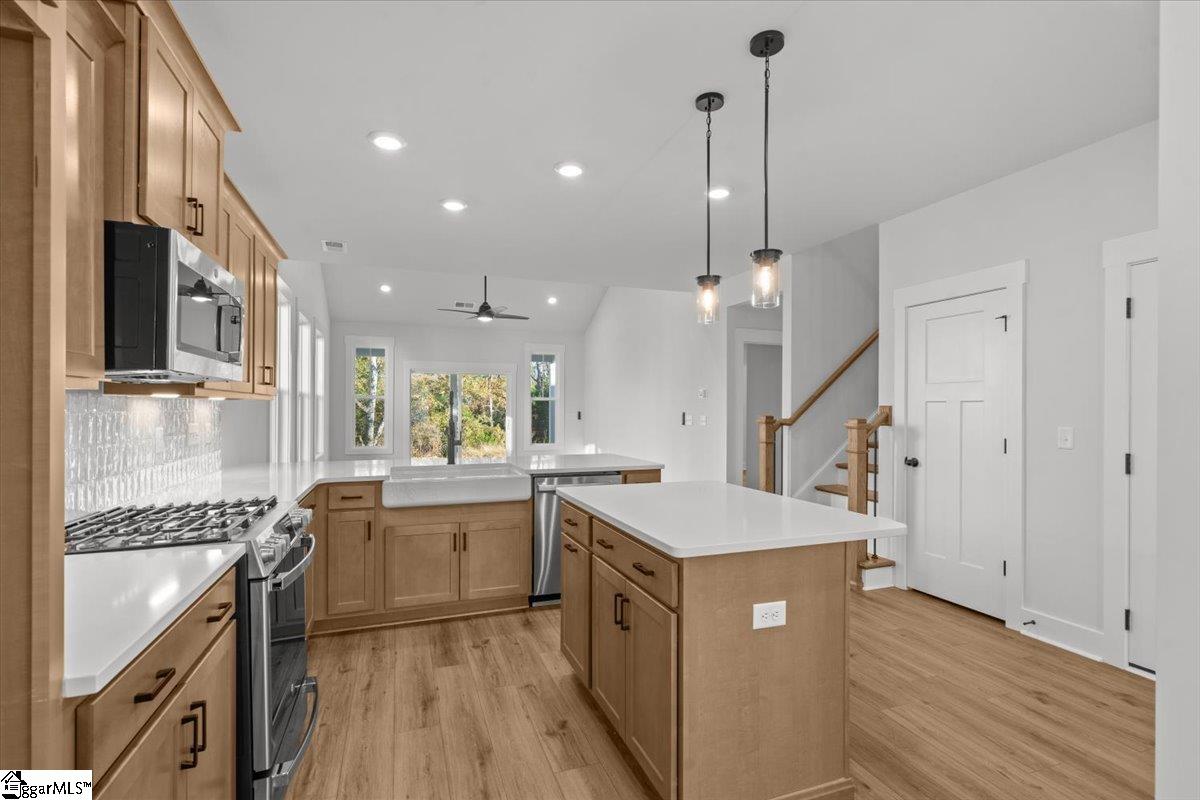 **Move in before the end of the year and receive a move in package including a refrigerator, washer/dryer and blinds!** Welcome to Woodglen! New craftsman-style homes in Piedmont, SC with future community amenities including a pool, cabana, pickleball courts, and a playground. Immerse yourself in modern comfort and open-concept living with over 2100 square feet of functional living space. Entering the Finley from your inviting covered front porch into your bright foyer, you come to your formal dining room with coffered ceilings that leads into your beautiful kitchen featuring light brown cabinetry, white Quartz countertops, tiled backsplash, under cabinet lighting, center island and pennisula with farmhouse sink for extra prep space and seating, and stainless steel appliances including a gas range/oven. The high ceilings and large windows in the living room allow the room to feel open and get tons of natural light and the covered back porch overlooks your large backyard. Relax in your main level Primary Suite that features trey ceilings, a generous walk in closet, double sinks, and large tiled shower with a built in seat. The laundry and powder room complete the main level. Up the Oak staircase are 3 additional bedrooms, each with a walk in closet, full bath with double sinks, and a great unfinished space perfect for extra storage! Smart home technology, energy-efficient design, and a dedicated local warranty team ensure long-term comfort and convenience. Woodglen is conveniently located a mile away from I-85 offering quick access to Easley, Greenville, Anderson and the rest of the upstate. Our community features ranch style and 2-story designs with open concept layouts and spacious first or second level primary suites, Embrace outdoor living with nearby parks, hiking, and fishing, all while enjoying a private, serene setting paired with convenient access to everything you need. Woodglen is the perfect place to call home! Come by today for your personal tour and make Woodglen your new home! See Sales Agent for additional pricing information.