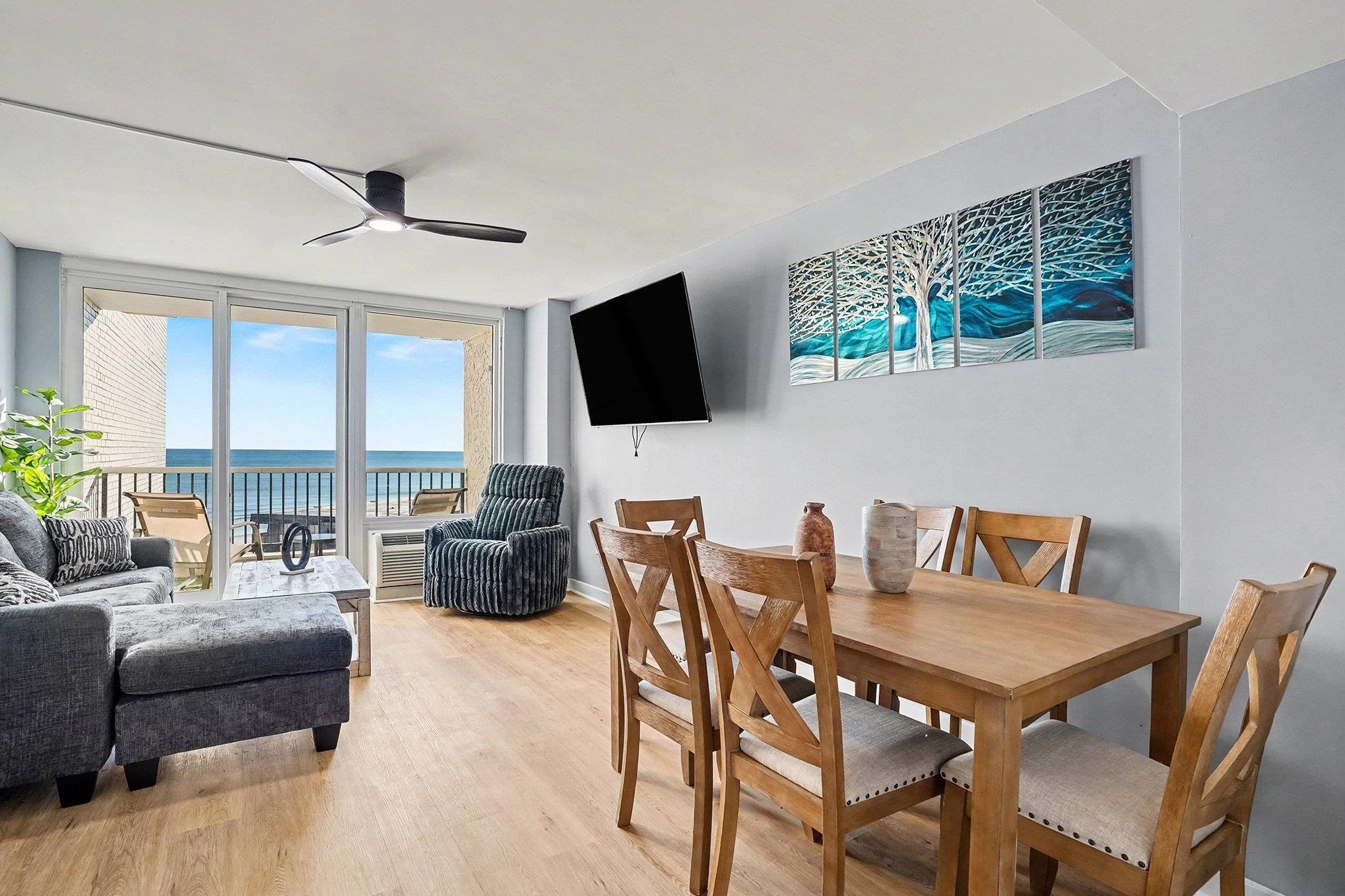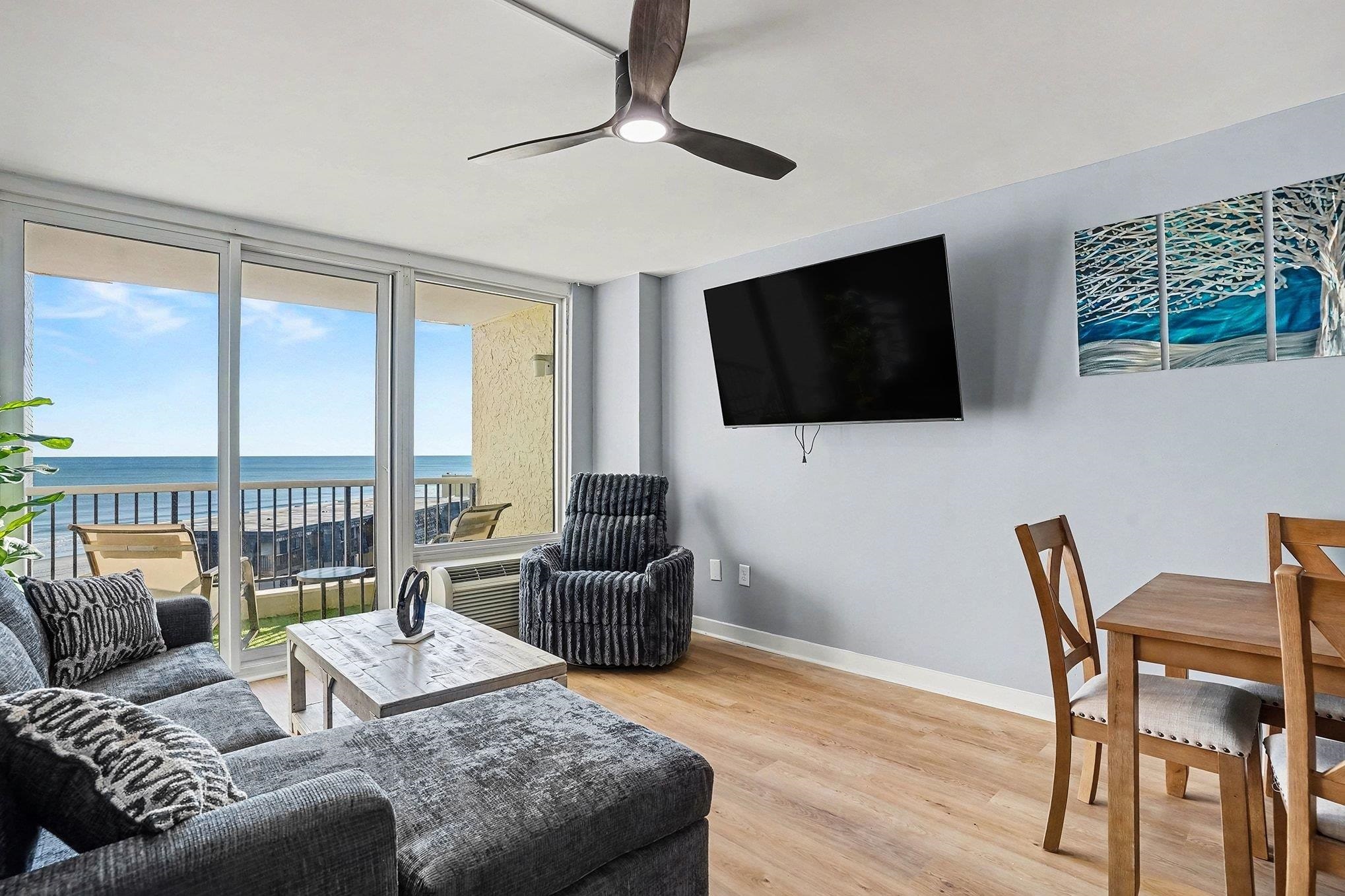 Welcome to Carolina Winds! Fully furnished and totally renovated, 1 bedroom 1 bathroom ocean view unit located on the 6th floor. The kitchen feature granite counter top, modern backsplash and has everything you need to prepare your favorite meals. This unit offers a bedroom with one King bed and a beautifully concealed Murphy Queen bed. A living room dining combination with brand new sofas and a new dining table for 6. One of the very few units to offer washer and dryer in unit!! The bathroom has been converted to a stand up tile shower with a brand new vanity and luxurious fixtures. The ocean view balcony is accessed through the main living area, Enjoy your morning coffee or an evening cocktail while watching the sunset over the beautiful Atlantic Ocean, sitting on these brand new comfy rocking chairs. Carolina Winds offers indoor & outdoor pools, hot tub/spa, lazy river, game room, fitness room, laundry room, restaurant and of course the Ocean. Carolina Winds is conveniently located in the heart of Myrtle Beach close to all of the shopping, dining, entertainment, golf, area attractions and all the Grand Strand has to offer! Whether an investment or your vacation get-a-way, this is the perfect unit.