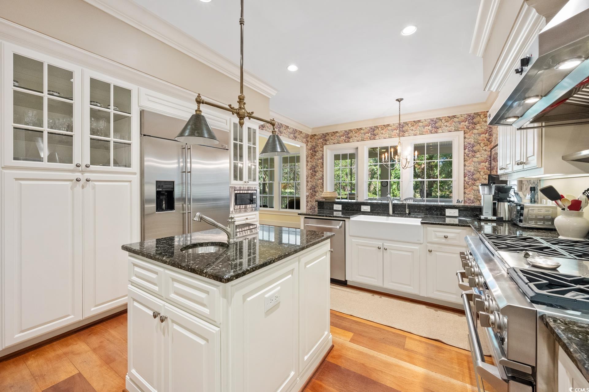 Experience timeless Lowcountry elegance at 200 Brandon Way, a beautifully crafted home nestled beneath a canopy of majestic live oaks along DeBordieu’s famed golf course. Overlooking the scenic #4 Green and a tranquil pond, this residence combines classic coastal architecture with refined interior design—perfect for those seeking both comfort and sophistication. Step inside to discover rich hardwood floors and inviting natural light that set the tone for gracious living. The family room centers around a warm gas fireplace, creating a perfect gathering space, while the stunning office/library offers custom cabinetry, rich built-ins, and a quiet retreat for work or reading. The gourmet kitchen features granite countertops, stainless-steel appliances, a work island, and an eat-in dining area overlooking the lush backyard and just off a stunning formal Dining Room. A large walk-in pantry and convenient half bath add to the home’s thoughtful functionality. The primary suite is a private sanctuary, complete with its own gas fireplace, his-and-her vanities, a spa-inspired bath with claw-foot tub and spacious shower, and generous walk-in closets. Upstairs, guests and family will enjoy three oversized bedrooms and two large full baths, each designed for comfort and privacy. Outdoor living takes center stage with a gracious front porch perfect for greeting neighbors and a large rear porch overlooking the peaceful pond and golf course beyond. On the ground level, there’s ample storage for golf carts, bikes, boats, and more—ideal for a coastal lifestyle. Located within the private, gated community of DeBordieu Colony, residents enjoy access to unparalleled natural beauty from oceanfront to marshland and optional access to championship Pete Dye-designed golf course, private beach club, tennis and fitness facilities, dining at the clubhouse and Blue Heron Beach Grill. Whether full-time or part-time, 200 Brandon Way offers a lifestyle that perfectly captures the essence of the South Carolina coast—gracious, relaxed, and undeniably DeBordieu.
