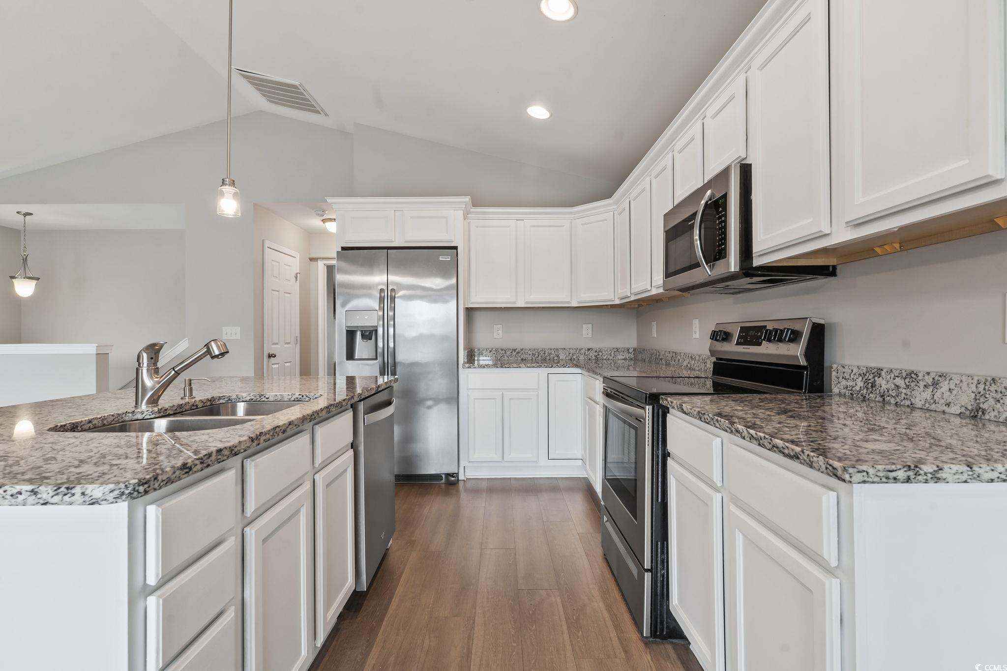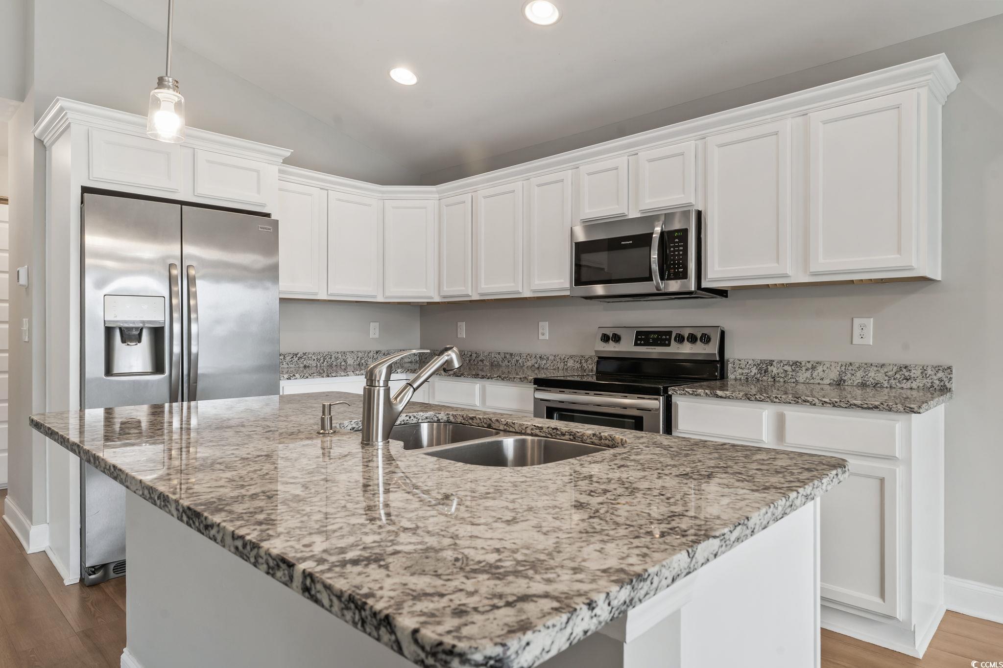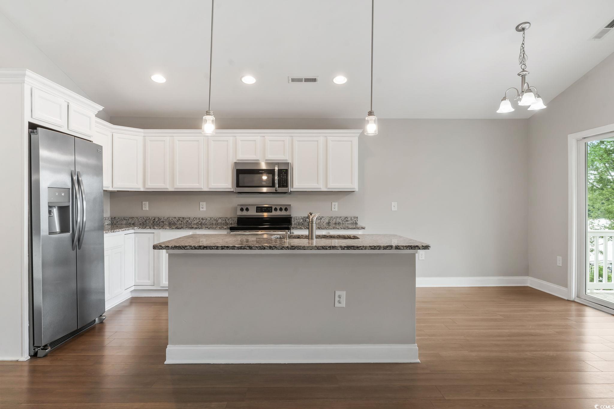 Open the door to your dream home in the highly sought-after Kayak Kove community! Nestled along a stunning 28-acre lake, perfect for kayaking, paddle boarding, or even fishing this home offers the ideal blend of comfort and coastal living. The first level features 2 bedrooms, a full bath, and laundry for everyday convenience. Upstairs, you’ll find a bright, open floor plan with a spacious living and dining area, ideal for entertaining. The kitchen is equipped with stainless steel appliances, granite countertops, a work island with a breakfast bar and ample storage. Step out onto the private balcony to sip your morning coffee or unwind with an evening drink while enjoying the beautiful lake views. The master suite is a true retreat, offering a large bath, linen storage, and a generous walk-in closet. Additional highlights include a 2-car garage, abundant storage throughout, and yes, even your Golf Cart is allowed so load up and head to the beach that is only 2.5 miles away. This location is hard to beat, you’re only minutes from the famous Murrells Inlet Marsh Walk, award-winning golf courses, shopping, and the Grand Strand’s best restaurants. This home is a must see so call today for your private showing!