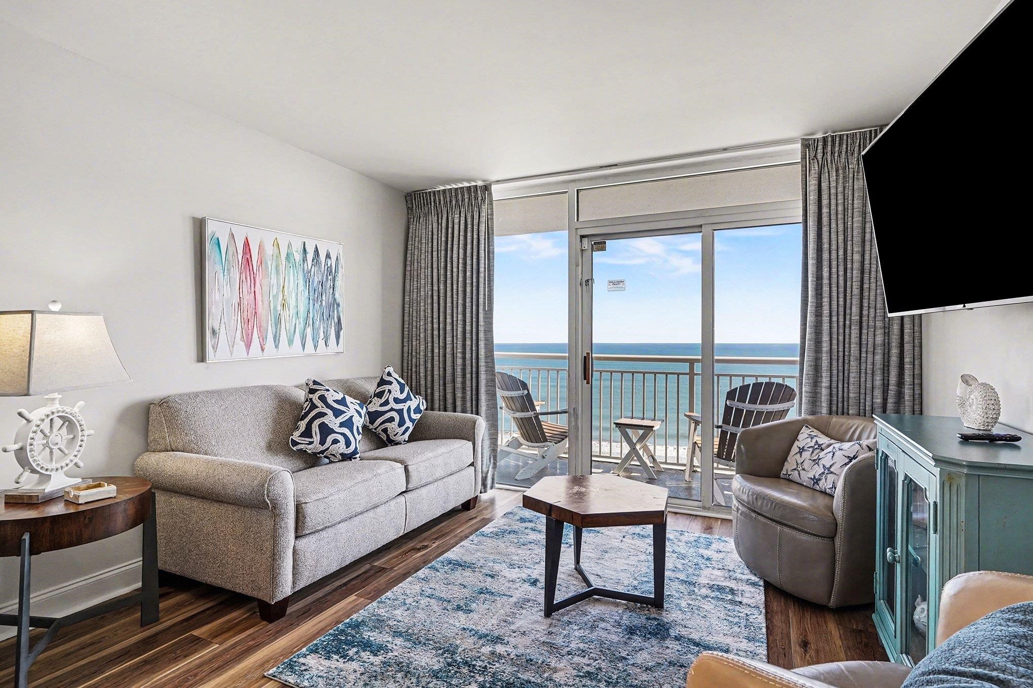 Experience coastal luxury in this immaculate three-bedroom, two-bath direct oceanfront corner condo located in the highly sought-after Camelot by the Sea. Perched on the tenth floor, this bright and airy residence offers breathtaking panoramic ocean views from the expansive balcony, with the primary bedroom enjoying its own private access. The thoughtfully furnished interior has been recently refreshed with new LVP flooring throughout and fresh paint, giving the property a clean, modern coastal feel. The upgraded, open-concept kitchen features granite countertops and stainless steel appliances, making it both stylish and functional for entertaining or everyday living. Abundant side windows in this corner unit flood the space with natural light and enhance the already open atmosphere. Conveniently, the attached parking garage provides direct access up to the tenth floor, making coming and going a breeze. Camelot by the Sea offers outstanding amenities including indoor and outdoor pools, hot tubs, a lazy river, a fitness center, kiddie pools, and even an oceanfront bar and Dunkin' Donuts. Step outside and you're just minutes from top attractions, dining, shopping, golf, and entertainment along the Grand Strand. Whether you're seeking a strong rental investment, a vacation retreat, or a second home by the sea, this condo checks every box. Don't miss your opportunity to own this exceptional oceanfront property--schedule your private showing today.