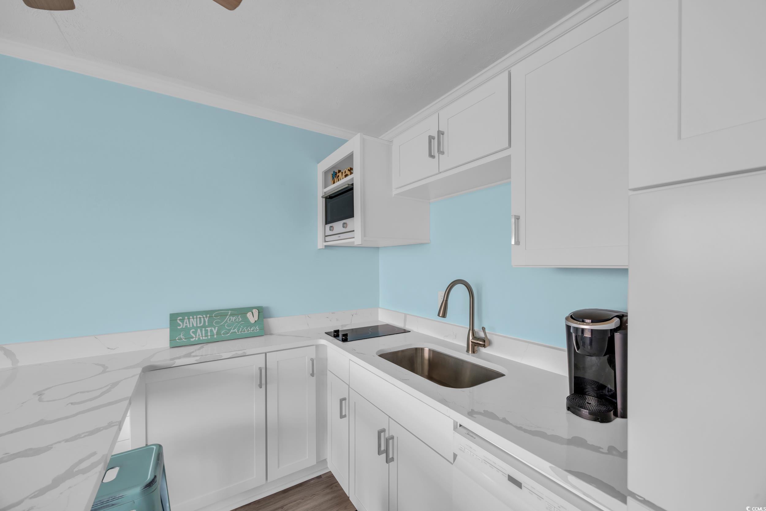 Don't miss this rare opportunity to own a FULLY RENOVATED unit in a small, oceanfront building with some of the lowest HOA fees on the beach! Just STEPS away from beach access and the renowned Cherry Grove Beach! Enjoy the soothing sound of the ocean right from your living room. This ground-floor unit offers the convenience of no stairs and serves as the ideal coastal retreat. Featuring 1 bedroom, 1 full bathroom, and the ability to accommodate up to 5 guests, this property is perfect for a relaxing getaway. The unit boasts brand new LVP flooring, making it easy to clean after a day at the beach. The open living and kitchen area includes a brand new cabinets, appliances, and gorgeous quartz countertops! The full bathroom features a gorgeous stand up shower with a newly installed glass door, in addition to a new vanity and lights. Step out the back door to a spacious shared deck with patio furniture and an outdoor shower, perfect for rinsing off after enjoying the beach, which is just 20 feet away. The back deck was just painted as well! Located between Main Street in North Myrtle Beach and Cherry Grove, this prime location offers easy access to top dining, shopping, and entertainment options. With short-term rentals allowed, this property is not only a personal paradise but also a fantastic investment opportunity. Schedule your showing today and make this beachside escape your own!