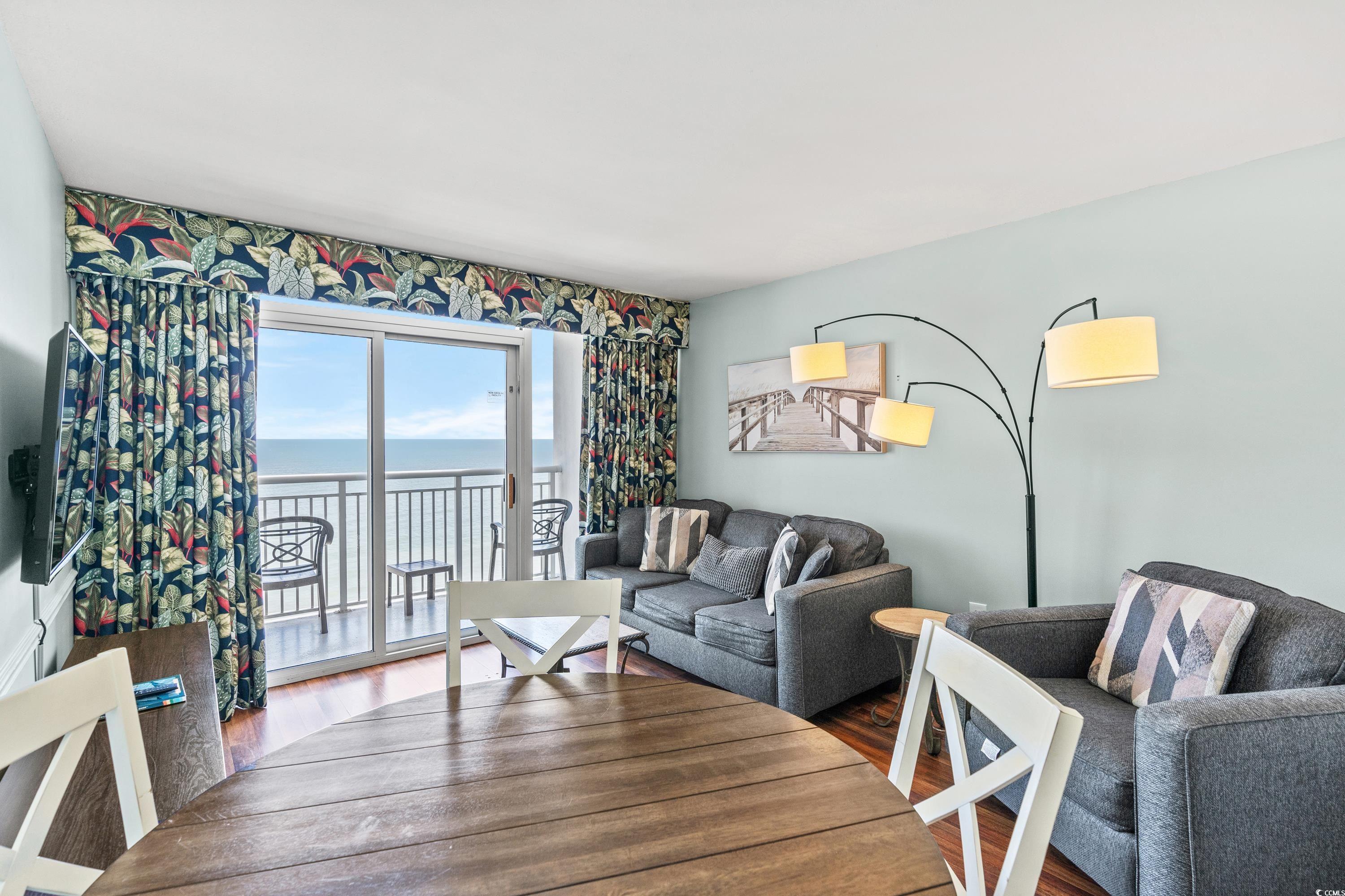 Camelot by the Sea...The place you want to be. This oceanfront 1BD/1BA condominium features an expanded kitchen with upgraded ceramic tile flooring. BRAND NEW HVAC JULY 2025. The unit also offers upgraded furnishings and bedding. The views from the oceanfront balcony are truly breathtaking at anytime of the day. Camelot amenities include indoor/outdoor pools and hot tubs, lazy river, kiddie pools and a fitness center. There is an onsite coffee shop as well. The attached parking garage is a fantastic bonus protecting you from the elements and offers added piece of mind with parking. See you at Camelot.