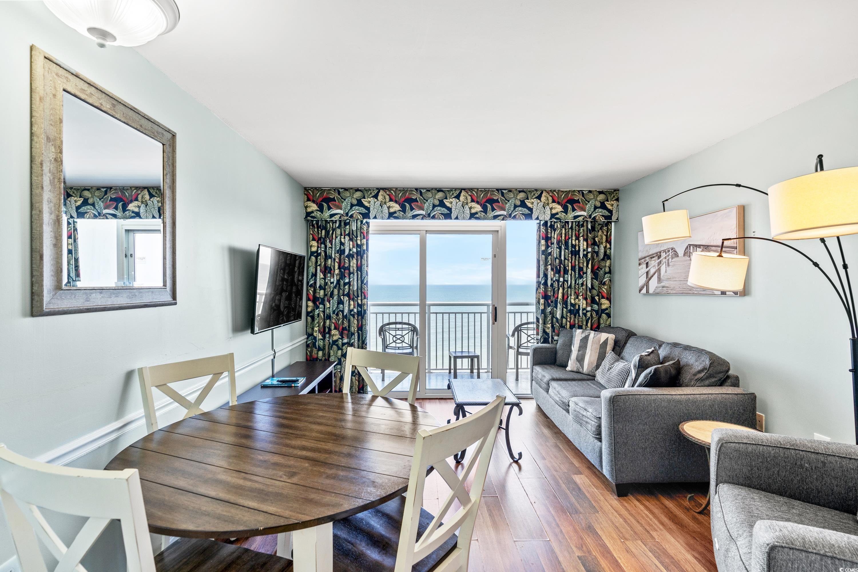 Camelot by the Sea...The place you want to be. This oceanfront 1BD/1BA condominium features an expanded kitchen with upgraded ceramic tile flooring. BRAND NEW HVAC JULY 2025. The unit also offers brand new flooring, refrigerator and bedding. Installed January 2026. The views from the oceanfront balcony are truly breathtaking at anytime of the day. Camelot amenities include indoor/outdoor pools and hot tubs, lazy river, kiddie pools and a fitness center. There is an onsite coffee shop as well. The attached parking garage is a fantastic bonus protecting you from the elements and offers added piece of mind with parking. See you at Camelot.