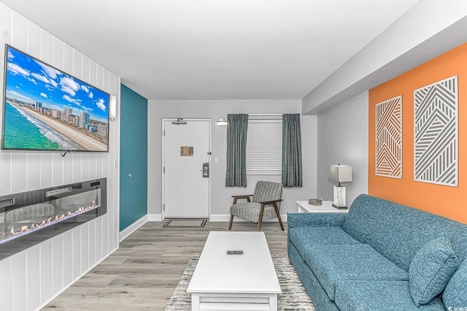 Fully Renovated Oceanfront 1BR at Camelot by the Sea. Experience breathtaking oceanfront views from this exquisitely renovated 1-bedroom condo in the highly sought-after Camelot By the Sea Resort. Designed with attention to detail, this unit features a reimagined layout where the bedroom now faces the ocean—providing unmatched views and a serene coastal ambiance right from your bed. A top-performing short-term rental with a strong income history, this condo boasts luxury vinyl plank flooring throughout, custom modern accent walls with built-in fireplaces in both the bedroom and living room, and all-new furnishings and stylish décor. The kitchen and bathroom showcase granite countertops and other upscale finishes, offering a perfect blend of comfort and sophistication. Centrally located on 20th Avenue North in the heart of Myrtle Beach, you’re just steps from the Boardwalk, SkyWheel, top restaurants, vibrant nightlife, and endless attractions. Camelot offers an array of amenities including indoor/outdoor pools, water features, and direct access parking. Seize the opportunity to own this stunning retreat just in time for peak summer rental season.