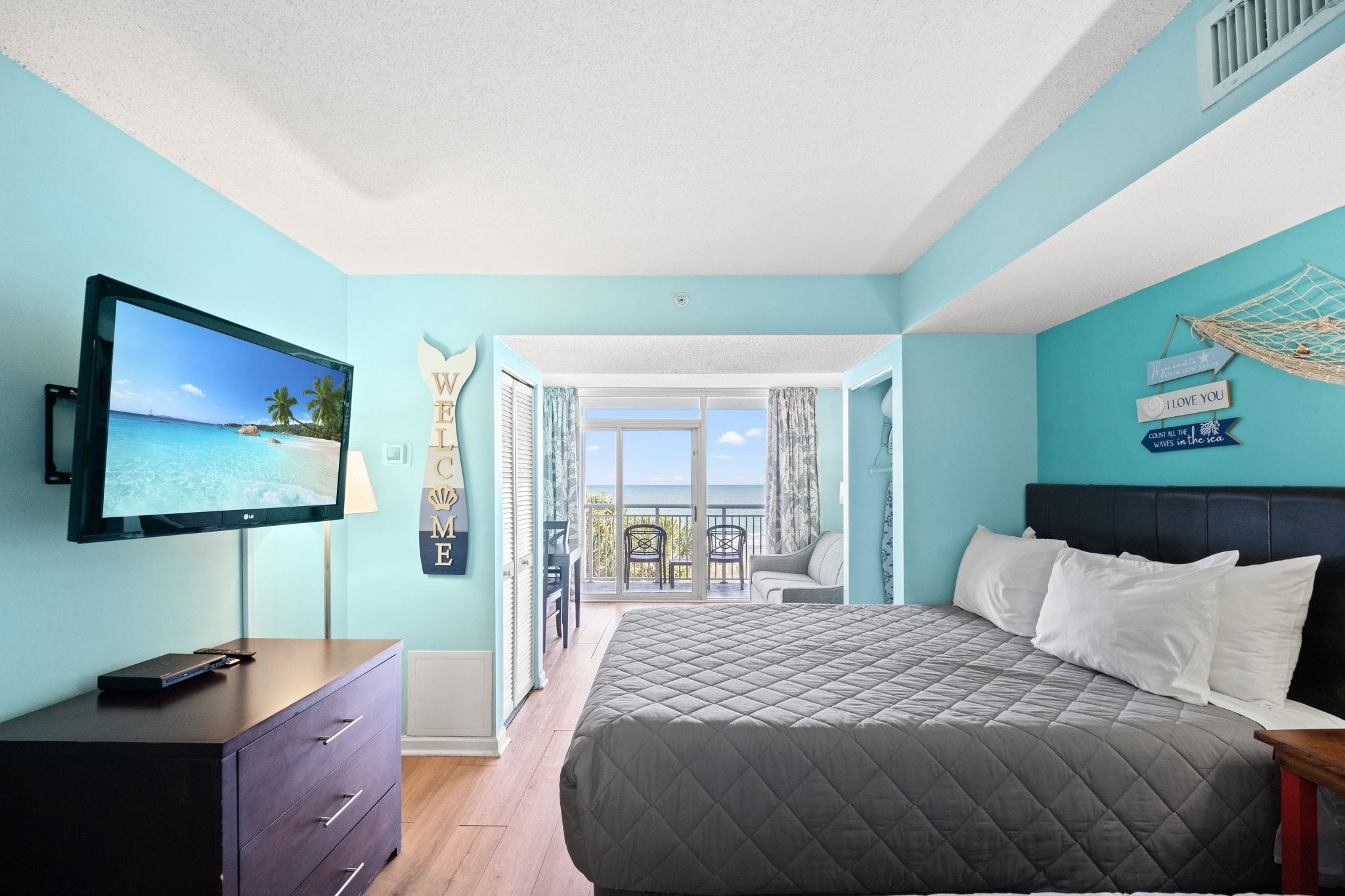 “Beautifully updated Studio, 1-bath condo offering 422 sq. ft. of bright, open living space. Located on the 3rd floor, this unit features a private balcony with stunning ocean views. The modern kitchen includes upgraded countertops, stainless steel appliances, and ample cabinet space, flowing seamlessly into the spacious living and dining area. Additional highlights include full sized appliances, covered parking, and recent flooring upgrades throughout. Enjoy access to community amenities including indoor/outdoor pools, fitness center, hot tubs, lazy river, kiddie pools and direct beach access—all just minutes from dining, shopping, and entertainment. Perfect as a vacation home, or investment property. Schedule your showing today!”