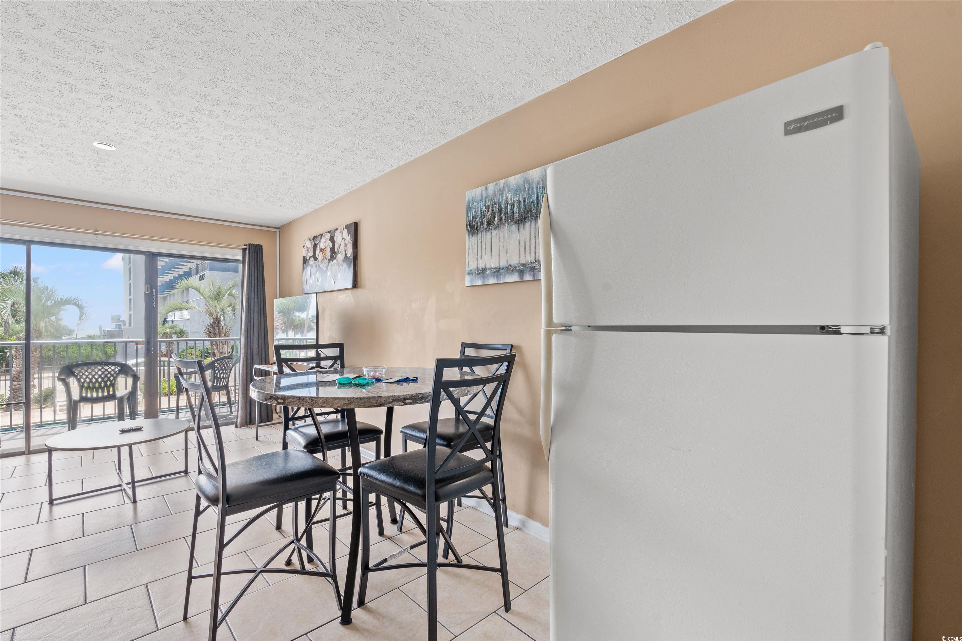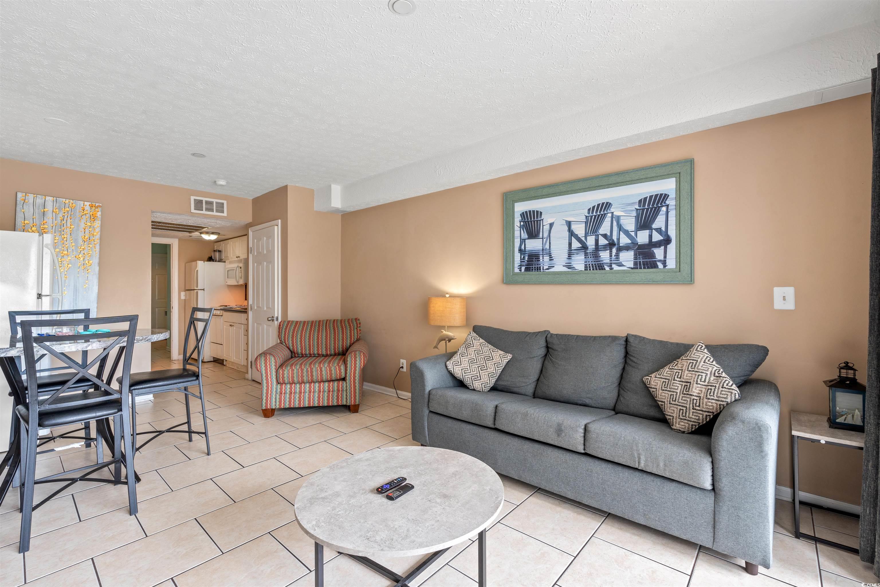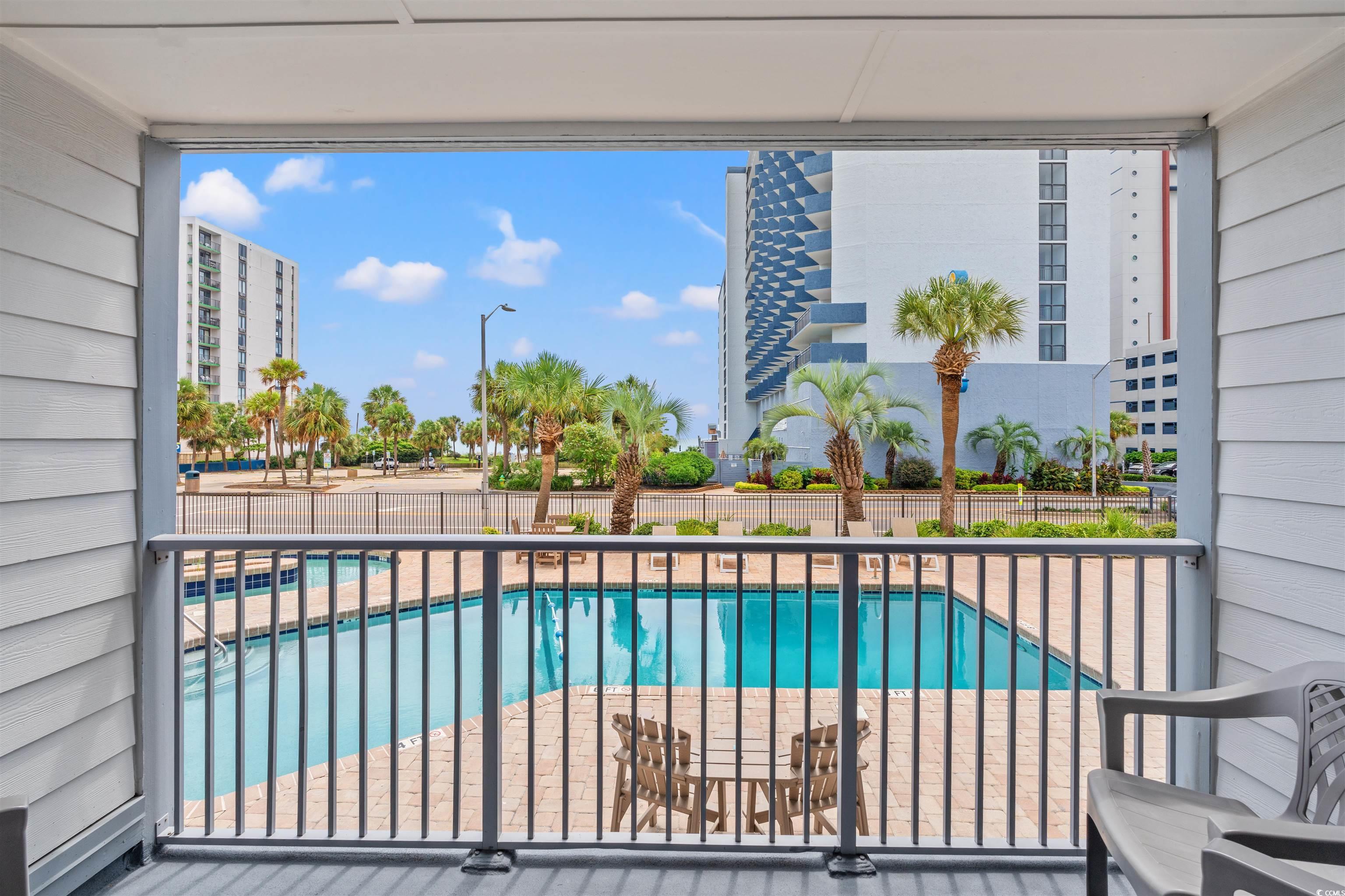 Indulge in the ultimate resort lifestyle, just steps from the pristine beach. This one bedroom, one bath first floor unit is ideal as a short or long term rental or a personal retreat by the coast. Inside, you will find a well equipped kitchenette and tasteful furnishings, many of which have been upgraded in the past year, creating a comfortable and inviting space. A brand new air conditioner, installed about a year ago, ensures year round comfort. Step outside to your private balcony and enjoy views of the resort’s sparkling pools and lazy river, with easy access leading directly to the beach. It is a slice of paradise designed for both relaxation and convenience. This property also stands out for its value. Monthly HOA fees cover all essential utilities including electric, water, sewer, exterior maintenance, cable, and internet, keeping expenses simple and stress free. Centrally located in Myrtle Beach, the unit is close to top dining, entertainment, and attractions, making it the perfect blend of resort living and city convenience