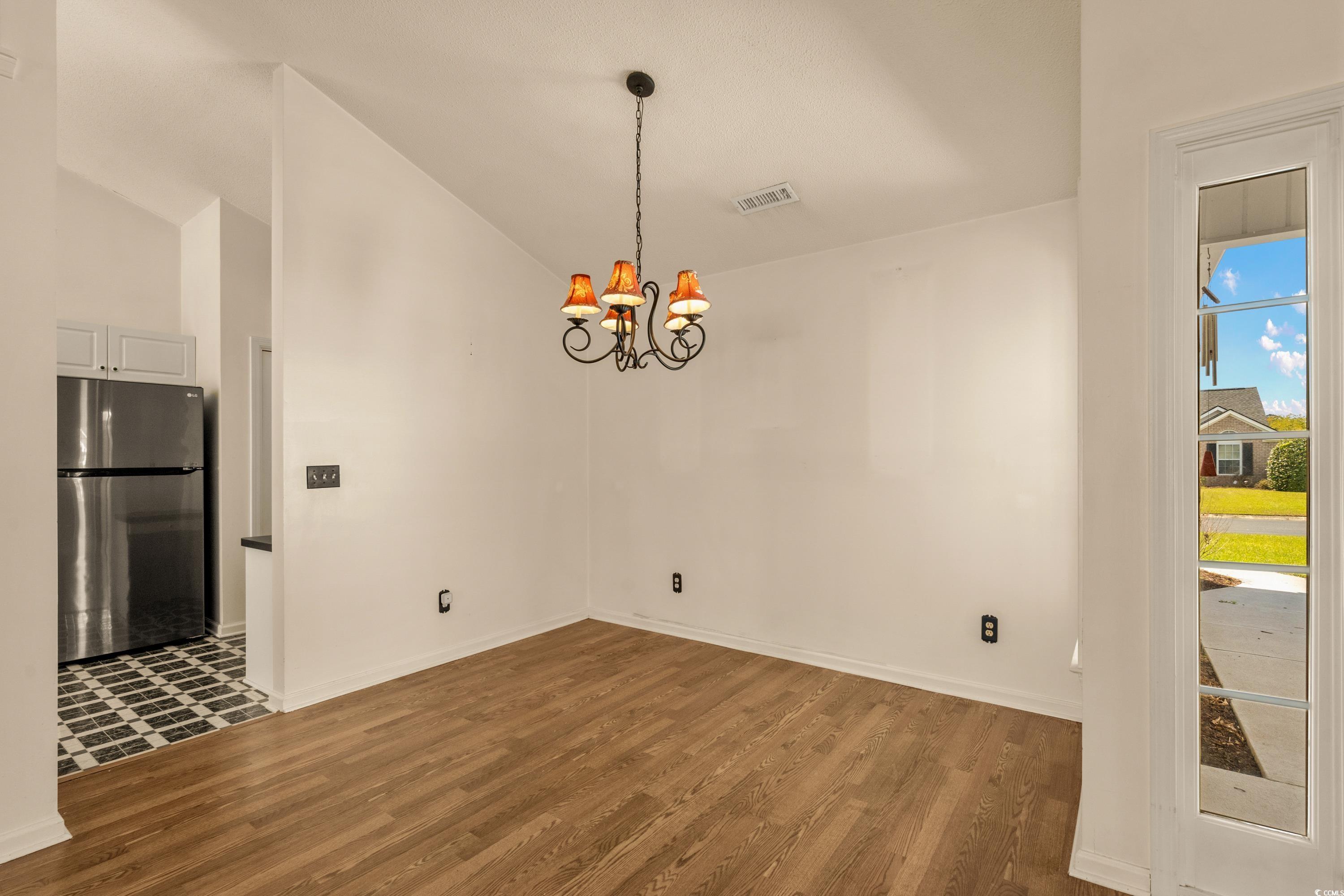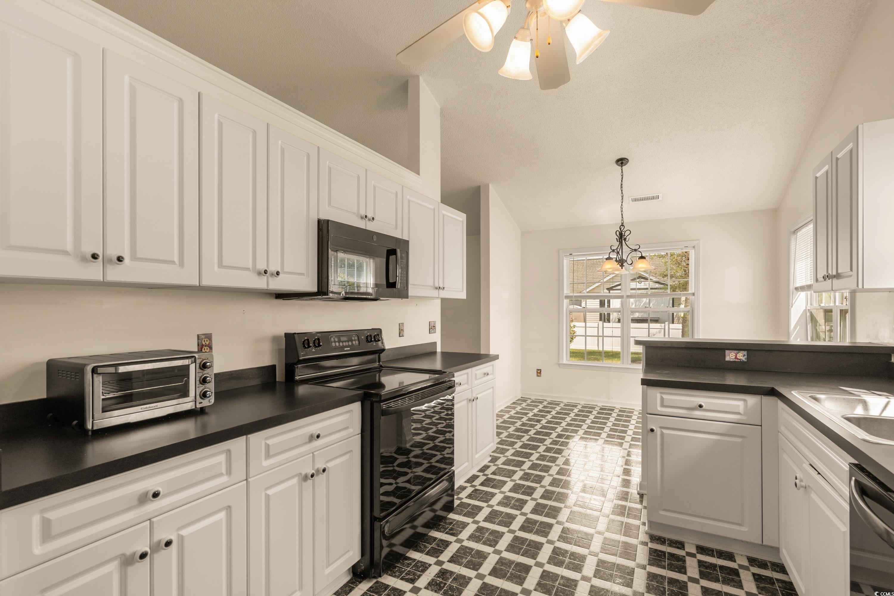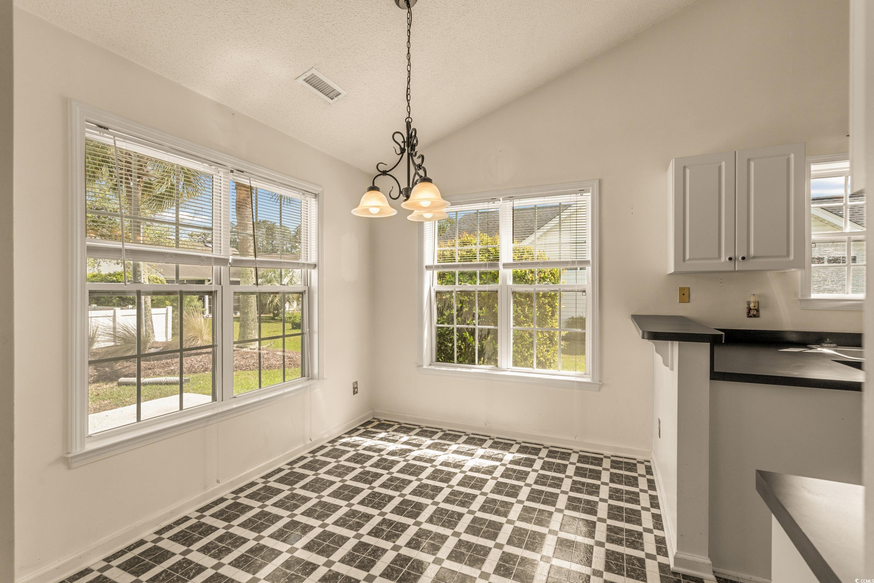 Welcome to this 3 bedroom, 2 bath home located on a corner lot in the established and desirable neighborhood of Island Green East. This home offers a bright and spacious floor plan with tons of windows letting in the natural light. The kitchen features white cabinets, black appliances. Off the kitchen you will find a large living room and dining area with vaulted ceilings. The primary bedroom also features vaulted ceilings as well as a large walk in closet and private ensuite. There are 2 other bedrooms, a carolina room, a laundry room and attached 2 car garage. This home is a short walk to the community pool. This home will need some TLC and with some fresh paint it will be sure to shine! Island Green East is conveniently located close to dining, shopping, health care, golf, the Murrels Inlet Marshwalk and more!