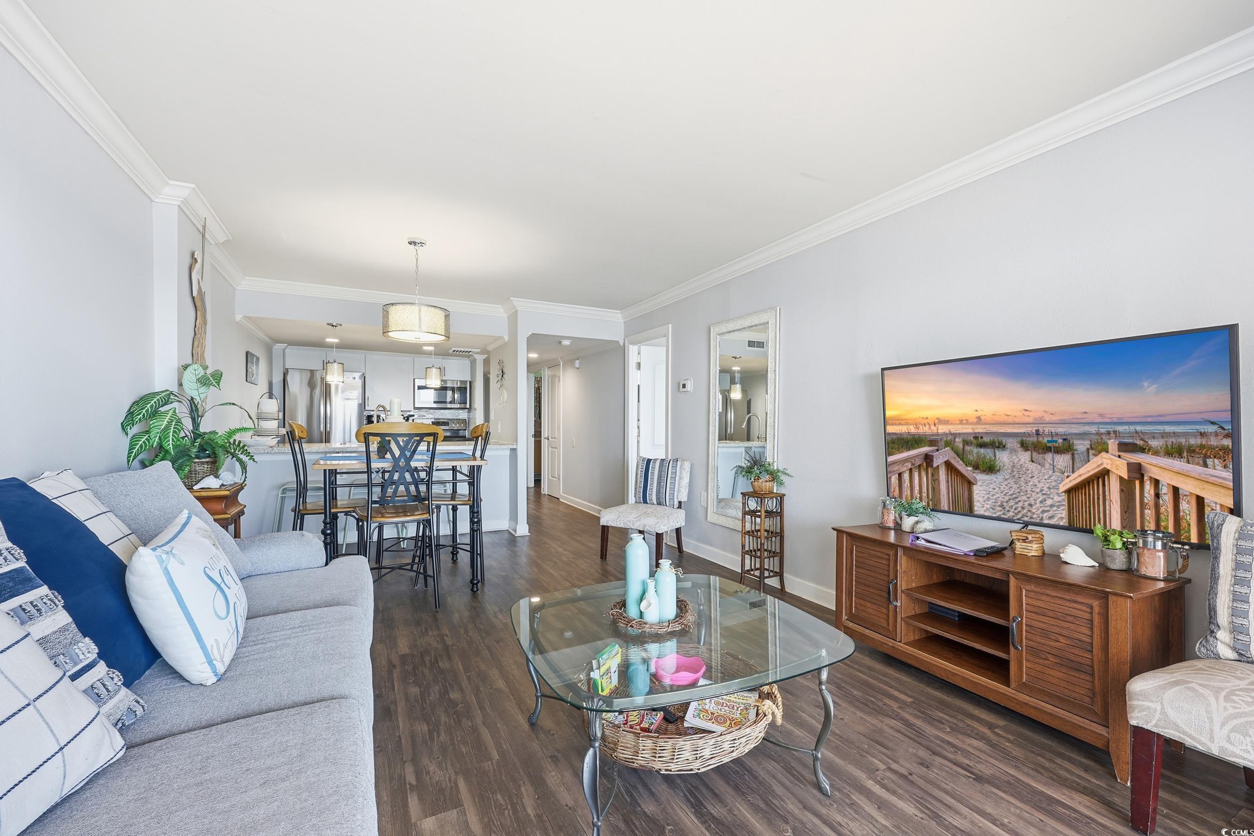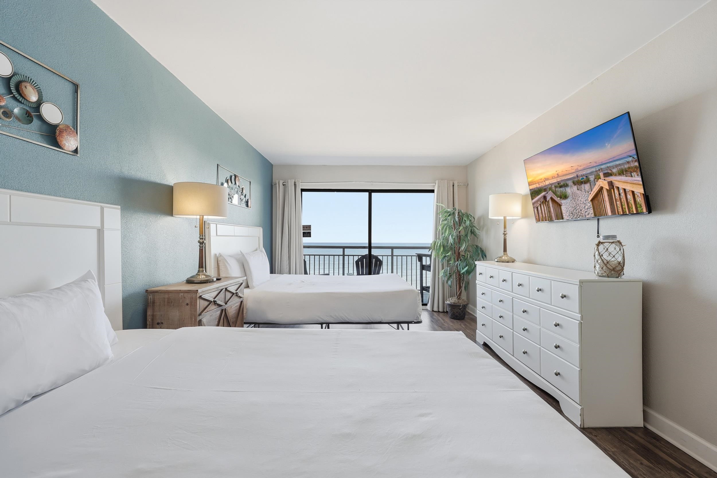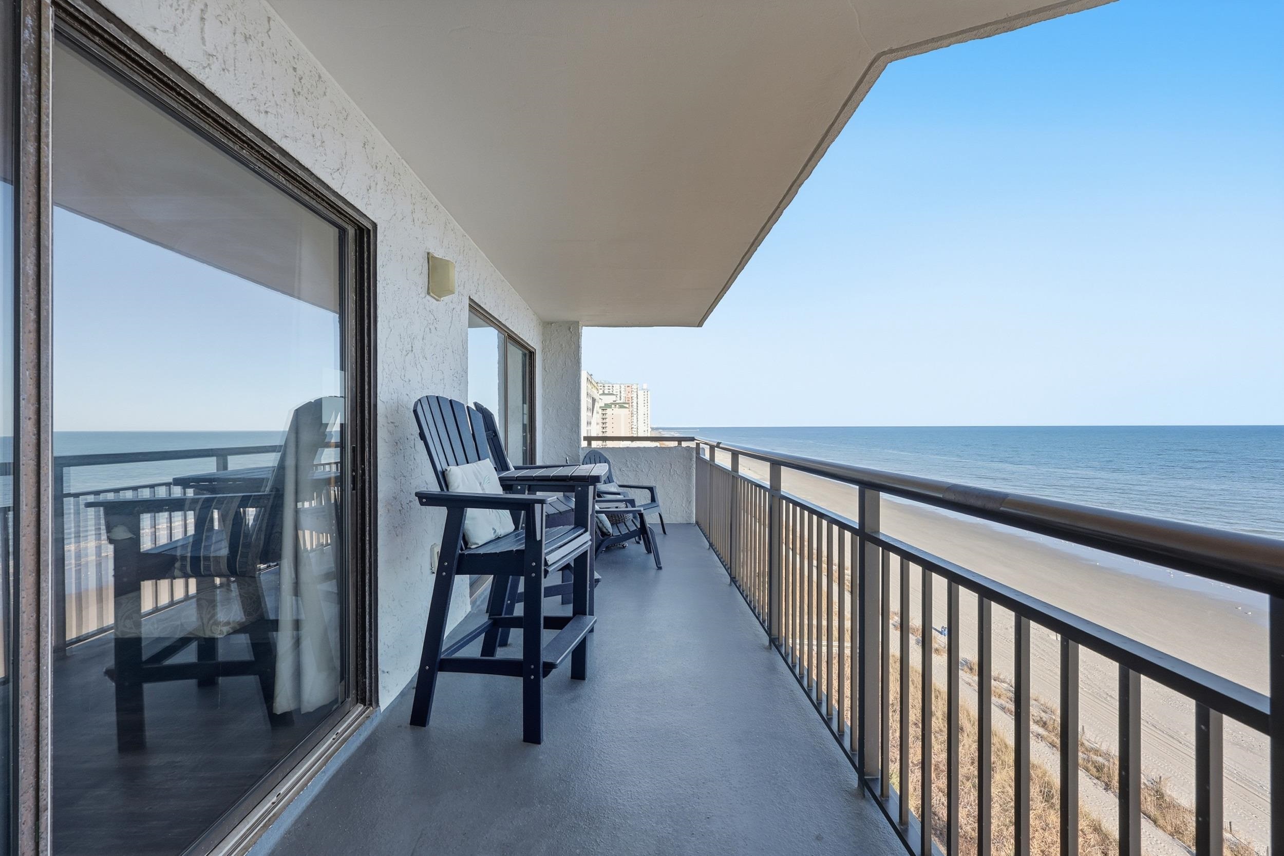 Welcome to Unit 903 at the highly desirable Bluewater Resort, where oceanfront living, comfort, and unbeatable location come together. This turnkey 2-bedroom, 2-bathroom, fully furnished condo is situated on the 9th floor and offers breathtaking direct oceanfront views from nearly every angle, perfect for personal enjoyment or a strong rental investment. The unit features a bright open-concept living and dining area, an updated kitchen with white cabinetry and stainless steel appliances, including a dishwasher, and modern finishes throughout. The spacious primary bedroom boasts stunning oceanfront views, balcony access, and an updated en-suite bathroom, while the secondary bedroom is beautifully appointed for guests. Step outside onto the expansive 25-foot oceanfront balcony, accessible from both the living area and primary bedroom, and soak in the sights and sounds of the Atlantic. Bluewater Resort offers an impressive array of amenities including indoor and outdoor pools, hot tub, fitness center, game room, poolside bar, on-site restaurant, and 24/7 security. Located directly on the beach and just minutes from the Myrtle Beach International Airport, golf courses, shopping, dining, Market Common, the Boardwalk, and Broadway at the Beach, this condo truly delivers on location, lifestyle, and investment potential. Whether you're searching for a vacation getaway, income-producing rental, or your own piece of paradise on the Grand Strand, Unit 903 at Bluewater Resort is an opportunity you don't want to miss.
