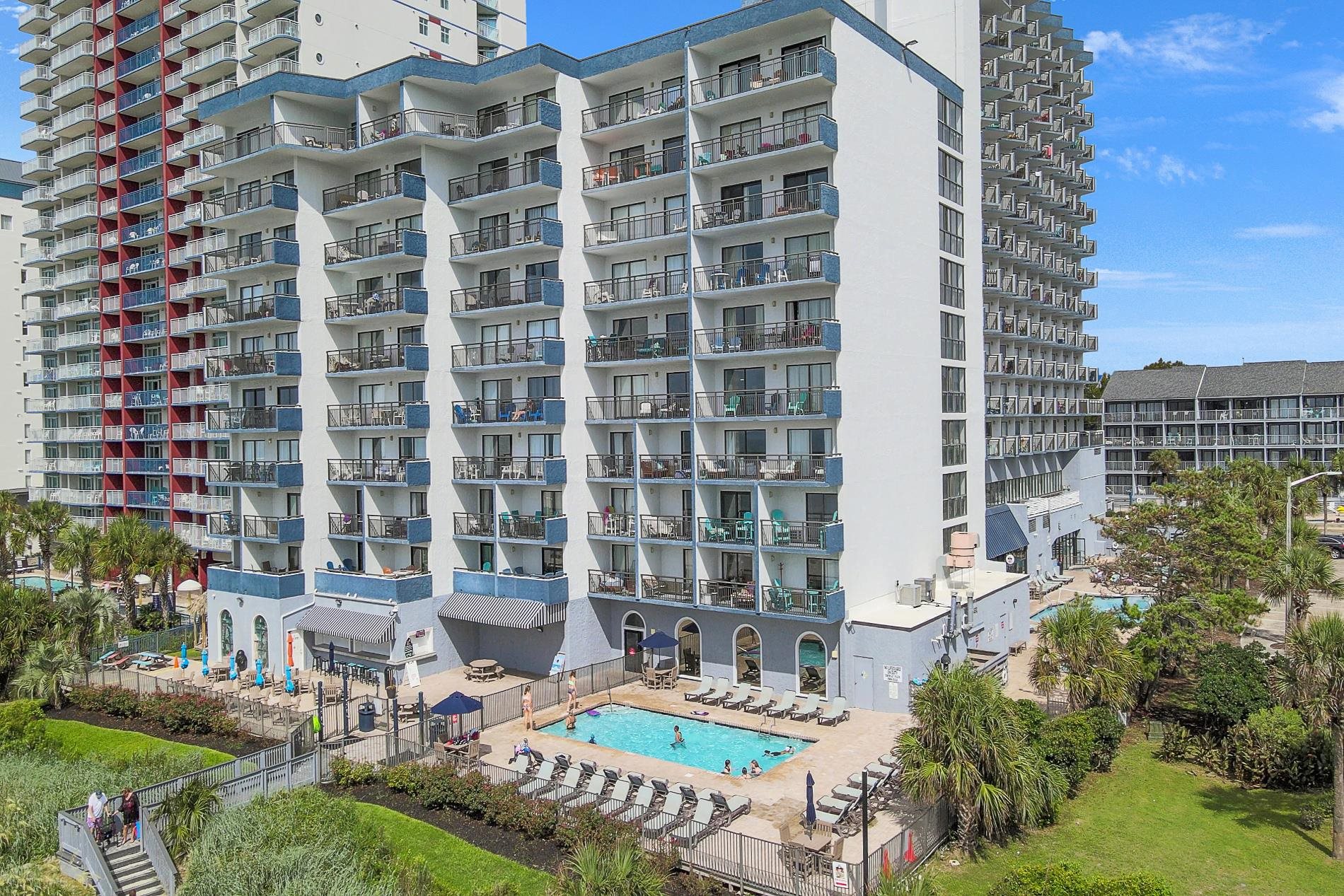 Ocean Direct One bedroom condo; fully furnished on 2nd floor. Conveniently located plus ample parking with also private parking deck. 24 hour security on site; Lobby door needs code to enter. NY Pizza restaurant on the resort. Many pools to select & enjoy along with exercise and game area. Place this resort on your check list and enjoy the convenience of shopping close . International Airport short distance. Myrtle Beach a year round enjoyable destination.