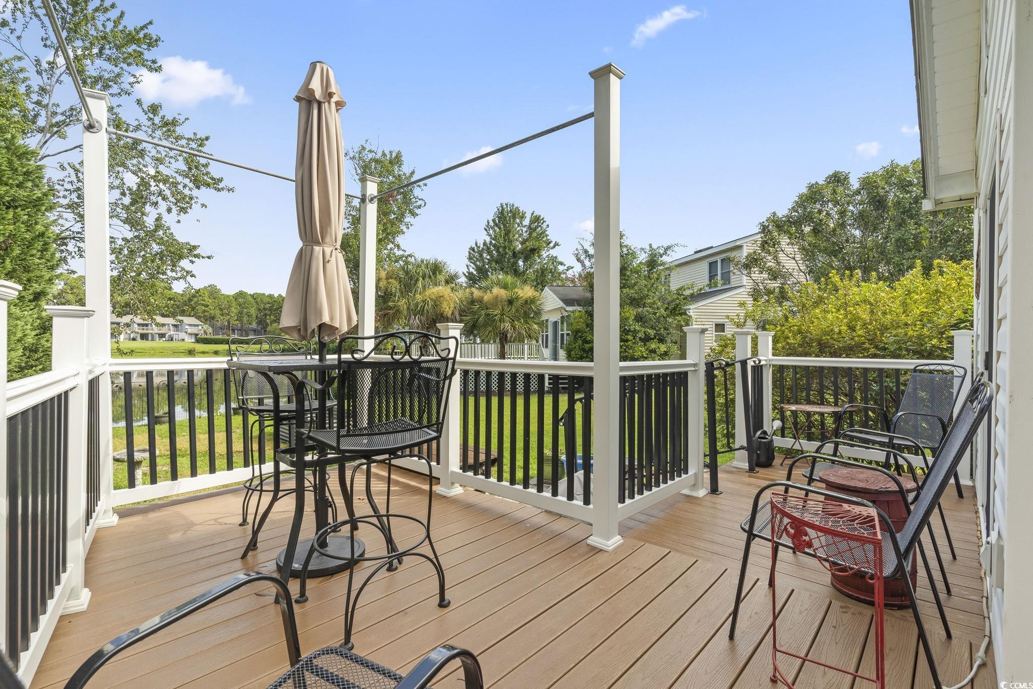 Welcome home. Located in the Village on the Green portion of Deerfield, this all brick home offers an open floor plan with natural light. The single car garage has a half bath for convenience. Enjoy the water view from most rooms in the home. There is a trex deck with vinyl railings for outdoor entertaining attached to the sunroom. Enjoy the wildlife on the adjacent pond. Minimal HOA fee. With less than 1 mile to beach, this makes the perfect location for primary or second home. Access the beach or run errands by golf cart. Easy access to Highways 544, 17, and 31. Convenient to shopping, restaurants, entertainment, and Surfside Beach. Square footage is approximate and is not guaranteed. Buyer responsible for verification.