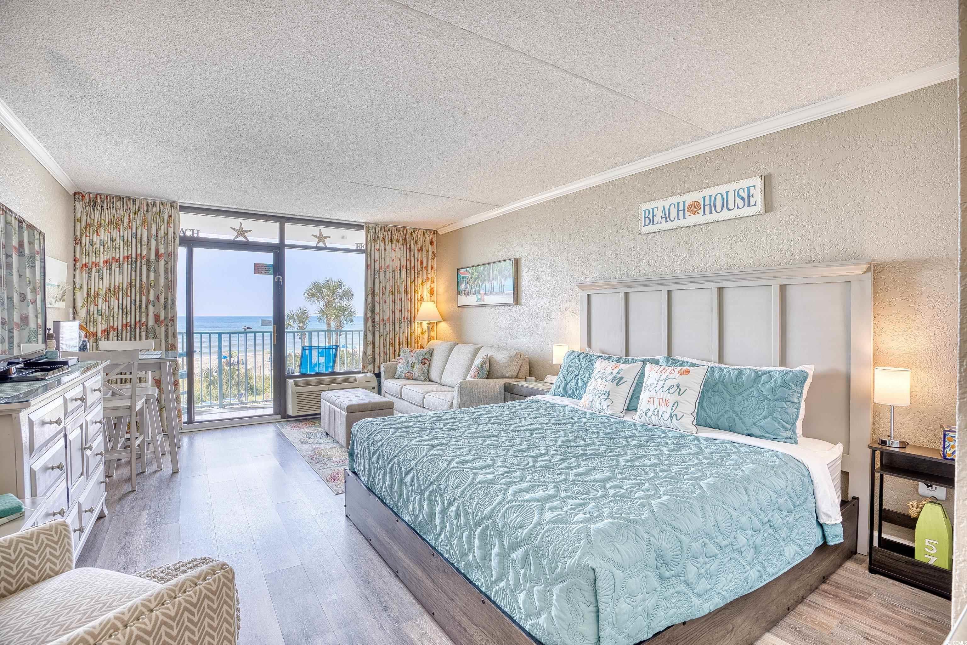 Looking for that fabulous oceanfront condo? This gem is located on the 2nd floor, offering easy access to all the amenities Sand Dunes has to offer. No long walks needed to enjoy the facilities. This condo is situated just above the outdoor pool and on the same floor as the indoor pool. Right downstairs, you'll find the exit to the beach, pool, and gym. Restaurants, a convenience store, arcade area, and laundromat are all available on the first floor. This beautifully decorated condo has been updated with vinyl plank flooring and features a king-size bed and sleeper sofa. With this condotel, you have the flexibility to rent it out yourself, hire a management company, or use the onsite rental service. The choice is yours! HOA payment includes all expenses except for taxes and HO-6 insurance. Owner is SC Realtor.
