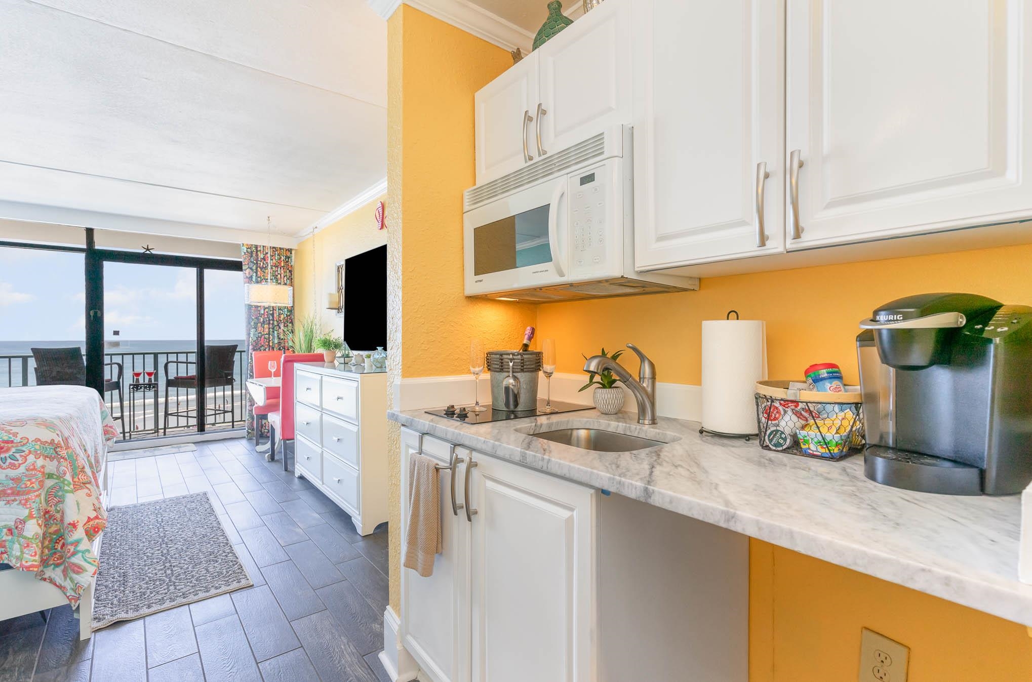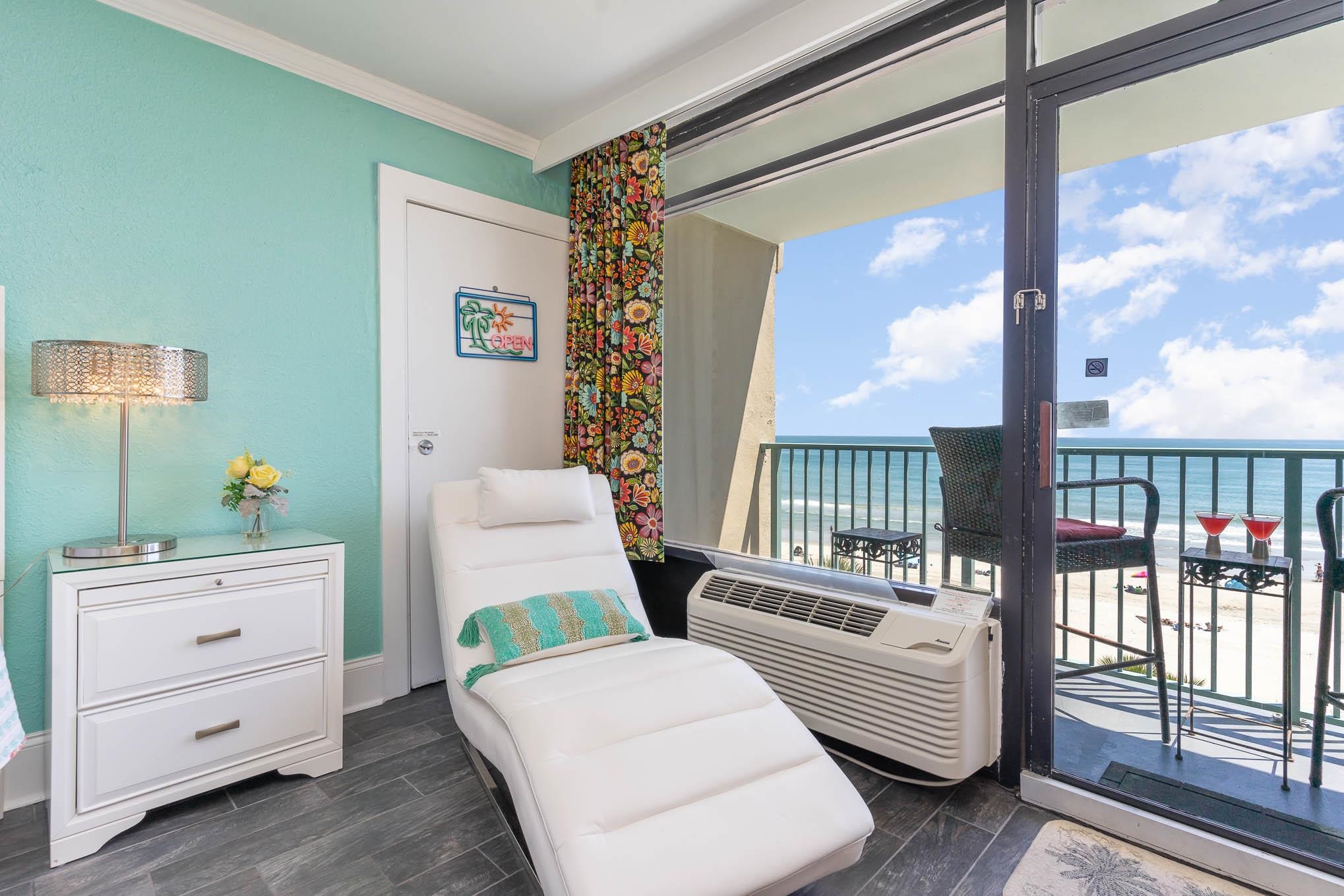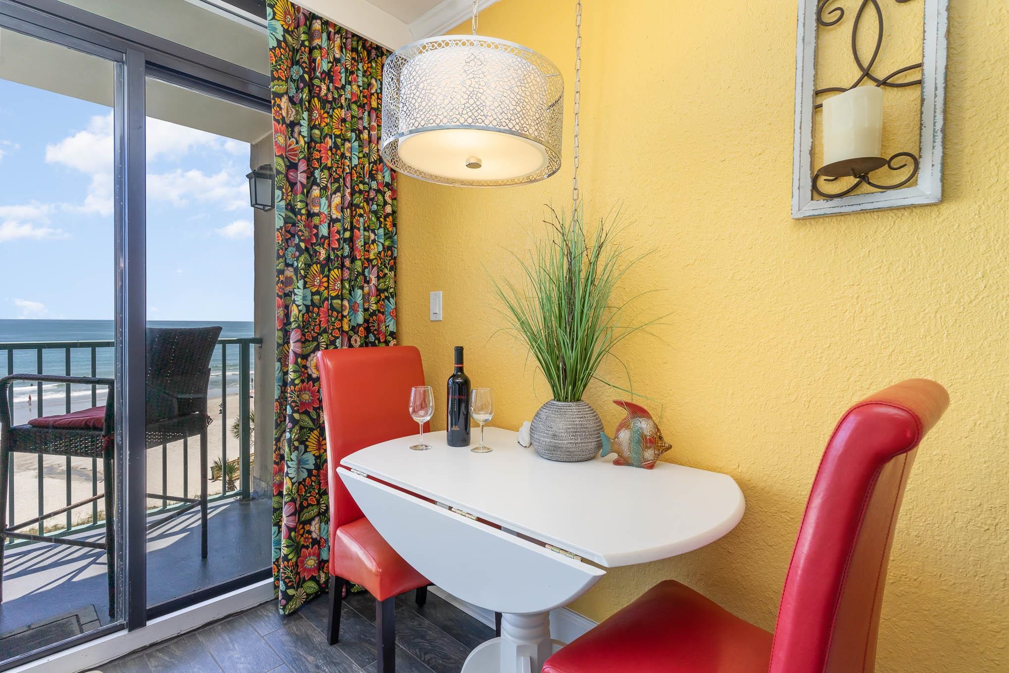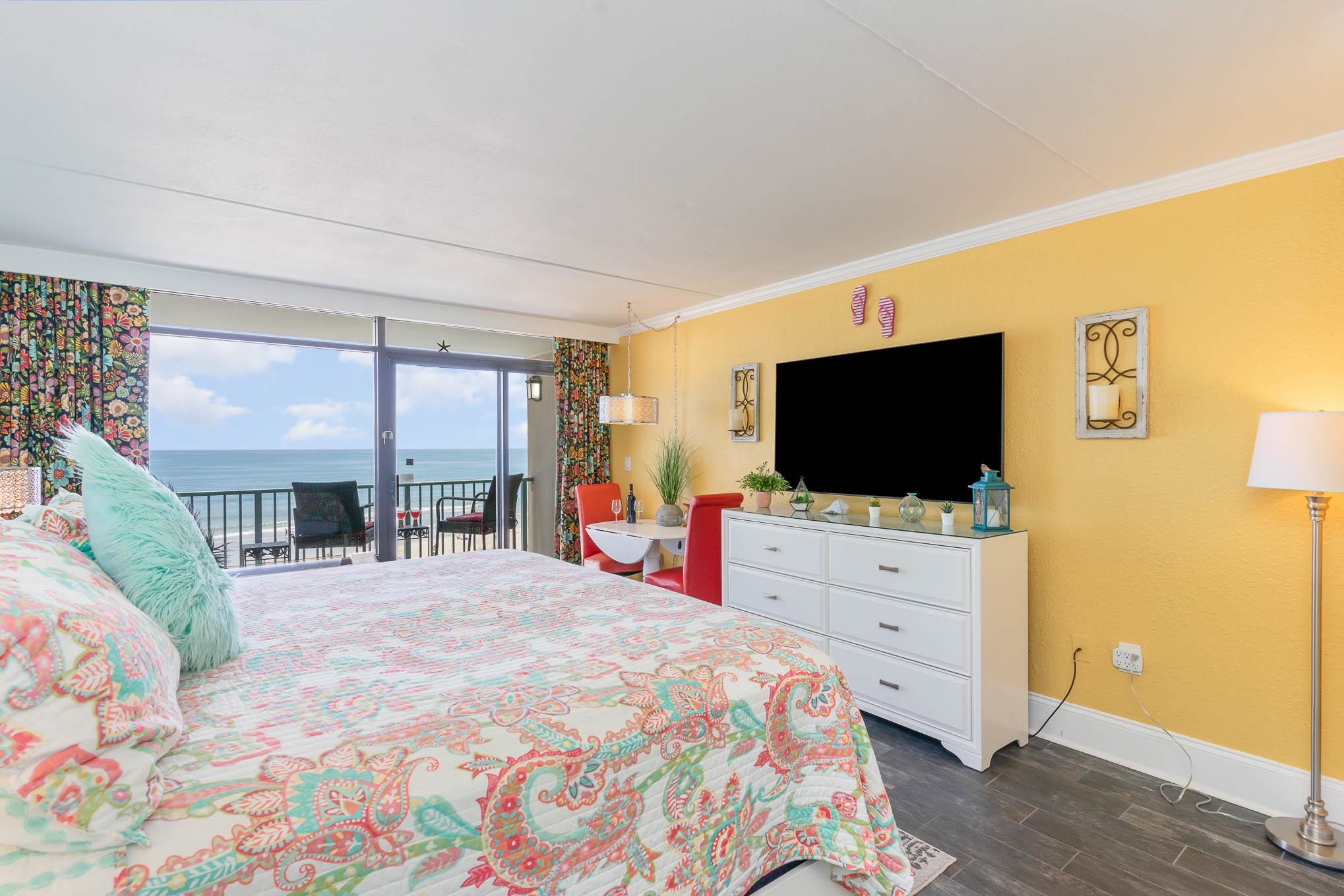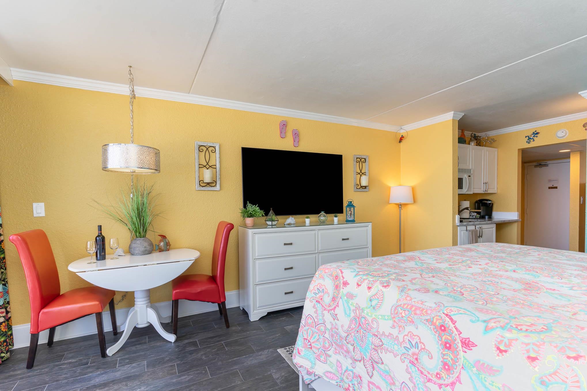 Direct Oceanfront remodeled Studio. The unit is bright and cheerful and has a full kitchenette. This beautifully furnished studio unit offers the perfect blend of comfort and elegance featuring tile flooring throughout, granite countertops and full refrigerator. The spacious balcony is ideal for sipping your morning coffee or winding down with evening oceanviews that stretch for miles. Enjoy a full array of resort-style amenities including indoor and outdoor pools, a lazy river, hot tub, fitness center, food court, onsite restaurant/bar, and even a gift shop. Whether you're looking for a investment or a personal beach vacation home, this turn-key condo delivers. Plus, you're just steps away from shopping, restaurants, and everything theGrandStrand has to offer. Don't miss this opportunity to own your own piece of paradise!