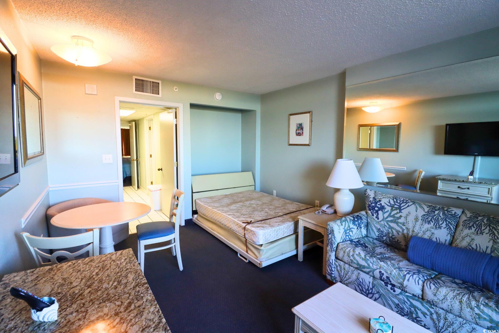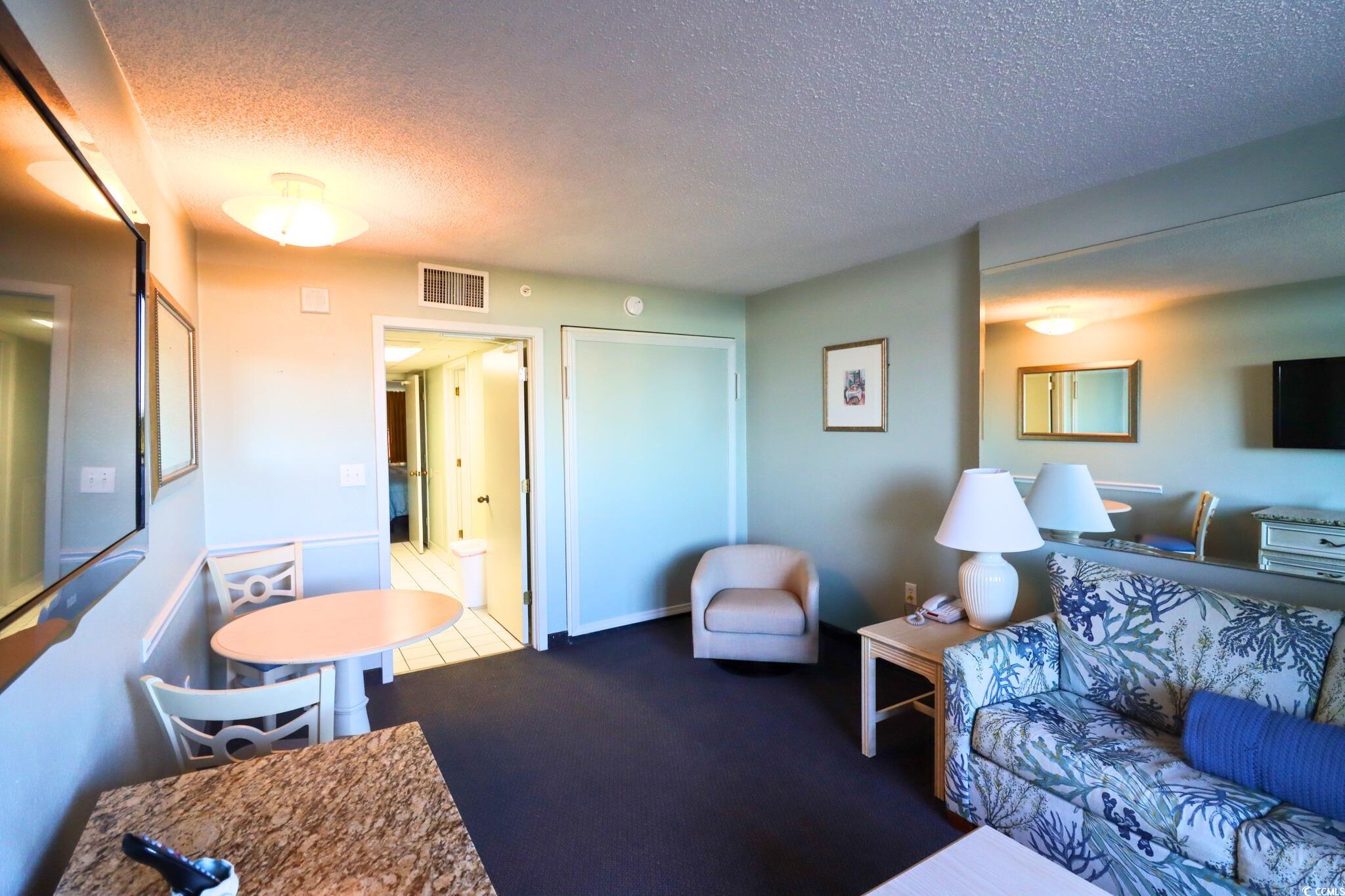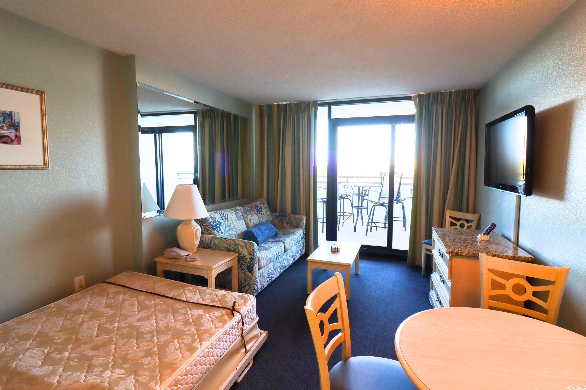 Welcome to 201 77th Ave N #828, a stunning 1-bedroom, 1-bathroom ocean-view condo located in the sought-after oceanfront Grande Shores tower in Myrtle Beach. This move-in-ready property is perfect as an investment opportunity, a vacation retreat, or your new home by the sea. Step inside to discover a bright and inviting living room, featuring large sliding glass doors that flood the space with natural light. The room also includes a convenient Murphy bed, providing additional sleeping accommodations without compromising space. The layout flows seamlessly into the well-appointed kitchen, equipped with sleek stainless steel appliances for a modern touch. The highlight of this condo is the expansive balcony, where you can relax and take in breathtaking views of the Atlantic Ocean – perfect for sipping your morning coffee or unwinding in the evening. Grande Shores offers an impressive array of amenities, including two outdoor pool decks with lazy rivers, an indoor pool, a well-equipped weight room, and a comfortable lounge area just steps from the sandy shores. Its prime location places you not only steps from the beach but also mere minutes from The Intracoastal Waterway, Barefoot Landing, Tanger Outlets on Highway 17, Broadway at the Beach, premier golf courses, top-tier shopping, dining, and entertainment. Don’t miss the opportunity to own this beautiful ocean-view condo at Grande Shores – the perfect blend of comfort, convenience, and coastal living. Book your showing today!