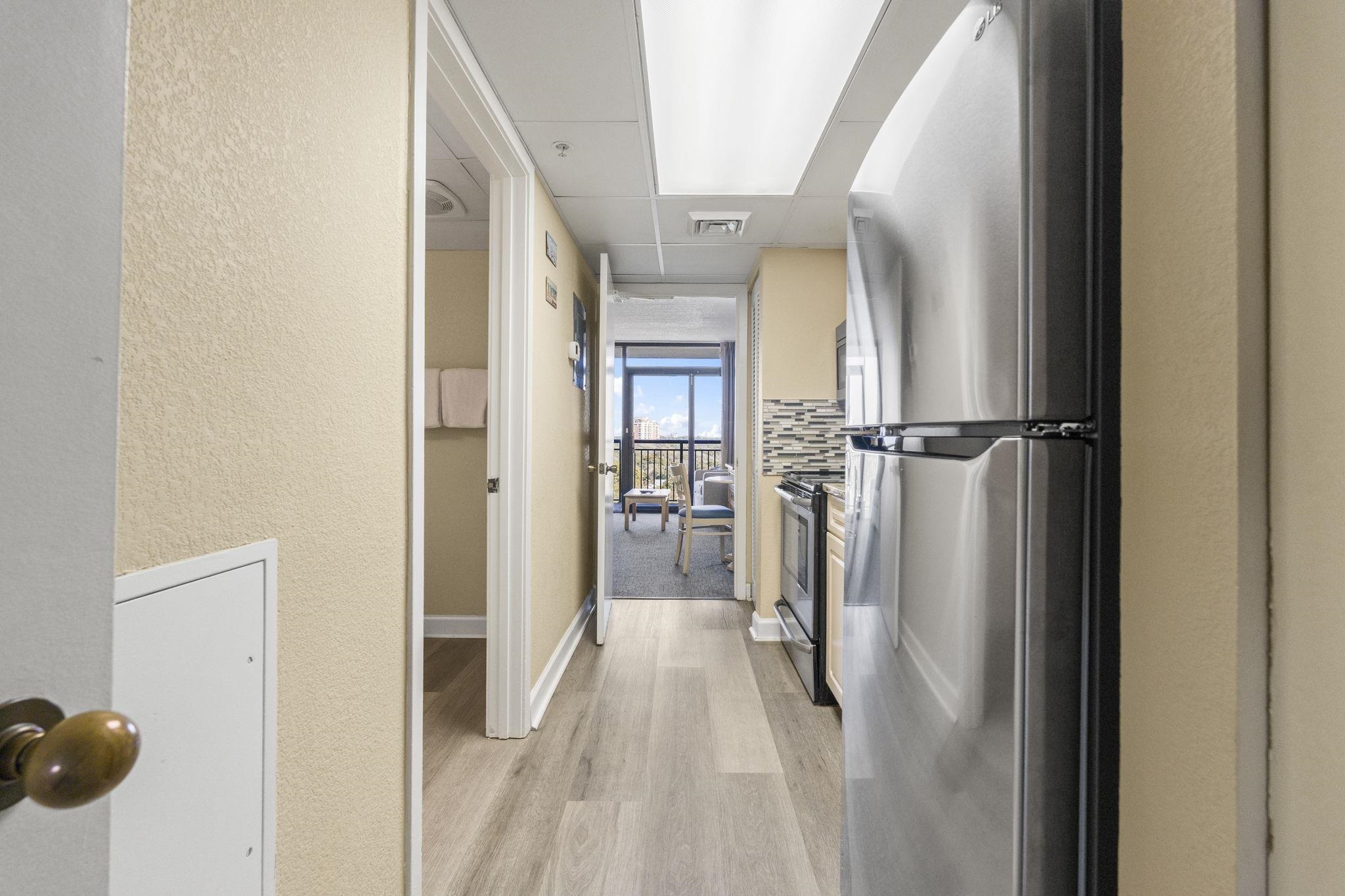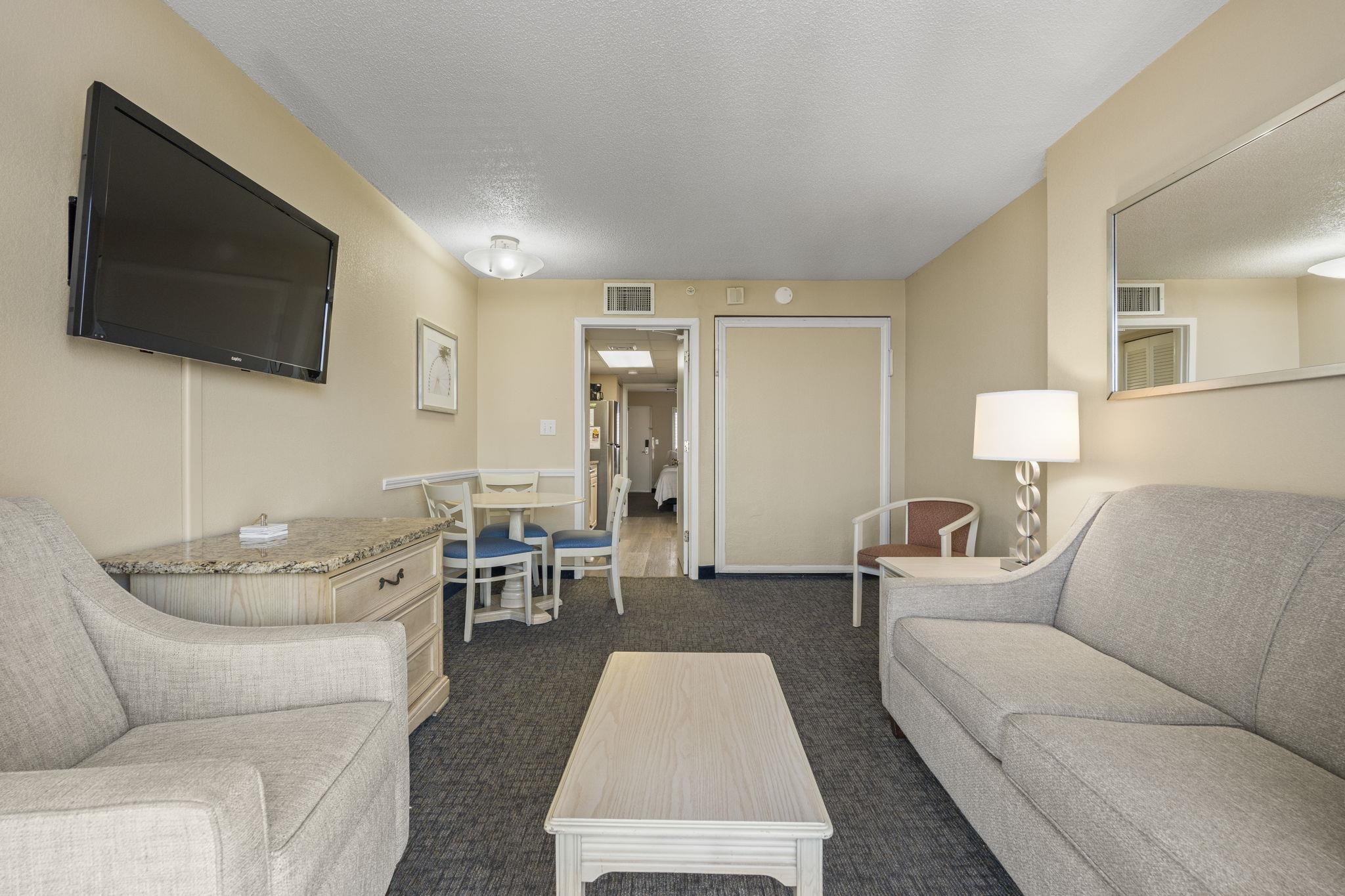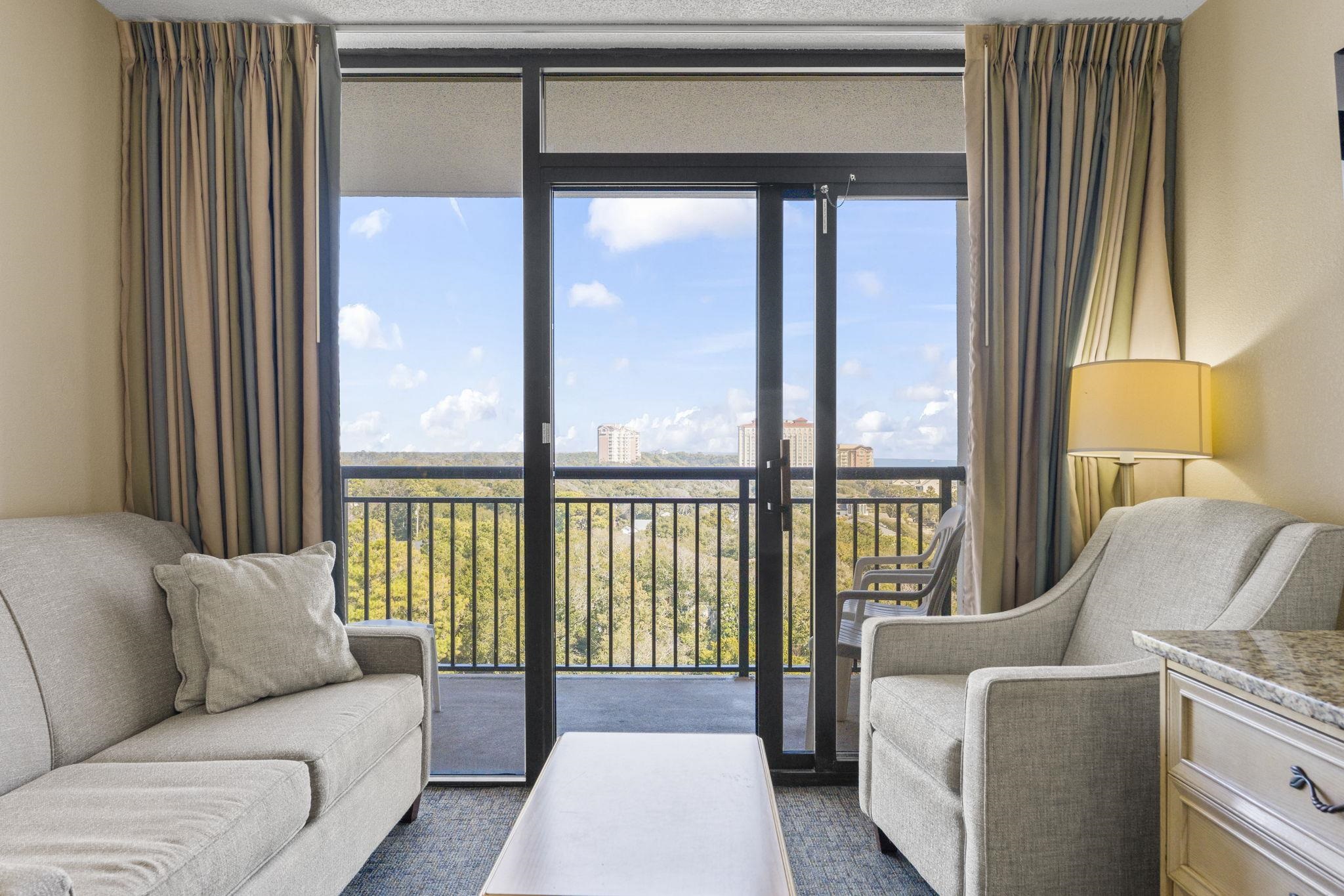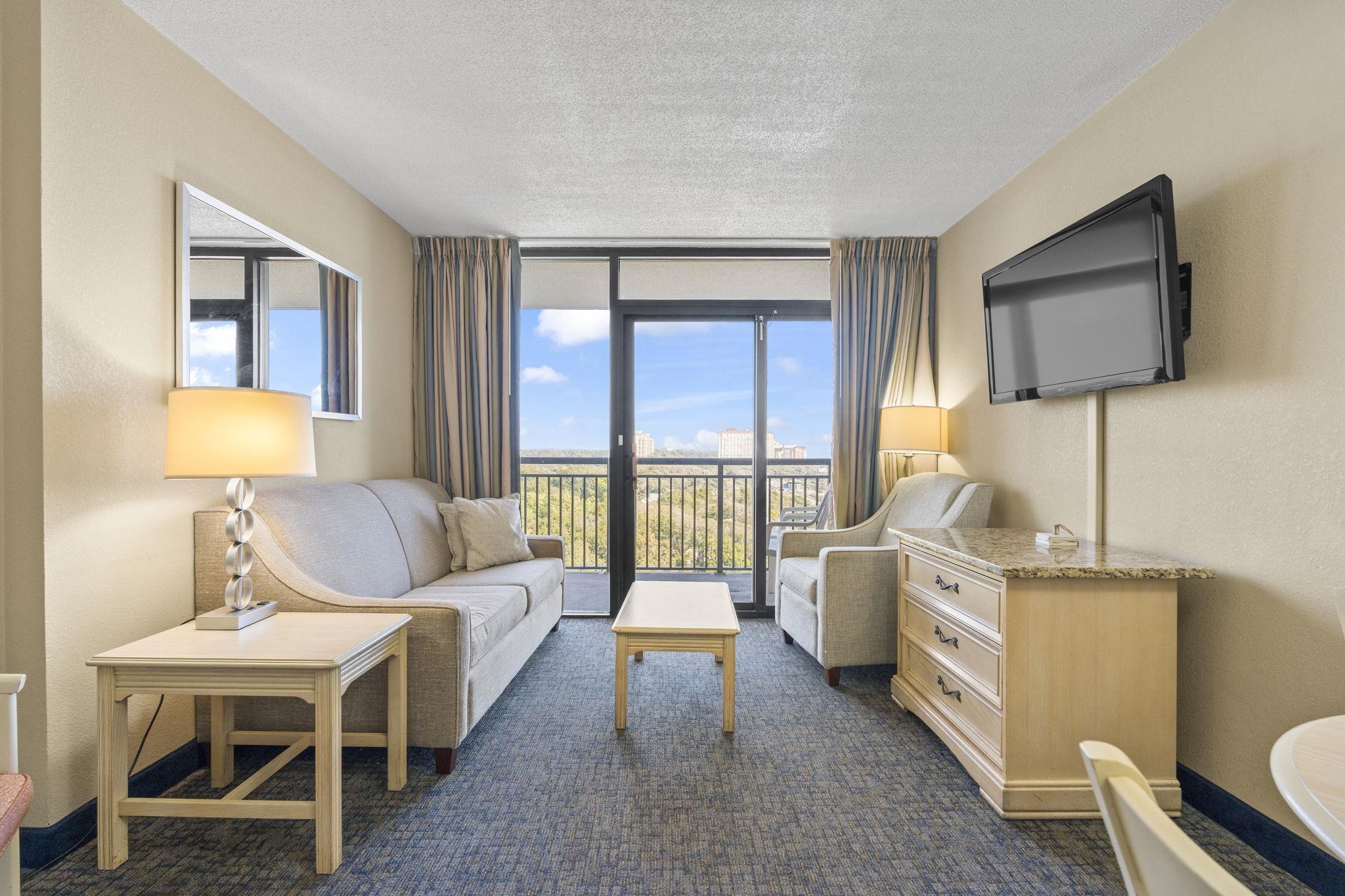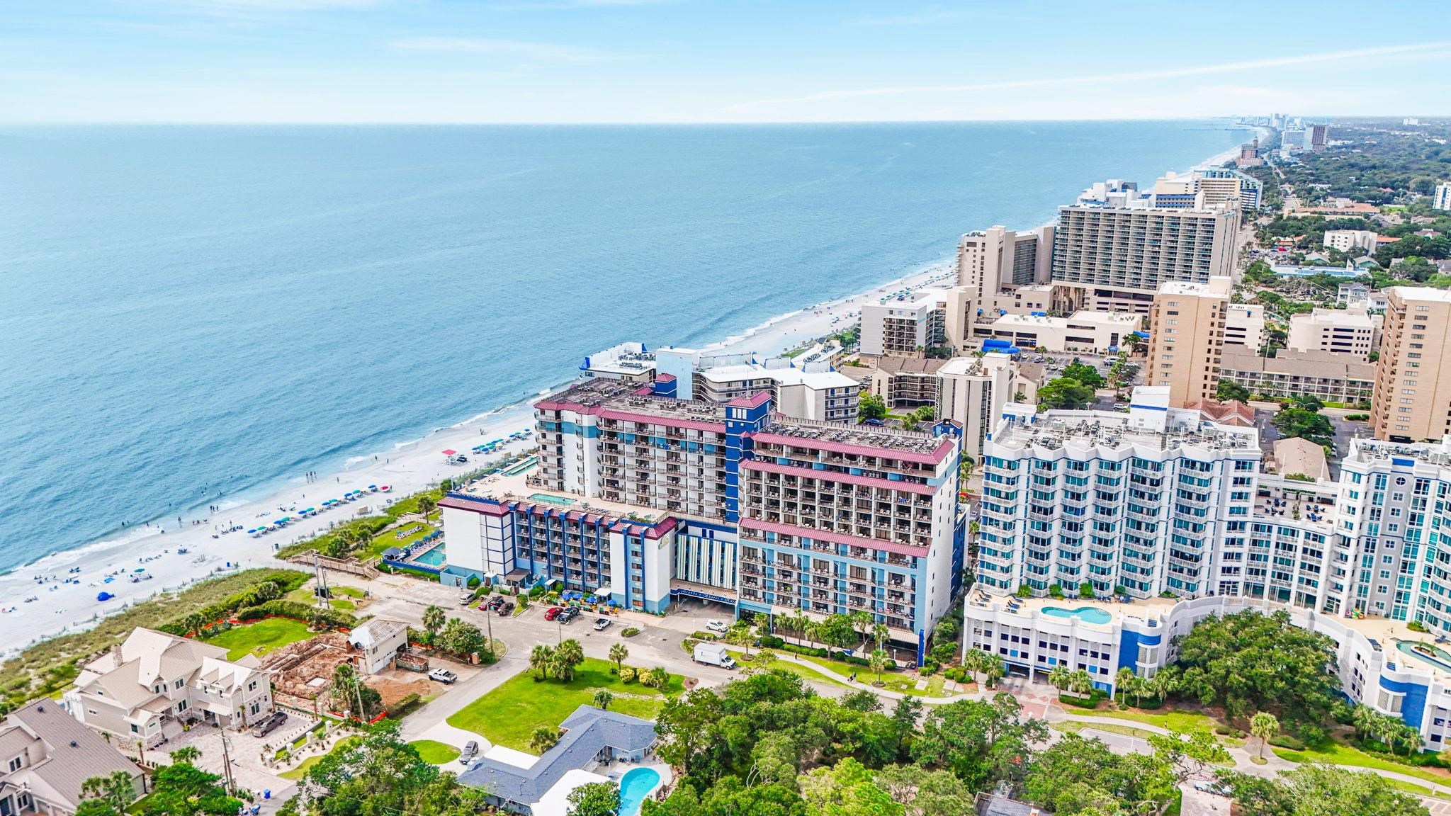 Don’t miss this incredible opportunity to own a fully furnished oceanfront condo in the sought-after Grande Shores Resort! Unit 1024 is a well-maintained 1-bedroom, 1-bath unit located on the 10th floor, offering beautiful views of the Atlantic Ocean from your private balcony. These units will sleep up to 8 people to maximize rental income. Inside, you’ll find a bright and open layout featuring 2 queen beds, a comfortable living area with a sleeper sofa and Murphy bed, a kitchenette with full-size, stainless steel appliances, and a spacious bathroom—making it perfect as a vacation getaway or rental investment. The Grande Shores Resort is packed with amenities that keep guests coming back year after year. Enjoy water features including indoor and outdoor pools, lazy rivers, Shoreline Cafe Restaurant, fitness center, business center, conference and banquet spaces and hot tubs galore. Whether you're looking for a turnkey rental property or your own piece of paradise, this is coastal living at its best! Some photos of this listing have been virtually staged.