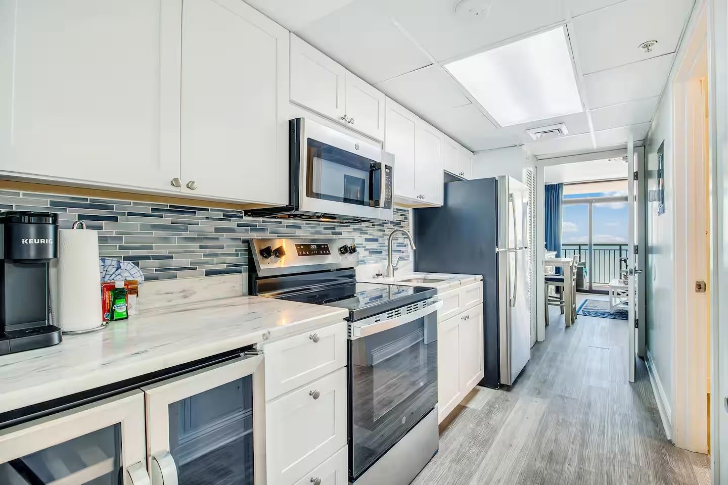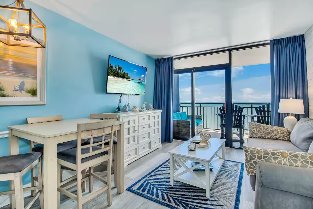 Rarely available direct oceanfront 1BR at Grande Shores on 77th Ave N. Only six of these oceanfront 1-bedroom units exist in the entire building. This beautifully renovated condo features an oversized balcony with spectacular oceanfront views and is ideally positioned four floors above the 7th floor rooftop pool deck. Updated throughout and sold fully furnished and turnkey, this property is ready to go as a top-performing vacation rental, second home, or primary residence. Grande Shores sits in a highly desirable section of Myrtle Beach surrounded by residential homes, giving the beach a quieter, more private feel. Amenities include indoor and outdoor pools, lazy river, and convenient attached parking. A rare find just in time to capture the summer rental season.