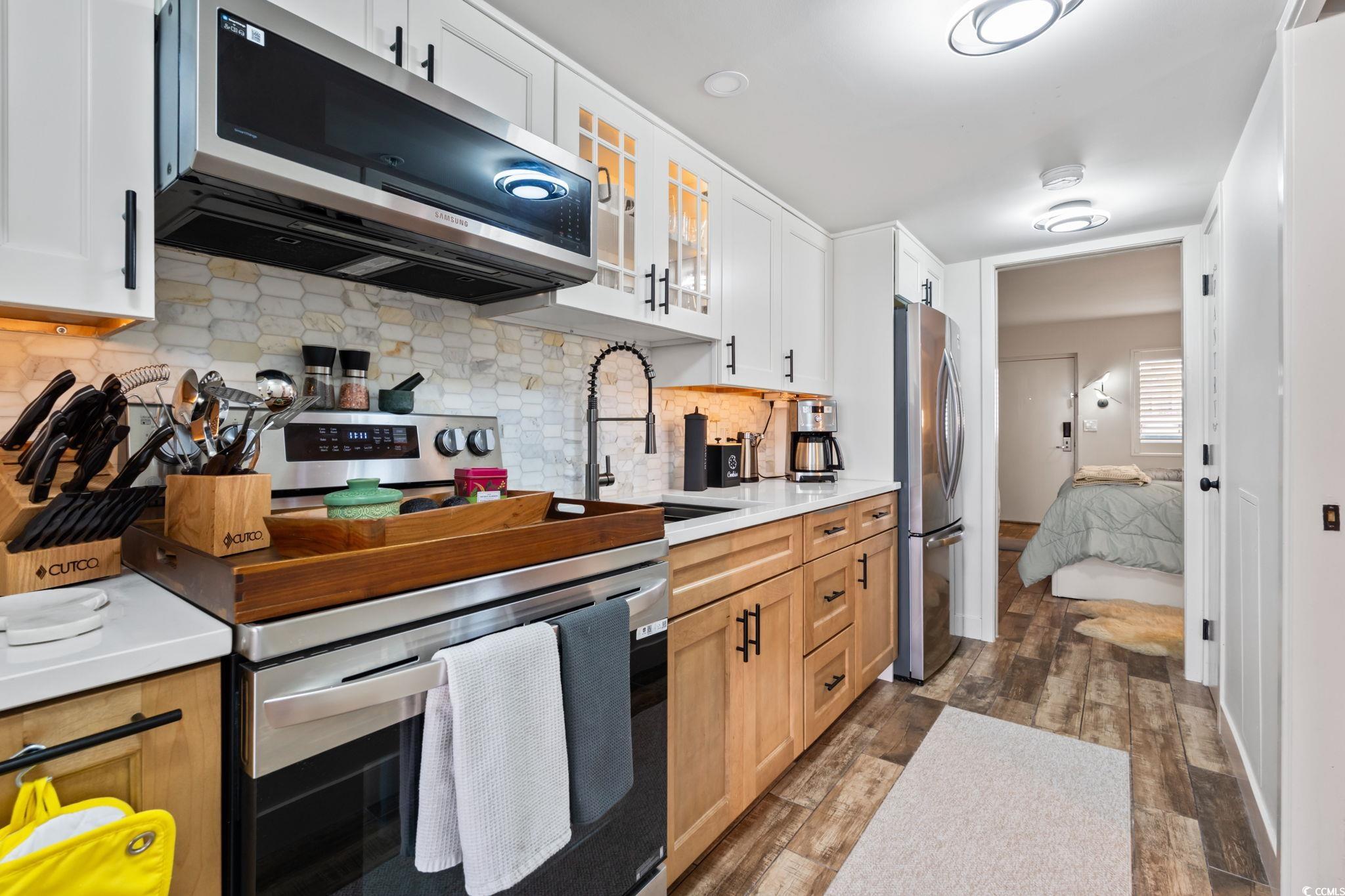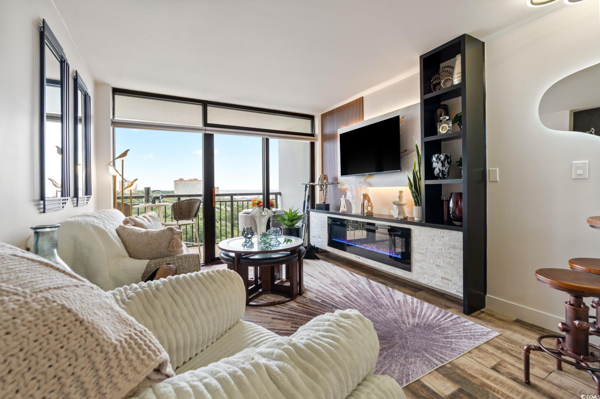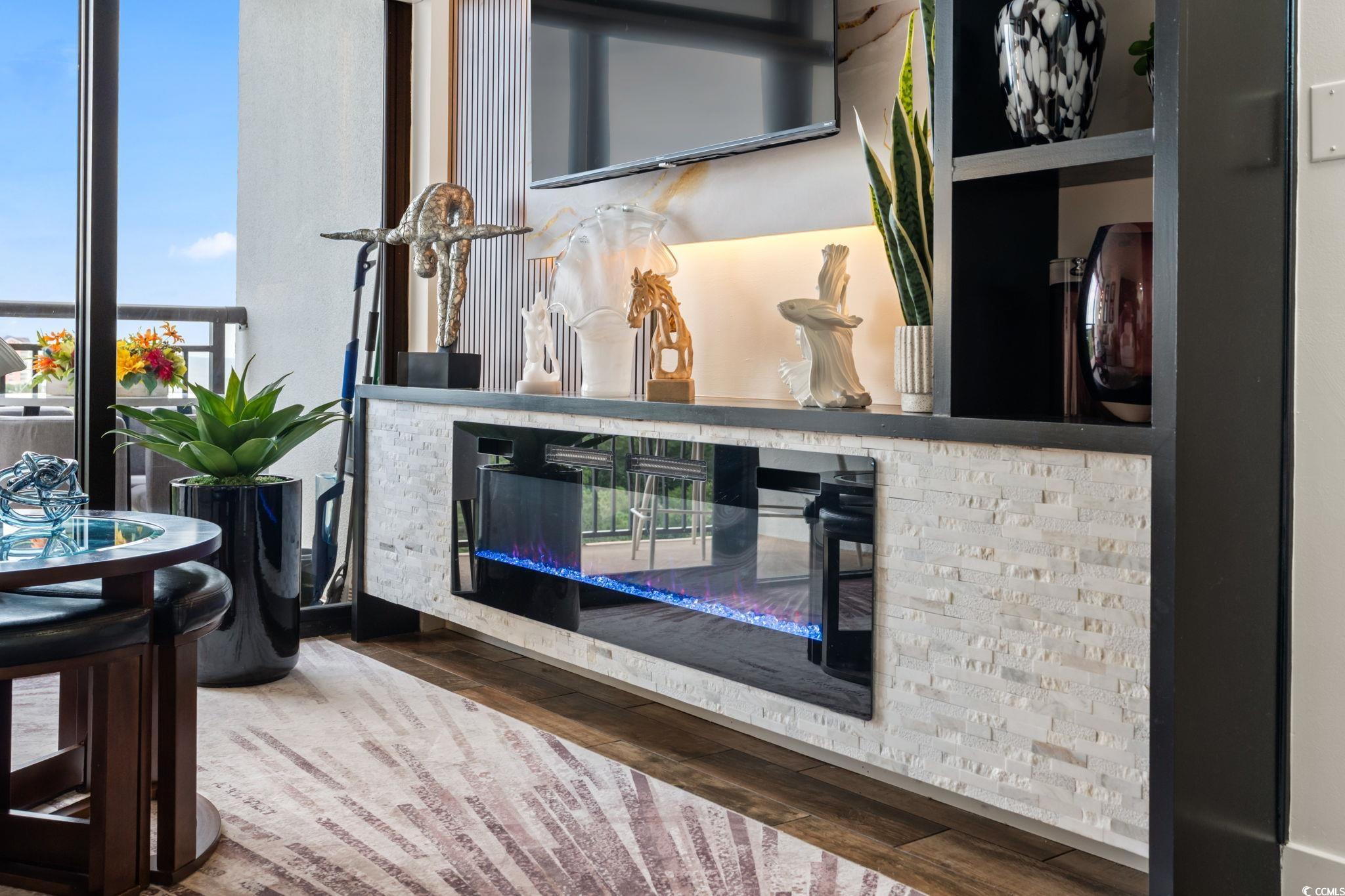Step into elegance with this stunning, fully remodeled 1-bedroom, 1-bath oceanview condominium, beautifully designed and professionally furnished to perfection. Every detail has been thoughtfully curated to create a space that feels both luxurious and welcoming, whether you are looking for a relaxing retreat, a weekend getaway, a place to live, or a high-demand short-term rental. This turn-key unit shines with high-end finishes, smart home technology, and modern design touches throughout. The kitchen is equipped with premium appliances, including an oven with a built-in air fryer, custom cabinetry, and upgraded countertops. The open living area boasts a cozy fireplace, freshly painted walls, and gorgeous hardwood floors. The spa-inspired bathroom has been completely reimagined with Bluetooth connectivity, sleek fixtures, and a high-end bidet toilet. From your private balcony, enjoy serene views of the Atlantic Ocean, perfect for morning coffee or evening sunsets. Highlights include a fully remodeled and interior-designed space, Smart home features for convenience and comfort, stylish custom finishes throughout, and Luxury furnishings included. Just bring your suitcase! At Grande Shores Resort, great amenities await: Multiple oceanfront pools and a lazy river, an indoor pool, a hot tub, a spacious sun deck, a Fitness center, an On-site coffee shop, and direct beach access. Ideally situated on the northern end of Myrtle Beach, you?ll be minutes away from premier shopping, dining, and entertainment located in the Golden Mile and Grande Dunes area. This is more than just a condo; it?s a lifestyle, a rare opportunity to own a piece that you won't want to miss.