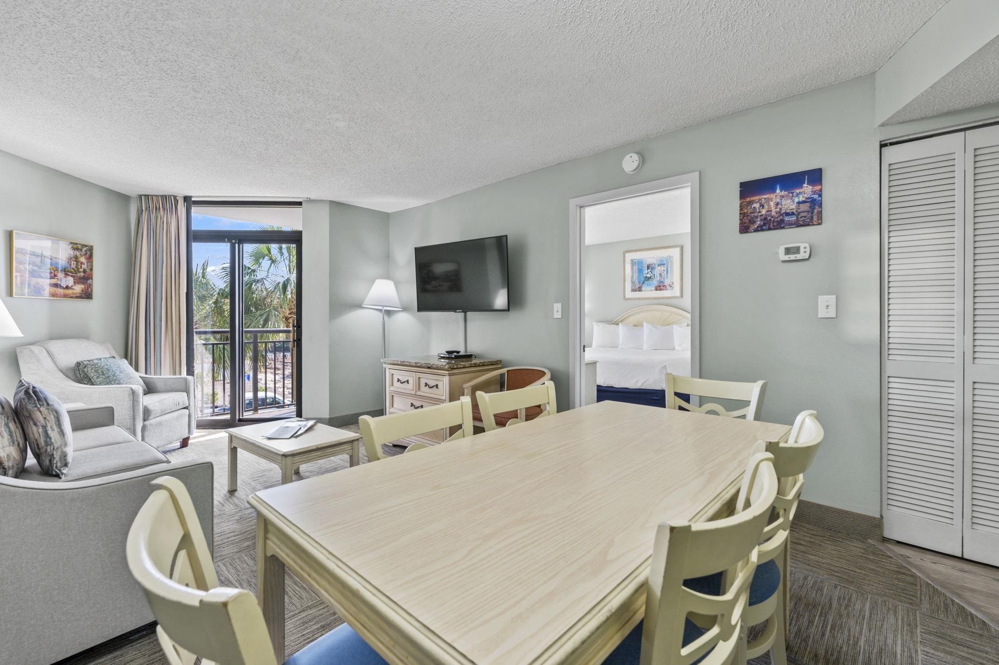 One of the BEST values for an ocean view unit in one of Myrtle Beach's greatest hidden gems - Grande Shores! Enjoy stunning ocean views from this beautifully updated 2-bedroom, 2-bath condo, just steps from the sand. Fully furnished and completely turn key, this unit offers a stylish coastal design and a bright, open layout that’s perfect as a vacation getaway or income-producing rental. Enjoy a fantastic open floorplan, with flooring that's been replaced recently throughout the main living areas. The kitchen features an abundance of counter space, granite countertops, a stainless steel sink, and new backsplash! Enjoy two access points to your LARGE overszied balcony, from both the living area, and the primary suite. The primary bedroom has its own bathroom! The second bedroom boasts recently installed plantation shutters and two full size beds, maximizing rental potential. The unit is also equipped with an owner’s closet and washer and dryer. Grande Shores offers an impressive lineup of amenities, including on-site dining at Shoreline Café, a fitness center, indoor and outdoor pools, lazy rivers, hot tubs, and seasonal kids’ activities. The rooftop pool area is a true highlight, delivering breathtaking panoramic views of the coastline. Whether you’re searching for a second home or a rental investment, this well-priced condo stands out as a fantastic opportunity in an amenity-rich oceanfront resort.