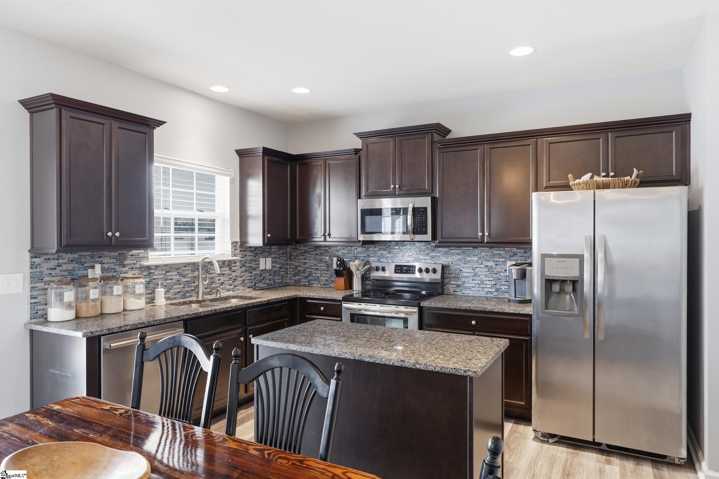 Welcome to 201 Addlestone Circle, a rare find on a corner cul-de-sac lot within walking distance to downtown Fountain Inn and right in the heart of the golf cart district! This beautifully maintained 3-bedroom, 2.5-bath home features an inviting open floor plan, cozy fireplace, eat-in breakfast nook plus formal dining room, and a versatile bonus room upstairs—perfect for a home office, media room, or playroom. All bedrooms and the laundry room are conveniently located upstairs, offering a functional layout designed for everyday living. Step outside and discover the true showstopper—your private backyard oasis that feels like a vacation at home! Enjoy the large pool, an oversized pool deck with cool-touch coating (so your feet never get burned), and a covered outdoor bar with TV that’s ready for game days and summer parties. Even better, all pool furniture stays, making this entertainer’s dream move-in ready. The backyard also features a shed and raised garden beds for extra storage and gardening space. Recent upgrades include fresh exterior paint, interior paint, updated light fixtures, and a replaced pool chlorinator in 2025. With its prime location near downtown, golf-cart convenience, resort-style outdoor living, and flexible layout, this home truly feels like the deal of the century. Homes like this don’t last—schedule your showing before someone else claims your backyard paradise!
