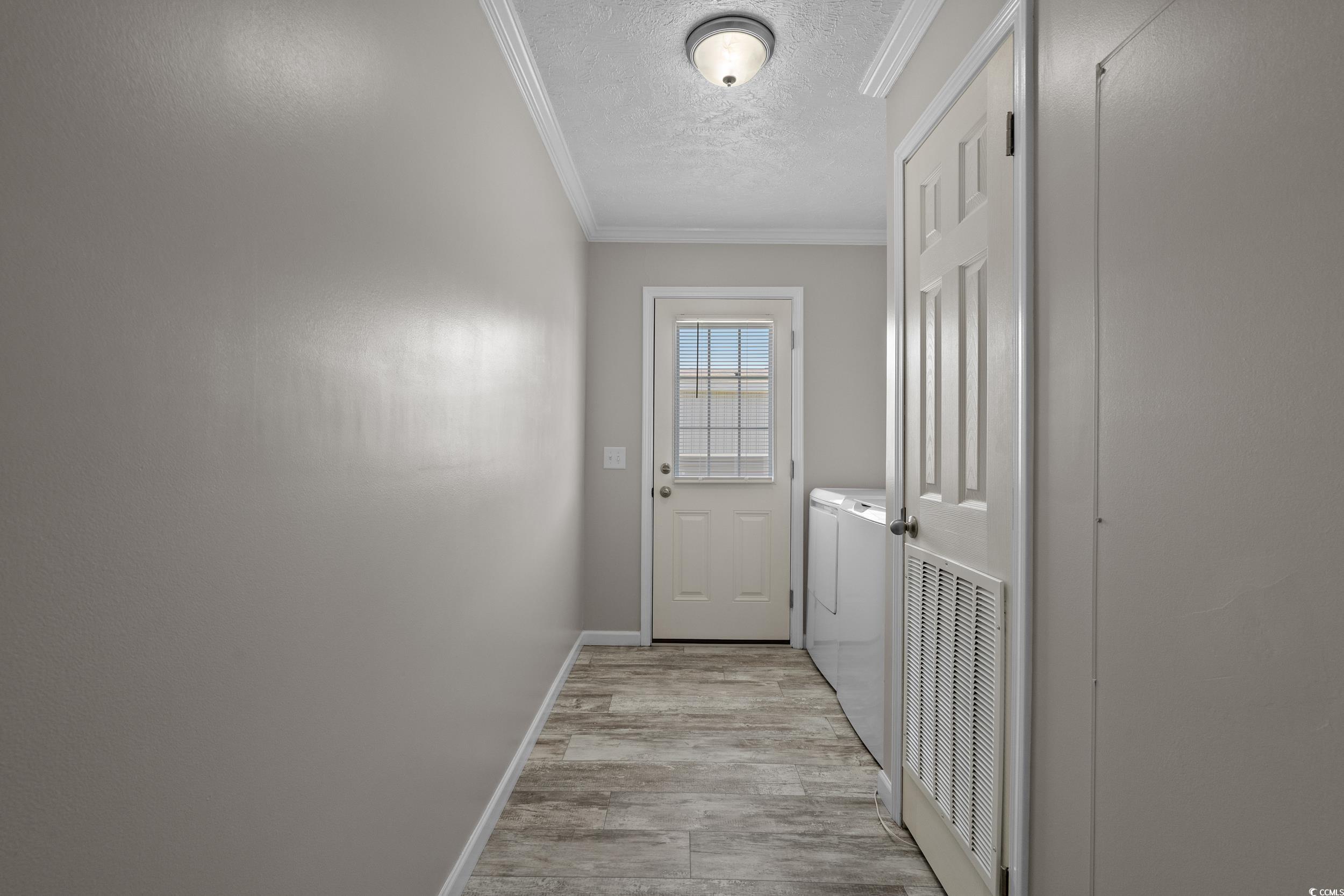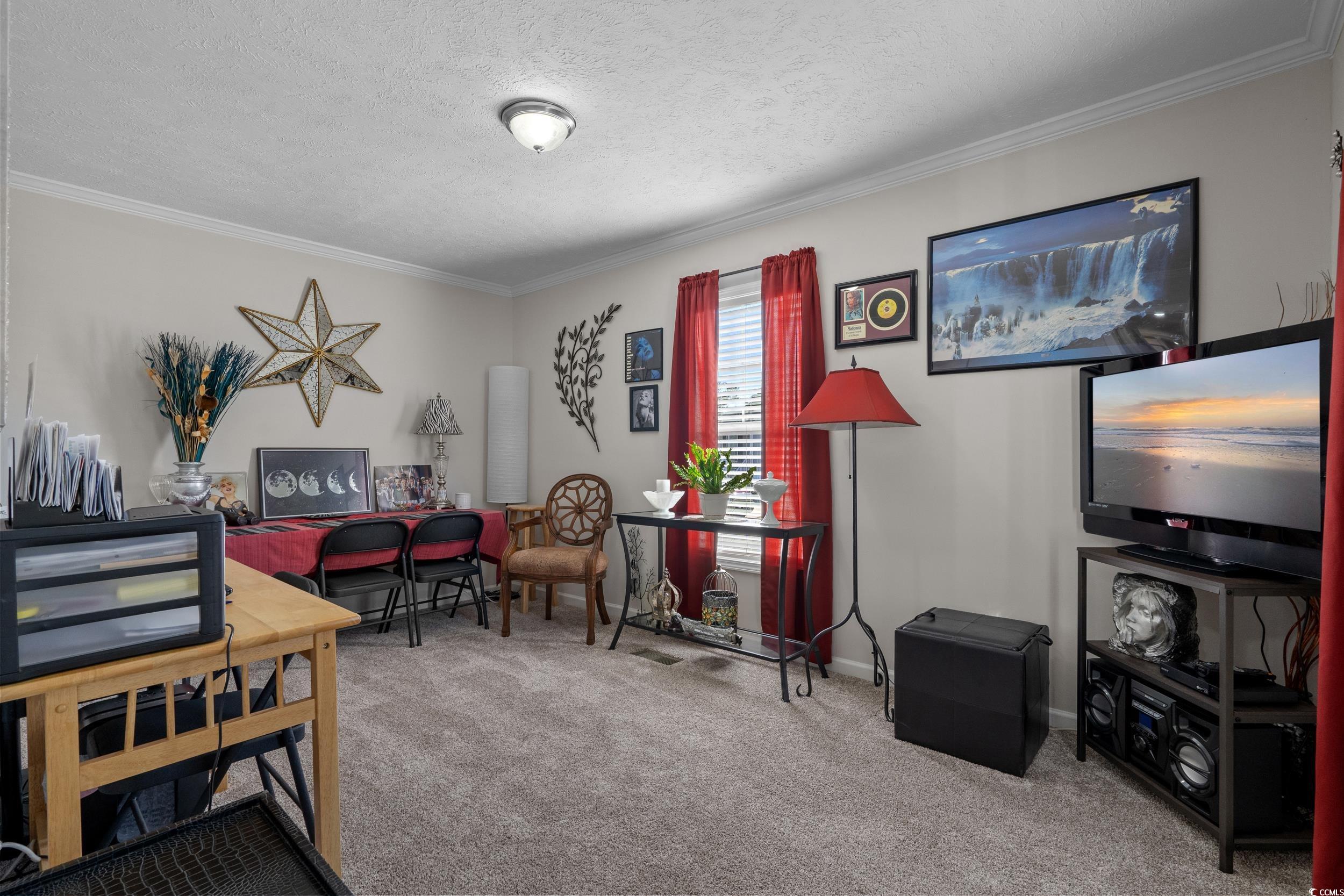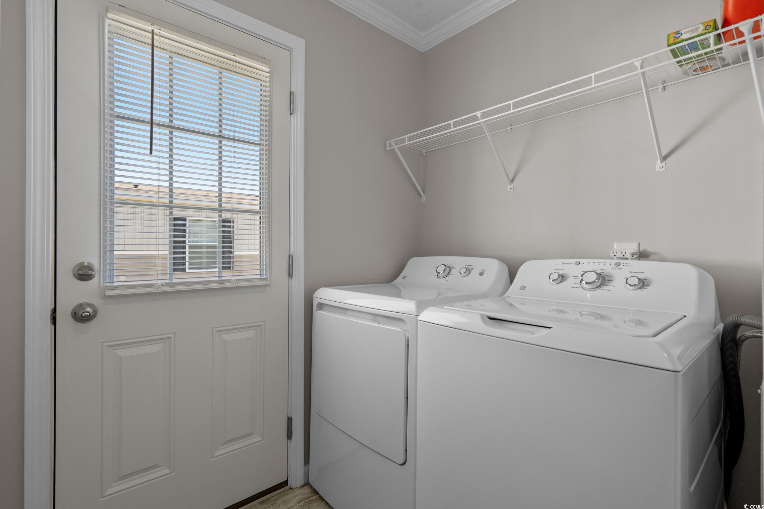 Better than new and perfectly located — this meticulously maintained home in Market Village sits on a desirable end lot, offering extra privacy and breathing room. Enjoy an extended outdoor living area enhanced by a functional aluminum awning installed in 2024, ideal for relaxing or entertaining year-round. Inside, the home features an open, bright layout with modern finishes including LVP throughout the main living, a beautiful kitchen island and stainless steel range hood. All appliances including the refrigerator, washer and dryer sell with the home! Effortless low-maintenance living and centrally located just minutes from The Market Common’s shops and dining, Myrtle Beach International Airport, and only about a 7-minute drive to the nearest public beach access, this home offers the ultimate in convenience and coastal lifestyle. Discover easy living at the beach in a home that truly feels brand new!