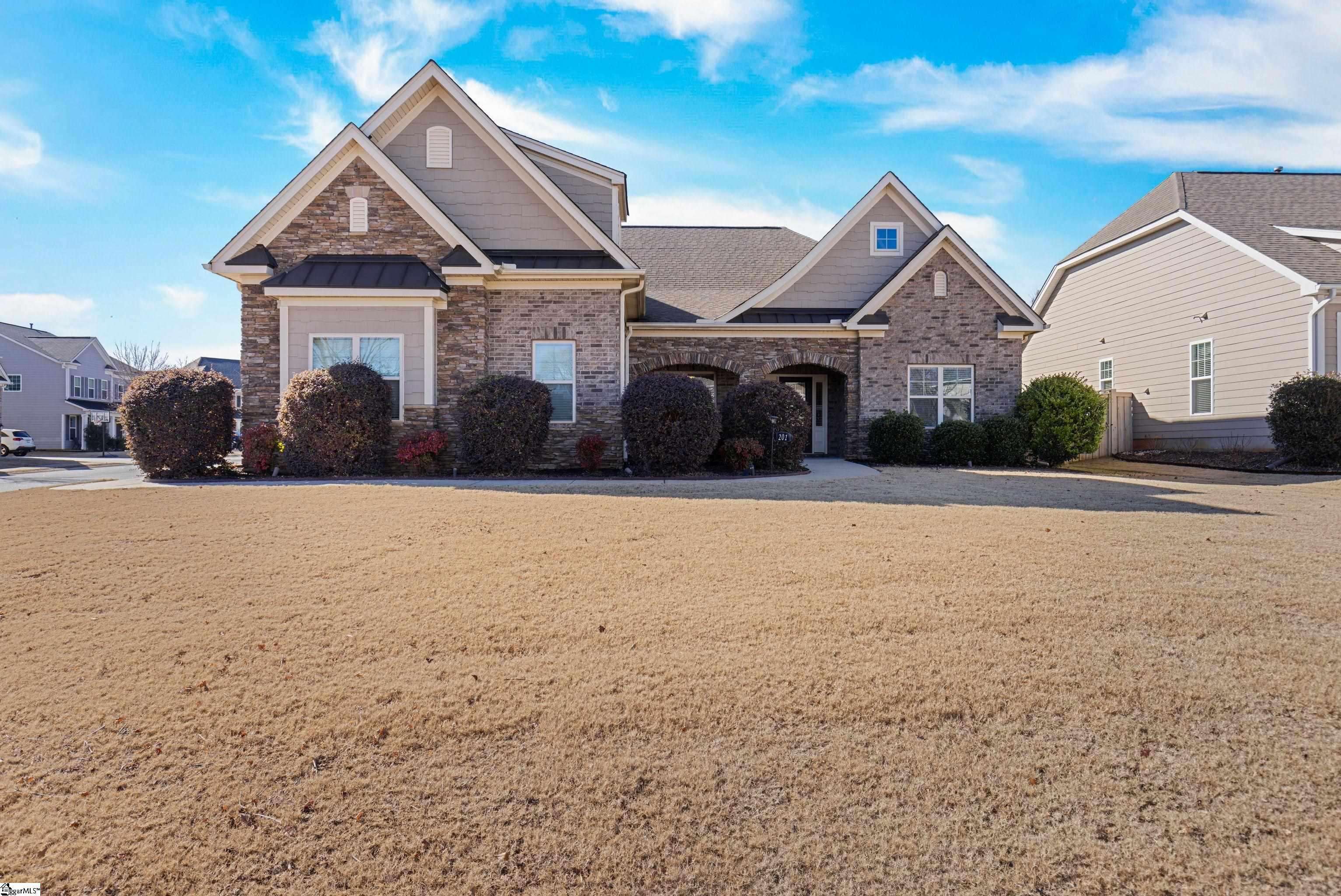 WOW!! $10,000 price improvement!! What a deal on this one level home in West Farm! Bring your golf cart! This open floor plan, 4 bedroom, 2.5 bath home in West Farm is close to the community pool/clubhouse and sits two miles from downtown Fountain Inn with its shops, restaurants and frequent community events! This well maintained home features an open-concept kitchen, breakfast, and great room. The main living area of the home has stunning arched doorways, 12-15 foot ceilings, beautiful trim/wainscoting, and a coffered ceiling in the dining room. The open kitchen has plenty of cabinetry with pull out shelving, lots of counter space and features all stainless appliances. Natural light streams in every room from the large windows. The generous primary bedroom offers a luxurious full bath and enormous walk in closet. Two secondary bedrooms and a full bath are on the opposite side of the kitchen/great room. Office & dining room, great room & kitchen flow together via the hand scraped hardwoods. The bedrooms have brand new carpet. Outside, you will love the stone, brick and concrete plank exterior, the large corner lot with side-entry garage & privacy fenced back yard with both a covered patio and uncovered patio that has a gas hook up for your grill! West Farm is centrally located, 2 miles to Downtown Fountain Inn, 4 Miles to Downtown Simpsonville, and just about 2 miles to I-385! Schedule your showing or contact listing agent for more information.