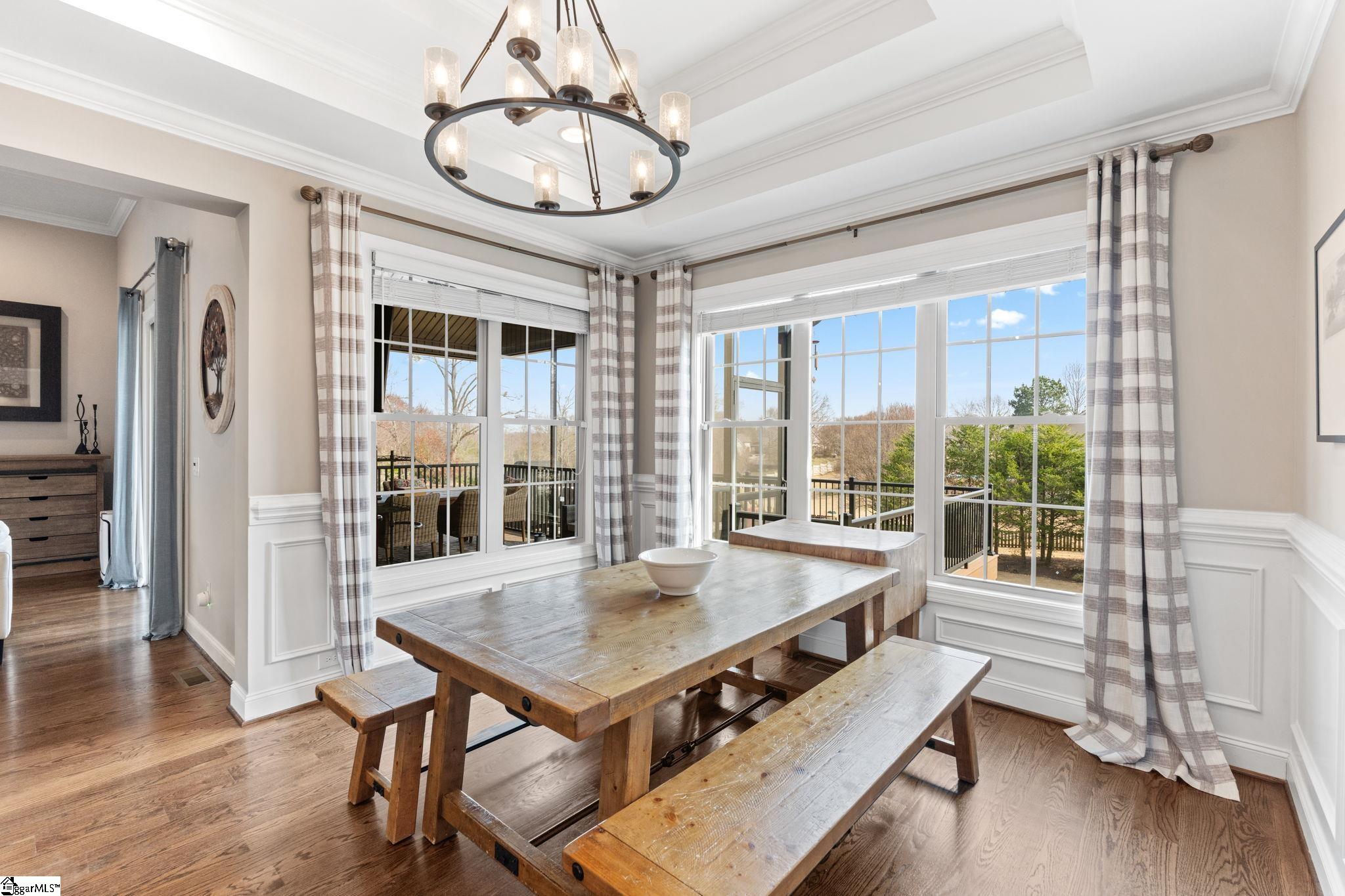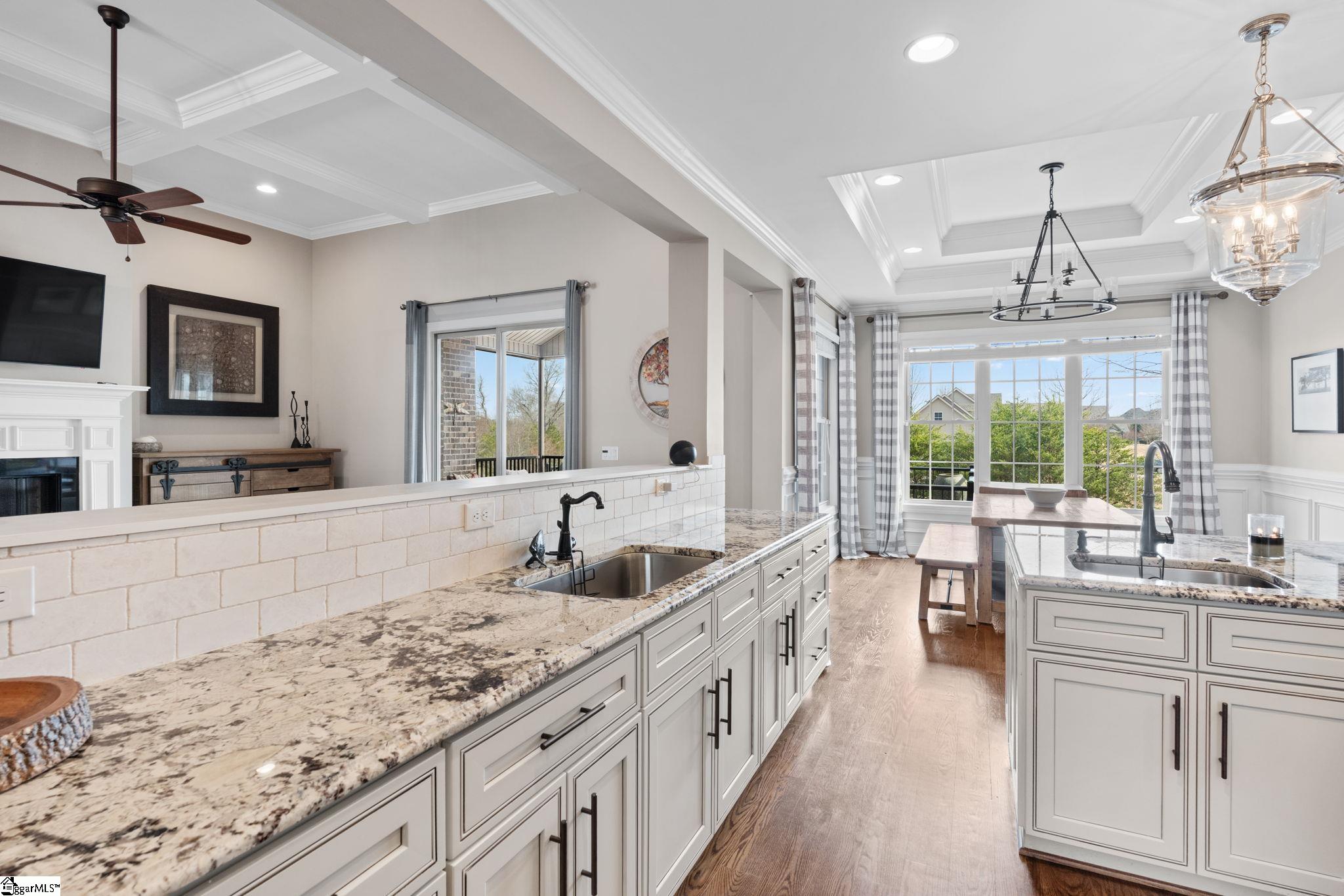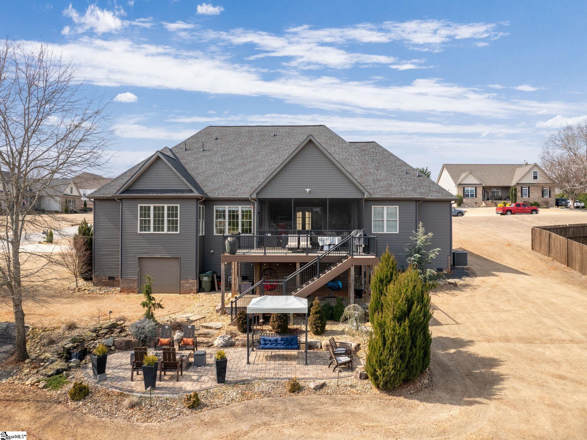 Welcome to 201 Brown Farm Way, a beautifully crafted custom home, built in 2018, nestled in the desirable Silver Meadows subdivision. This impressive 4-bedroom, 4 full bath residence boasts an array of upgrades and features. Step through the double mahogany doors into a spacious open family room with gleaming hardwoods, high ceilings, and a beautiful gas fireplace. This space flows seamlessly into the large gourmet chef’s kitchen complete with upgraded cabinetry, stainless appliances, two sinks, granite countertops, tile backsplash, a pot filler, and a walk-in pantry. On the main level, you will also find 4 spacious bedrooms, 3 full baths, an oversized laundry with cabinetry and a sink, and a dining area. Head upstairs to find a spacious loft area (currently used as a home office), an oversized theatre room complete with a 120” projection screen and projector, an additional full 4th bath, and attic storage. The backyard is a true sanctuary, transformed into an oasis in 2021. Highlights include an oversized screened in porch, a newly built deck, perfect for outdoor dining and entertaining, a paver patio with a stunning 12’ water feature, a natural gas fire pit, and plenty of seating. The entire backyard was re-sodded and complemented by newly planted trees and shrubs. Landscape beds have been upgraded with slate chips, significantly reducing maintenance costs. A 3rd backyard auxiliary garage is perfect for a small workshop or for extra yard equipment. The walk-in crawlspace area makes for endless storage options. You must see it all to truly appreciate it. Conveniently located less than 15 minutes from Downtown Greenville and just minutes to Travelers Rest, this home offers a perfect blend of tranquility and accessibility. Don’t miss the opportunity to make this dream home yours!