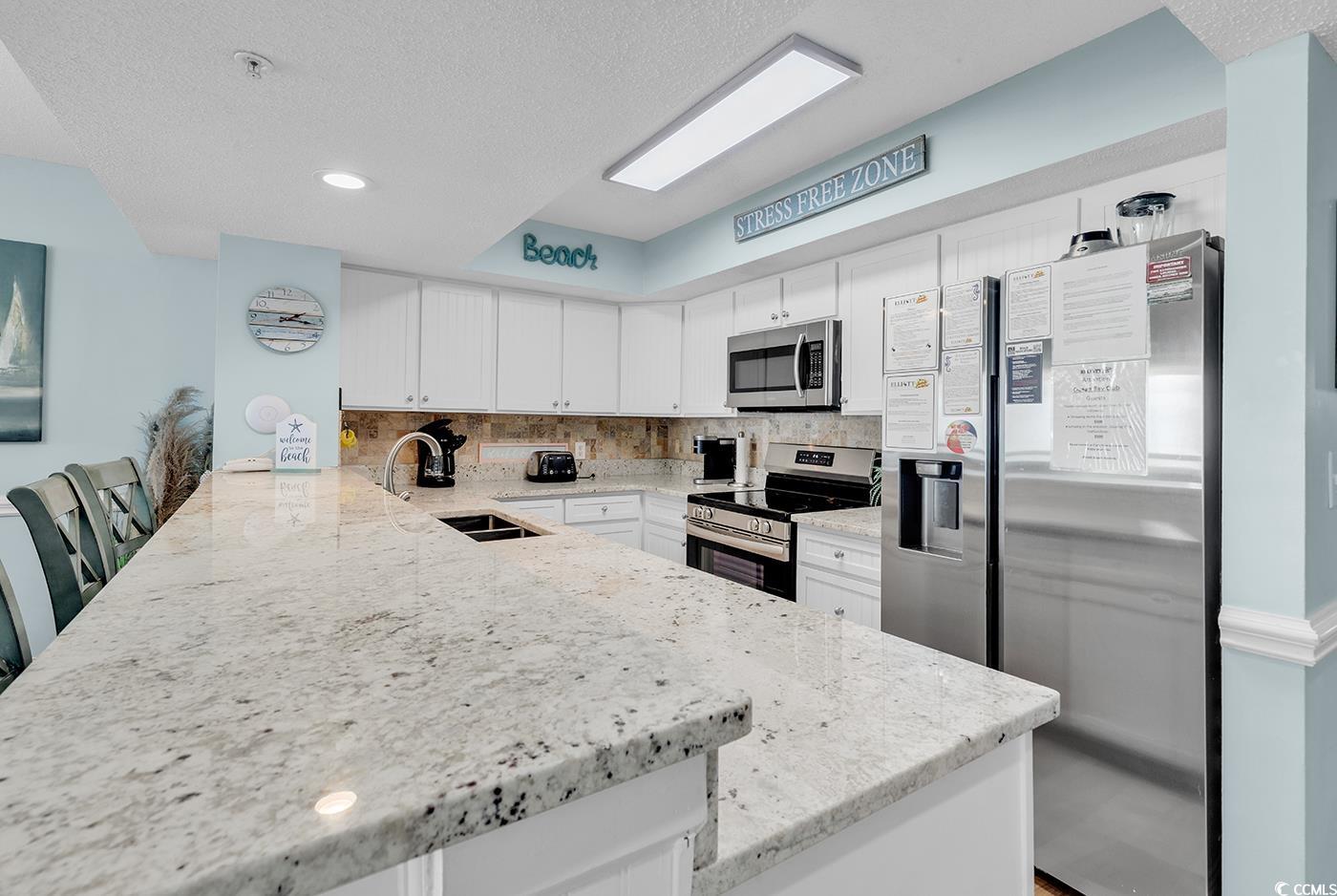 Enjoy breathtaking ocean views from this spectacular 4BR/3BA direct oceanfront condominium in the highly sought-after Ocean Bay Club! This premium rental unit has been completely remodeled from top to bottom, featuring upgrades throughout—including new flooring, beautifully tiled showers, modern appliances, elegant countertops, and stylish furnishings. The spacious master bedroom offers a cozy sitting area, a sliding glass door to the oceanfront balcony, and updated lighting and ceiling fans. The main living area features stunning new porcelain wood-look tile, while the bedrooms offer plush carpeting for comfort. The kitchen is a chef’s delight with granite countertops, a tile backsplash, stainless steel appliances, updated cabinetry, and a convenient breakfast bar. Ocean Bay Club provides incredible amenities, including: oceanfront pool, outdoor jacuzzi, lazy river, kiddie pool, fitness room. All this, just steps from restaurants, local shops, and endless North Myrtle Beach attractions. At Ocean Bay Club, the fun never stops!
