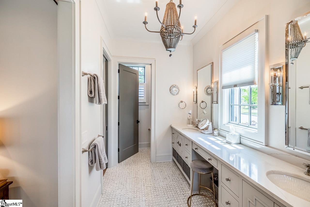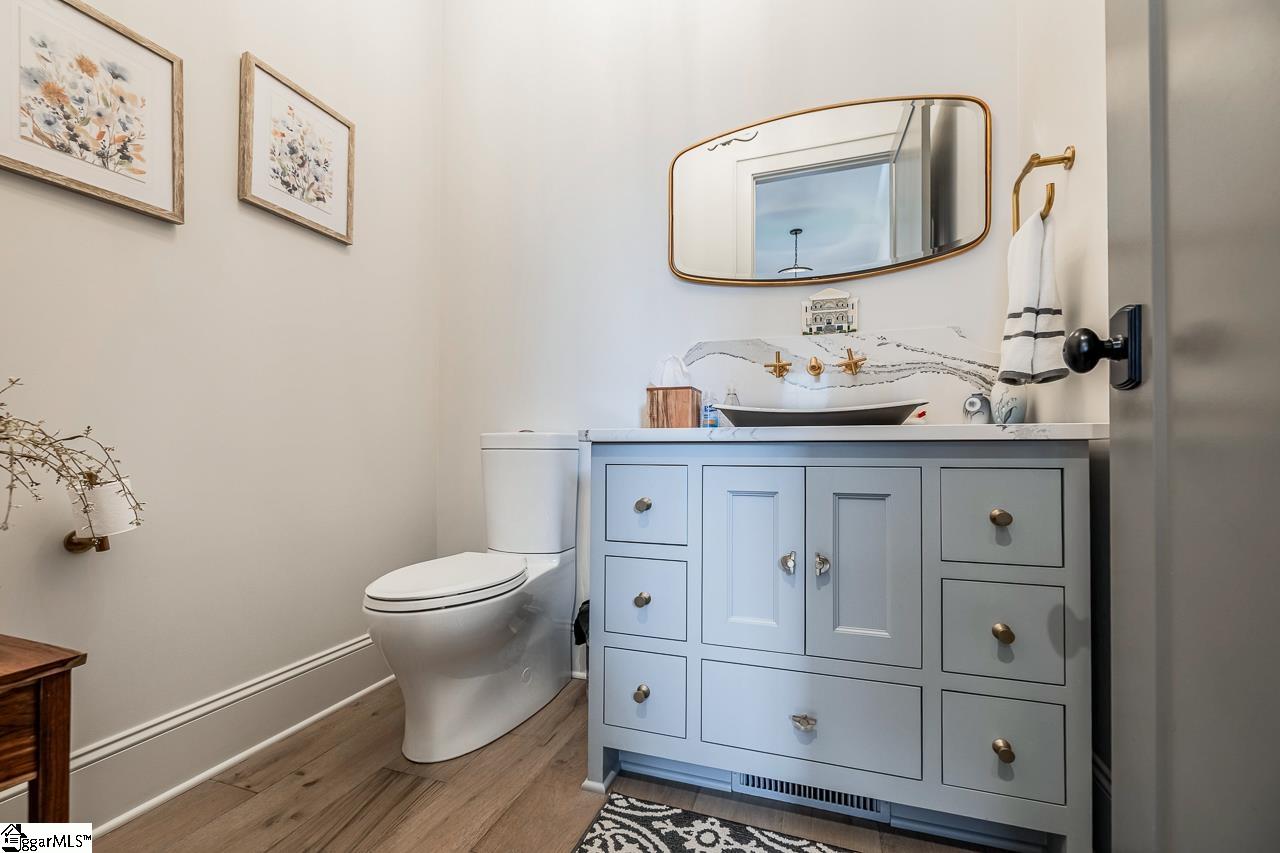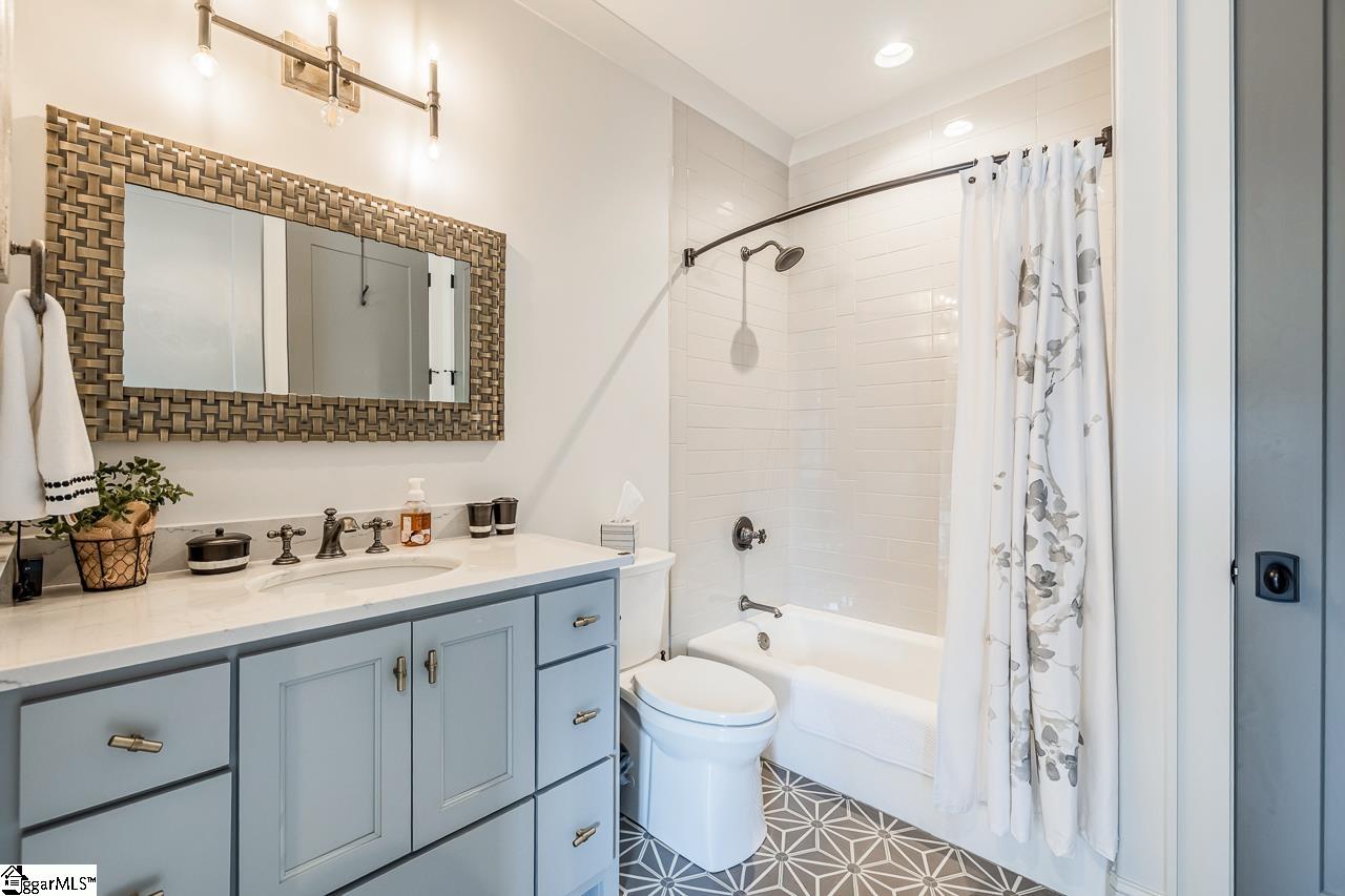 Welcome to one of Greenville’s most technologically advanced and thoughtfully designed homes, located in the heart of the prestigious Hartness community. This one-of-a-kind 4-bedroom, 4.5-bath residence offers over 5,100 square feet of pure luxury, blending timeless architectural style with cutting-edge innovation and comfort. From the moment you enter through the locally crafted Mahogany front door, you're met with custom finishes and upscale features in every room. The open-concept living and kitchen area is the centerpiece of the home, boasting a seamless indoor-outdoor connection through folding doors, a designer fireplace, and top-of-the-line Wolf and Subzero appliances. Custom cabinetry by Mullinax Woodworks and sleek Cambria countertops complete the gourmet kitchen, making it ideal for entertaining and everyday living. The primary suite is nothing short of extraordinary, featuring engineered French Oak floors and a spa-like bathroom with Kohler’s DTV+ smart shower system, a ceiling-fill soaking tub, and elegant mosaic tilework. Three additional en suite bedrooms, a spacious media room, and a flexible bonus space above the garage provide versatility for guests, work, or play. Set adjacent to the Grand Lawn, the private courtyard and outdoor kitchen are perfect for al fresco dining and enjoying the beautifully maintained surroundings. Romabio Limewash paint over brick, Tapersawn Cedar shakes, and eco-friendly Peacock pavers give the home a stately yet inviting appearance. Located in the walkable Hartness neighborhood, residents enjoy access to trails, streams, and 180 acres of preserved natural space, along with future amenities like a Village Center with shops and restaurants, fitness and spa facilities, tennis, pickleball, and a luxury pool complex. With an unbeatable blend of elegance, smart-home innovation, and a connected community lifestyle, this home offers a truly exceptional living experience in Greenville.