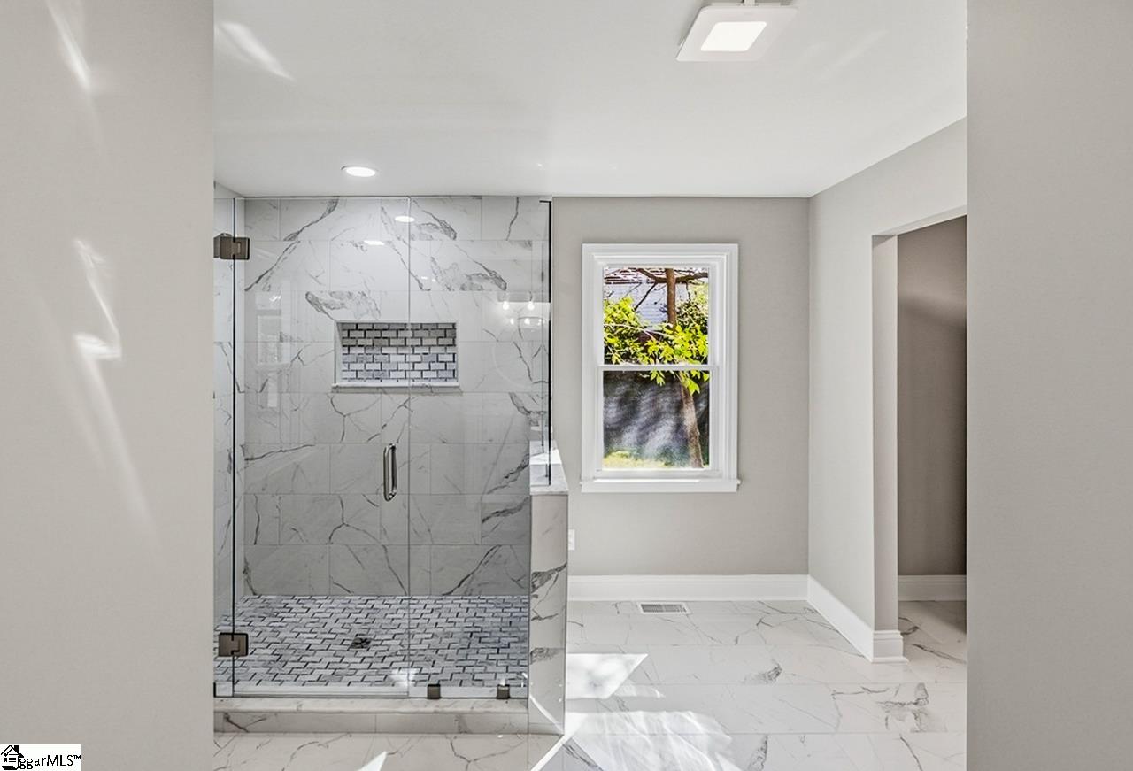Experience the pinnacle of modern living in this meticulously renovated 3-bedroom, 2.5-bathroom home located in Greenville’s desirable Rosedale community. Recent major improvements provide peace of mind, including a new 30-year architectural shingle roof, double-hung Low-E windows, updated insulation, a high-capacity 4-ton HVAC system, and refinished original hardwoods throughout. Ideally situated minutes from Haywood Road, Wade Hampton Boulevard, and Downtown Greenville, this open-concept residence has been thoughtfully transformed with high-end finishes and essential upgrades. The main level features a spacious primary suite with multiple closets and a luxurious bath boasting a new glassed-in, custom-tiled walk-in shower and dual vanities. Culinary enthusiasts will love the chef’s kitchen, complete with soft-close cabinetry, two islands, premium granite countertops, a wine cooler, and brand-new stainless appliances. Relax in the adjacent light-filled sunroom or enjoy the versatility of the upper level, which includes two additional bedrooms and a bonus room with its own dedicated heating and cooling system. With fresh paint inside and out, new fixtures, and built-in office spaces, this home is truly move-in ready—schedule your showing today!