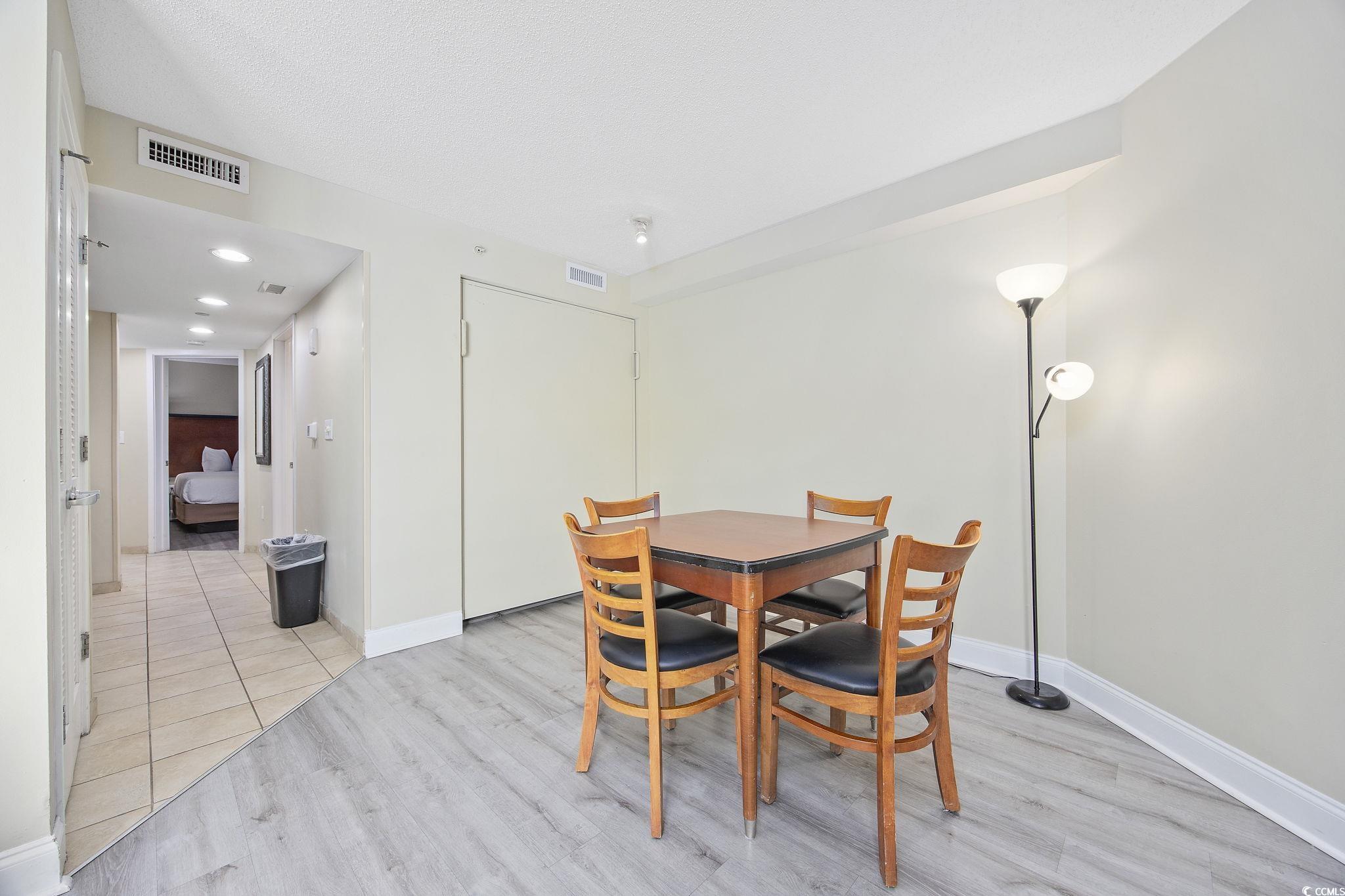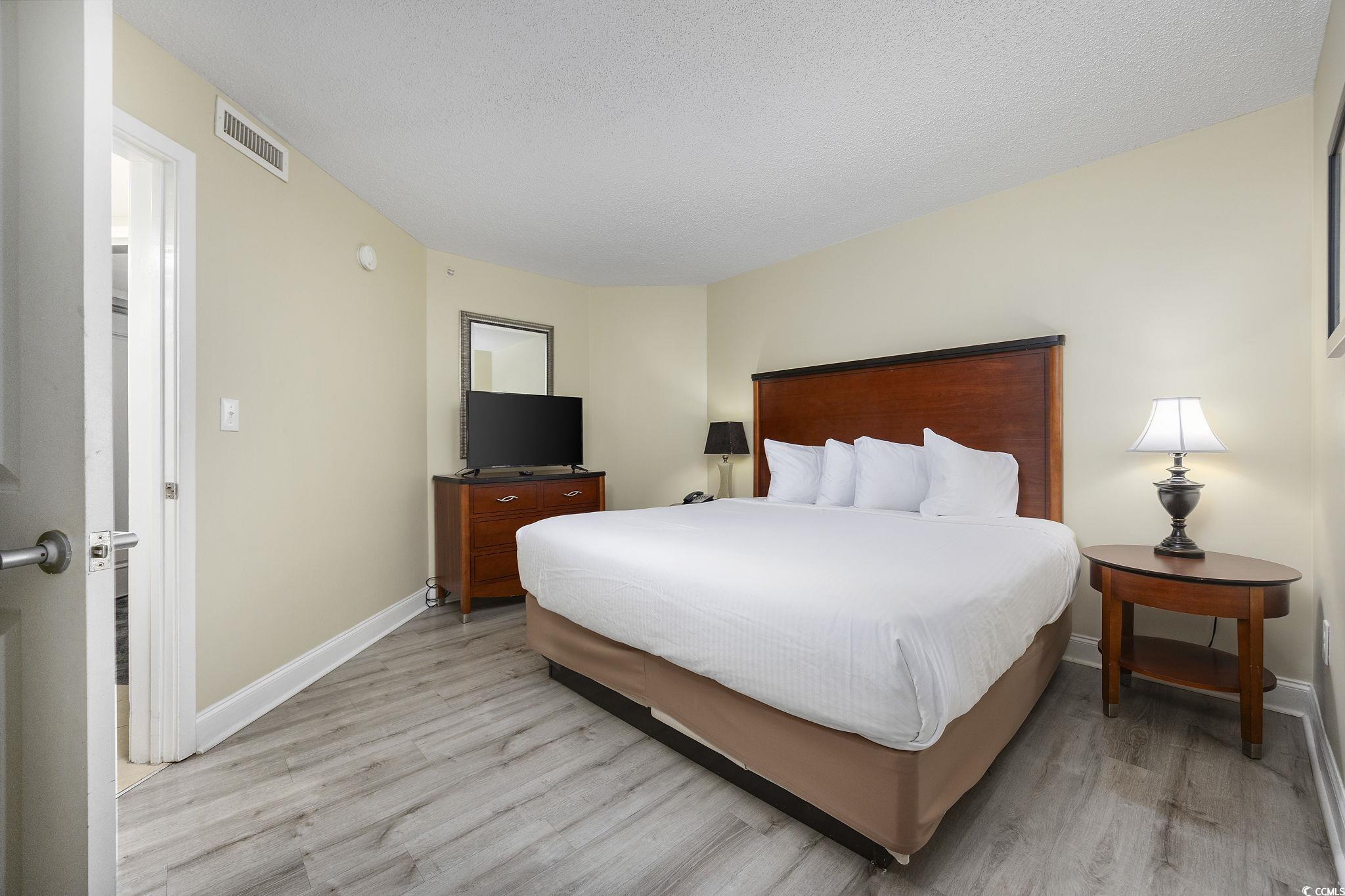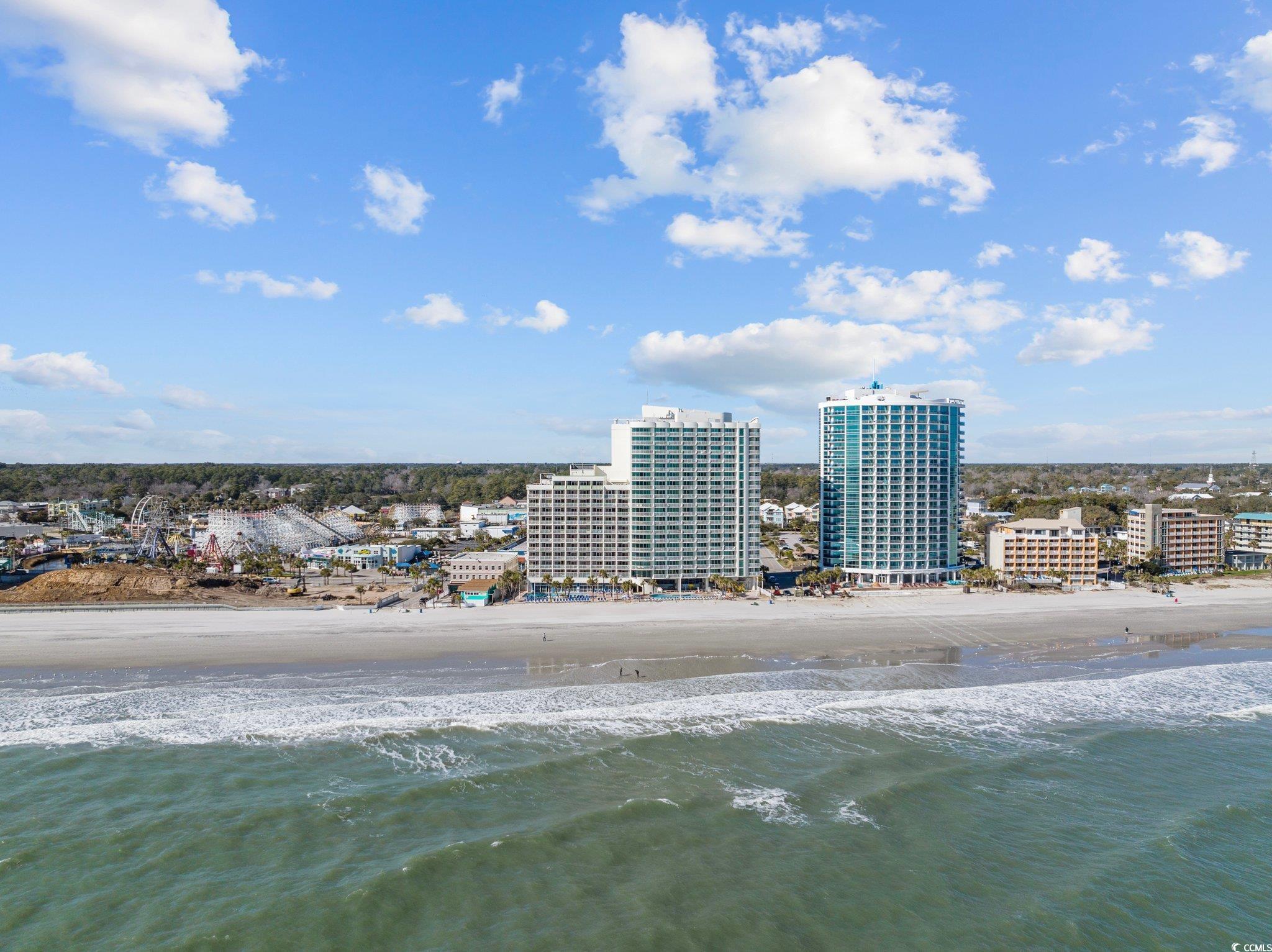 Experience the epitome of coastal luxury with this exquisite 1-bedroom, 1-bathroom oceanfront condo in Myrtle Beach. Perfectly designed for relaxation and comfort, this condo offers unparalleled views of the Ocean and a range of upscale amenities. The spacious bedroom boasts a king-sized bed with premium linens, providing the ultimate comfort. Wake up to the soothing sounds of the ocean and breathtaking sunrise views through the large window. Indulge in the spa-like bathroom featuring a jetted tub, perfect for unwinding after a day at the beach. The sleek vanity and contemporary fixtures add a touch of elegance to your daily routine. The open-concept living and dining area is flooded with natural light, creating a warm and inviting space. The large sliding glass doors lead to a private balcony where you can enjoy panoramic ocean views and fresh sea breezes. The fully equipped kitchen includes ample cabinetry, making meal preparation a delight. Situated in a prime resort location, this condo provides access to top-tier amenities such as a sparkling swimming pool, state-of-the-art fitness center, and direct beach access. Embrace the best of oceanfront living in this luxurious Myrtle Beach condo.