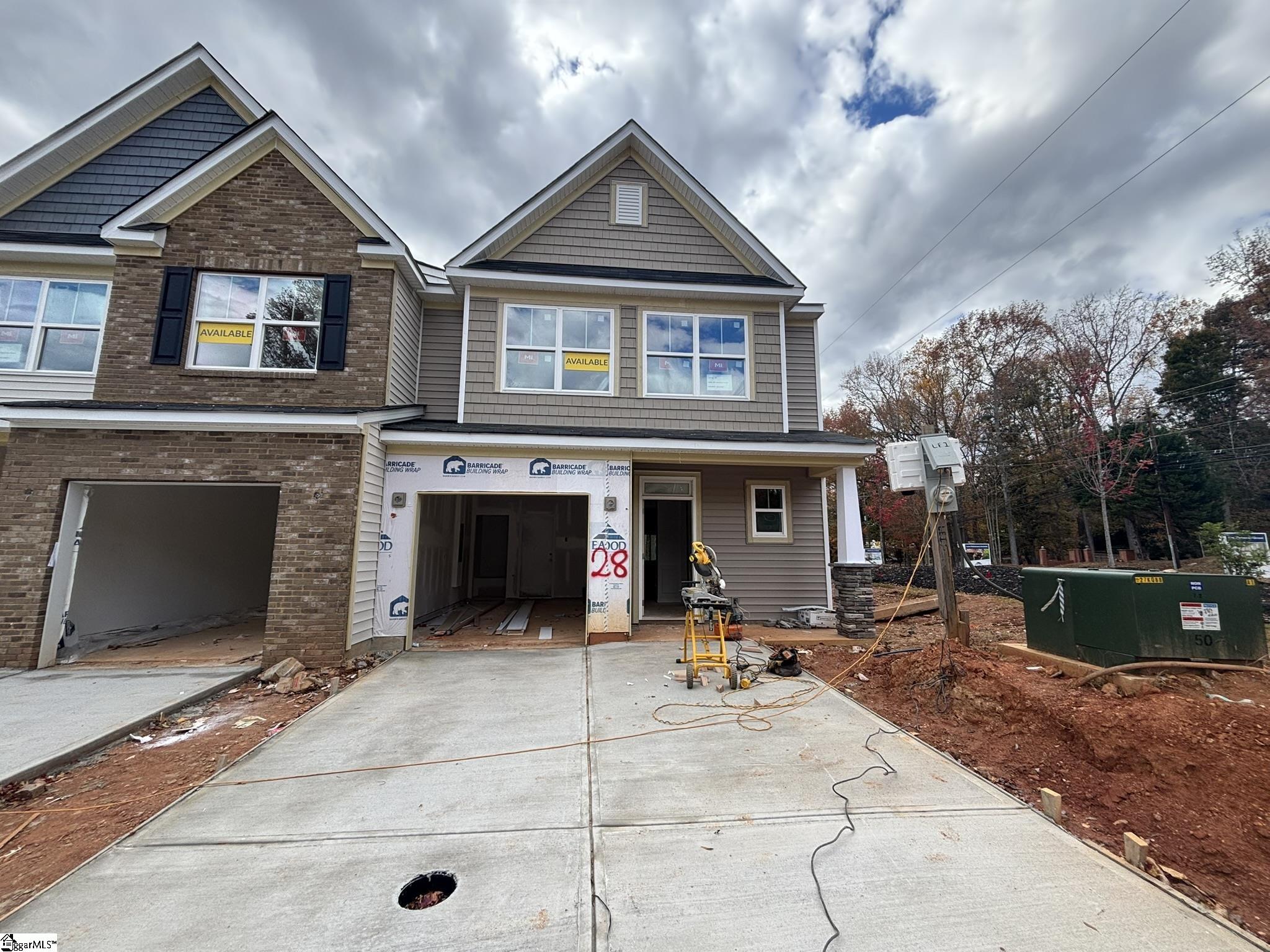 New construction featuring 3 bedrooms, 2.5 baths, and a 1-car garage. The main level includes a defined foyer, kitchen, dining area, and a two-story great room with abundant natural light. The primary suite is located on the main floor and includes a tiled walk-in shower, dual sinks, and a walk-in closet. The kitchen offers LED lighting, upgraded cabinetry, pendant light prewires, quartz countertops, and stainless steel appliances. Upstairs includes 2 additional bedrooms, a full bath, open loft, and a 9x18 flex room. EVP flooring is installed in main living areas, with carpet in the bedrooms. Additional features include a rear covered porch, structured wiring, built-in pest control system, and a finished garage with electrical outlets and lighting.