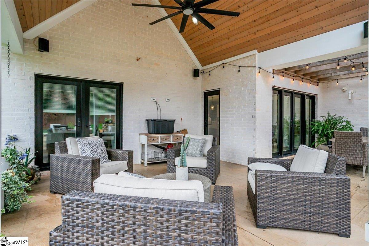 Exceptional Custom-Built Home in Prestigious lakefront Community Welcome to a stunning blend of craftsmanship, luxury, and thoughtful design in the sought-after Stillwaters community, known for its picturesque views of Lake Robinson and a breathtaking mountain backdrop. This exquisite custom brick home stands out with remarkable curb appeal, featuring a 74’ x 7’ wrap-around covered porch that sets a welcoming tone from the moment you arrive. Perfectly tailored for those who love to cook and entertain, the gourmet kitchen showcases Thermador wall ovens, a Thermador gas cooktop, elegant quartz countertops, designer tile backsplash, and statement lighting. A separate prep kitchen adds convenience and additional functionality — ideal for hosting or creating your own personal coffee bar. Extend your gatherings outdoors with a fully equipped outdoor kitchen on the covered patio and a cozy gas firepit on the adjoining open patio, surrounded by stamped concrete detailing. Step inside through double mahogany doors and be greeted by an open-concept layout filled with natural light and upscale finishes throughout. The spacious main level includes two bedrooms, one of which is a luxurious primary suite featuring private patio access, a spa-like bath with soaking tub and custom-tiled shower, and a walk-in closet with built-in shelving and ample storage. Additional highlights include a dedicated home office, a large walk-in laundry room with sink, bench, and built-in drop zone, plus a second entrance from the side driveway. Upstairs, you'll find a theater room with surround sound, two more bedrooms, a second laundry room, and a beautifully tiled full bath. Multiple walk-in attics provide exceptional storage solutions. This property is built with energy efficiency in mind — including spray foam attic insulation, JELD-WEN windows and doors, and a gas tankless water heater. Outdoor enthusiasts and gardeners will appreciate the meticulously designed landscaping, expansive patio areas, and a 12’ x 12’ greenhouse/shed complete with electricity, a ceiling fan, built-in irrigation misters, and stamped concrete flooring. Rarely does a home of this quality and location become available. Don’t miss the opportunity to experience the lifestyle, luxury, and beauty this home has to provide in one of the Upstate’s most scenic communities.
